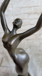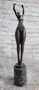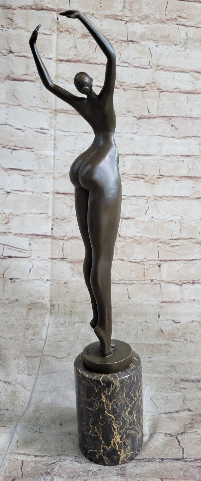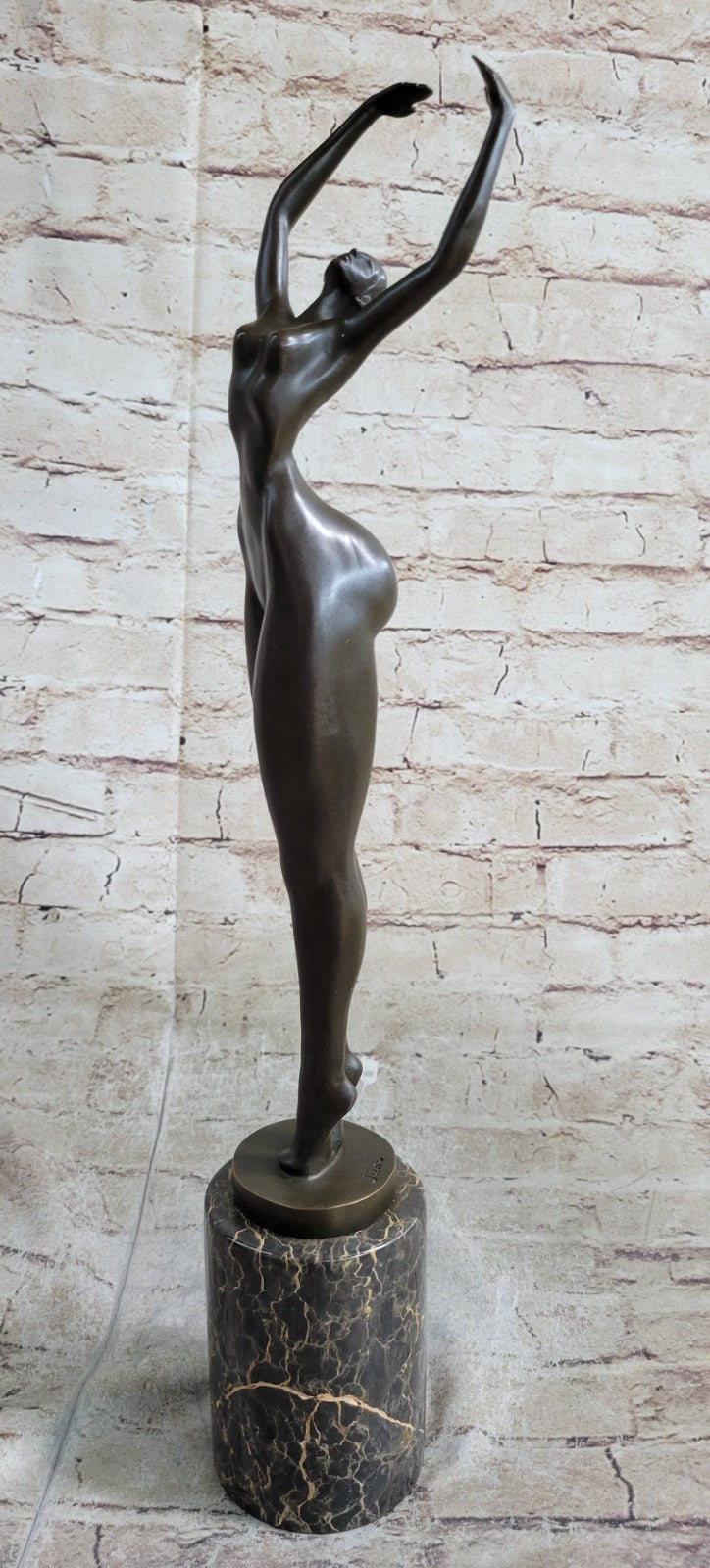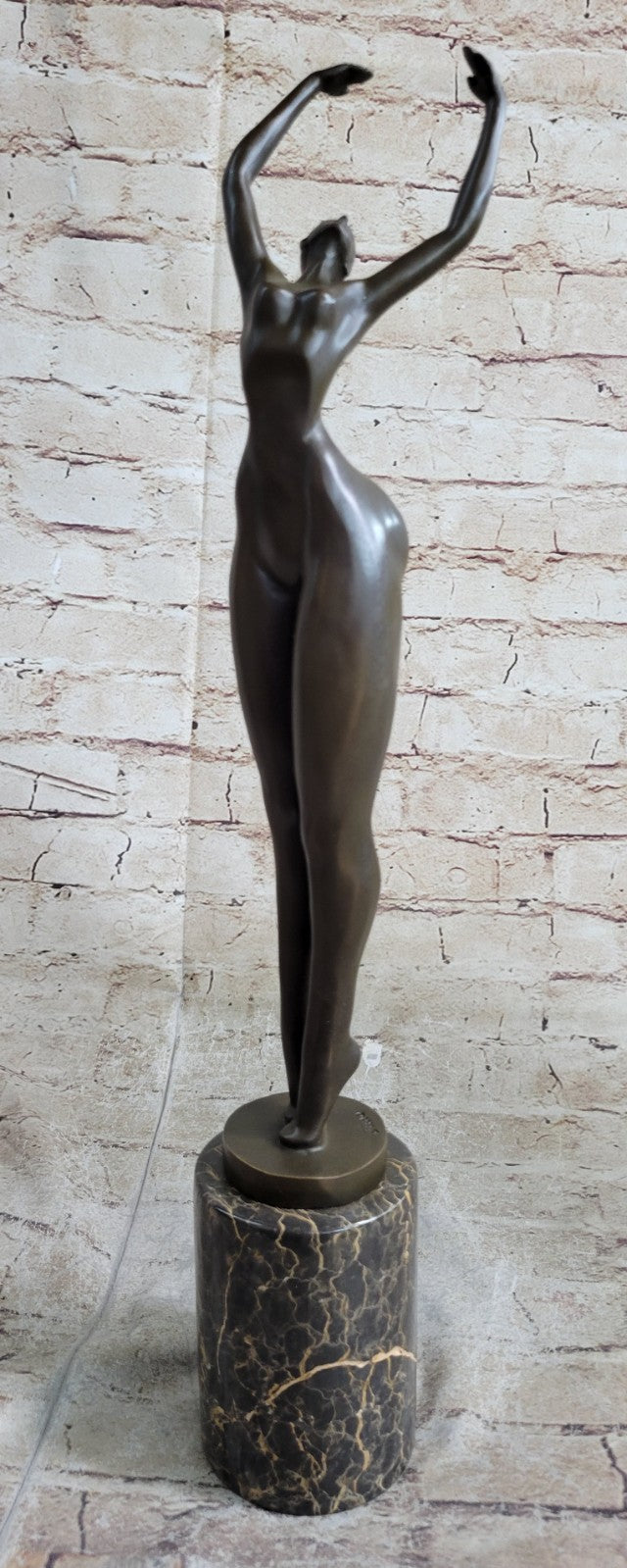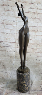 This bronze masterpiece invites viewers to appreciate the harmonious blend of abstract form and feminine allure. Whether displayed in a home or art gallery, it serves as a celebration of the female form, capturing a moment of beauty frozen in time. The intricate details and expert craftsmanship make it a distinctive addition to any art collection, drawing admiration for its artistic expression and aesthetic appeal.Bronze Dimensions with Marble Base: Height 18" X Width 3"