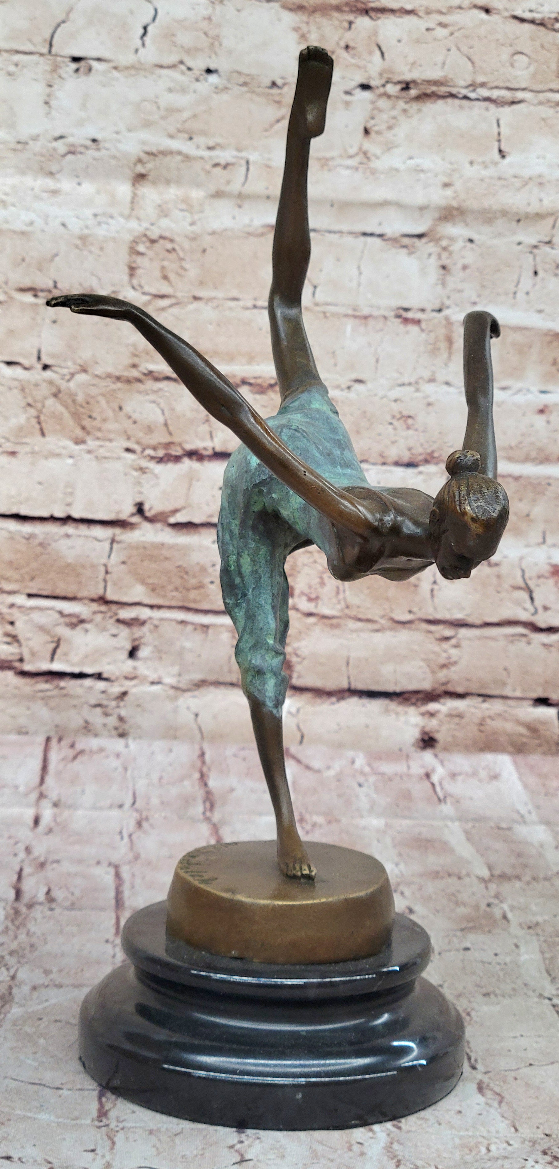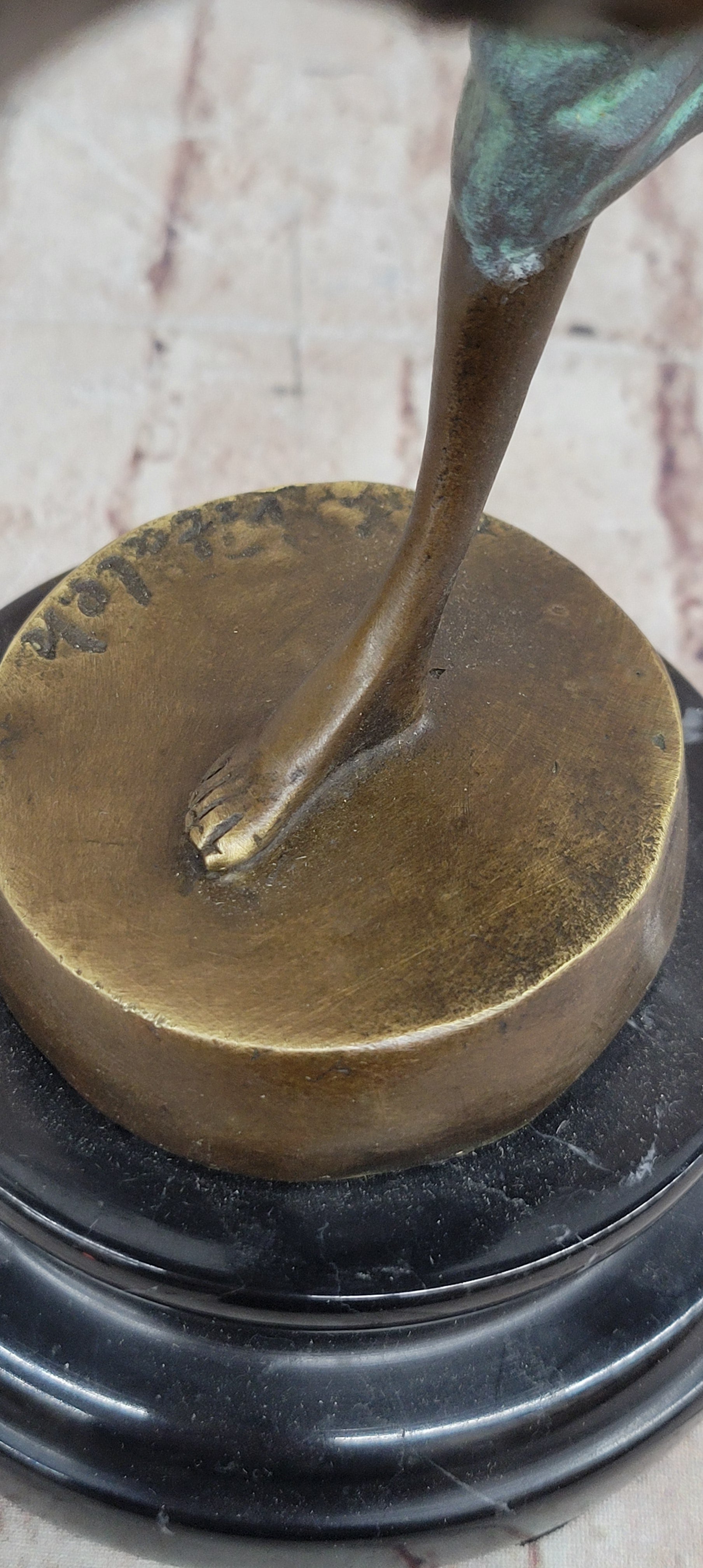Crafted using the time-honored "Lost Wax Method" and made of 100% bronze, this sculpture is a testament to the artist's skill and dedication. Mounted on a round black marble base with a two-tone brown and green patina finish, it adds a touch of sophistication to any space. Signed by Aldo Vitaleh, this sculpture is not just a stunning piece of art but also a symbol of the artistry and passion that define the world of ballet.Bronze Dimensions with Marble Base: Height 13" X Width 8"