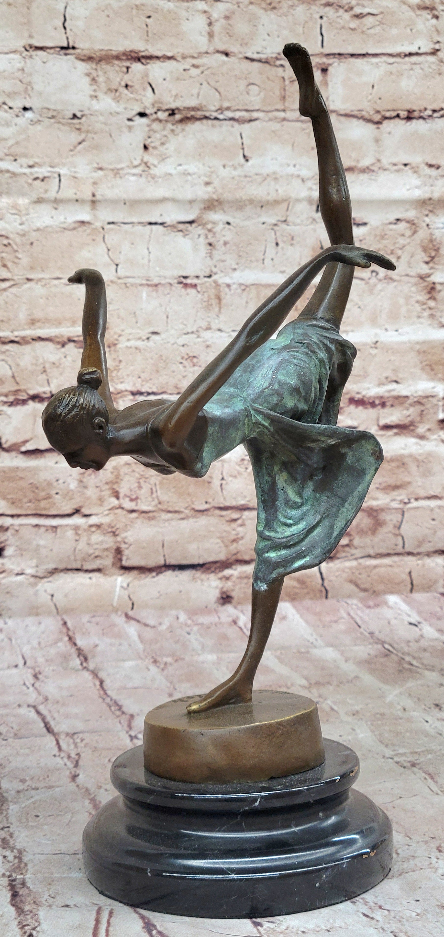 Hot Cast Bronze Dancer Girl w/ Green Patina Dress - Original Art Sculpture by Aldo Vitaleh