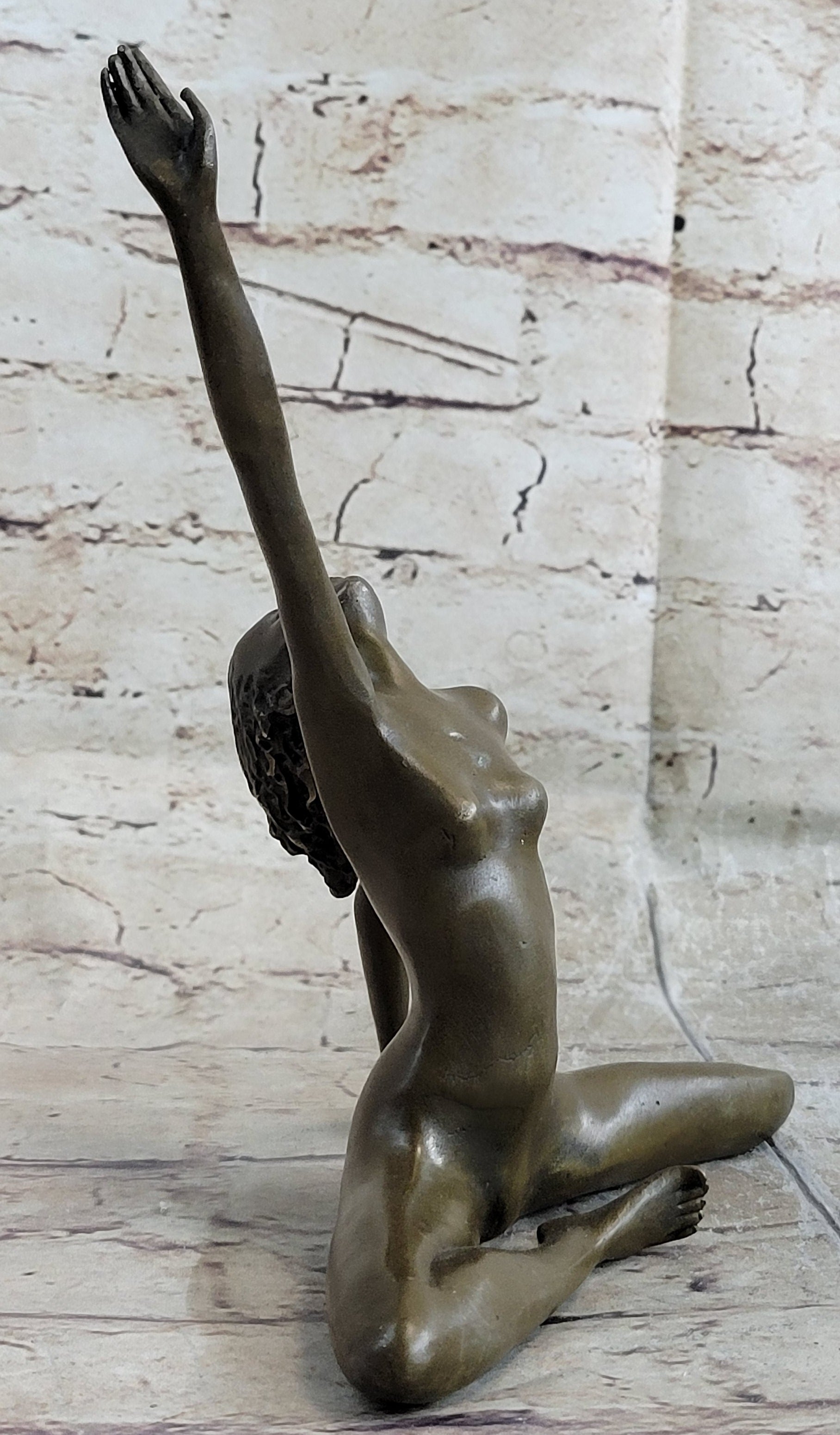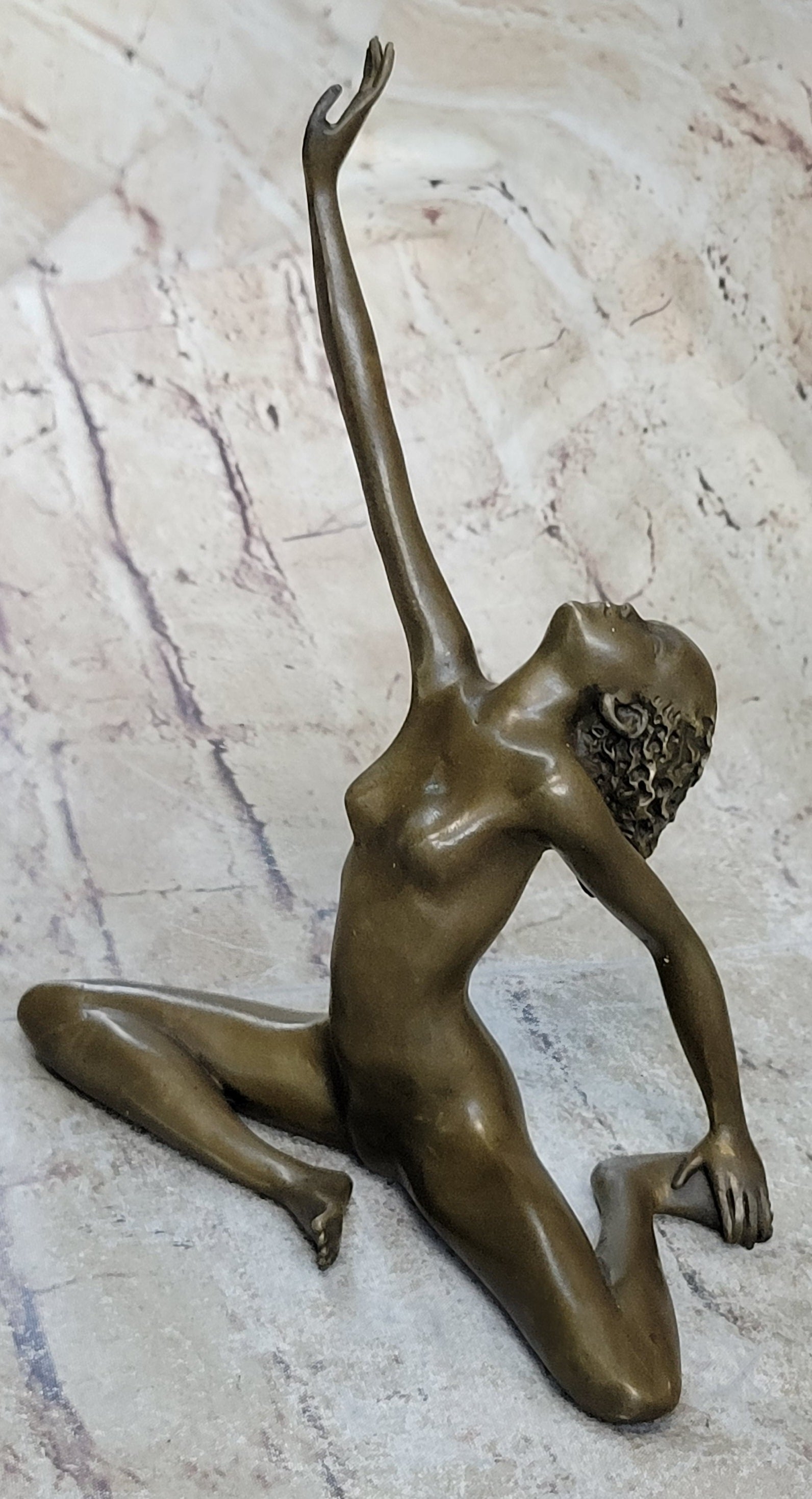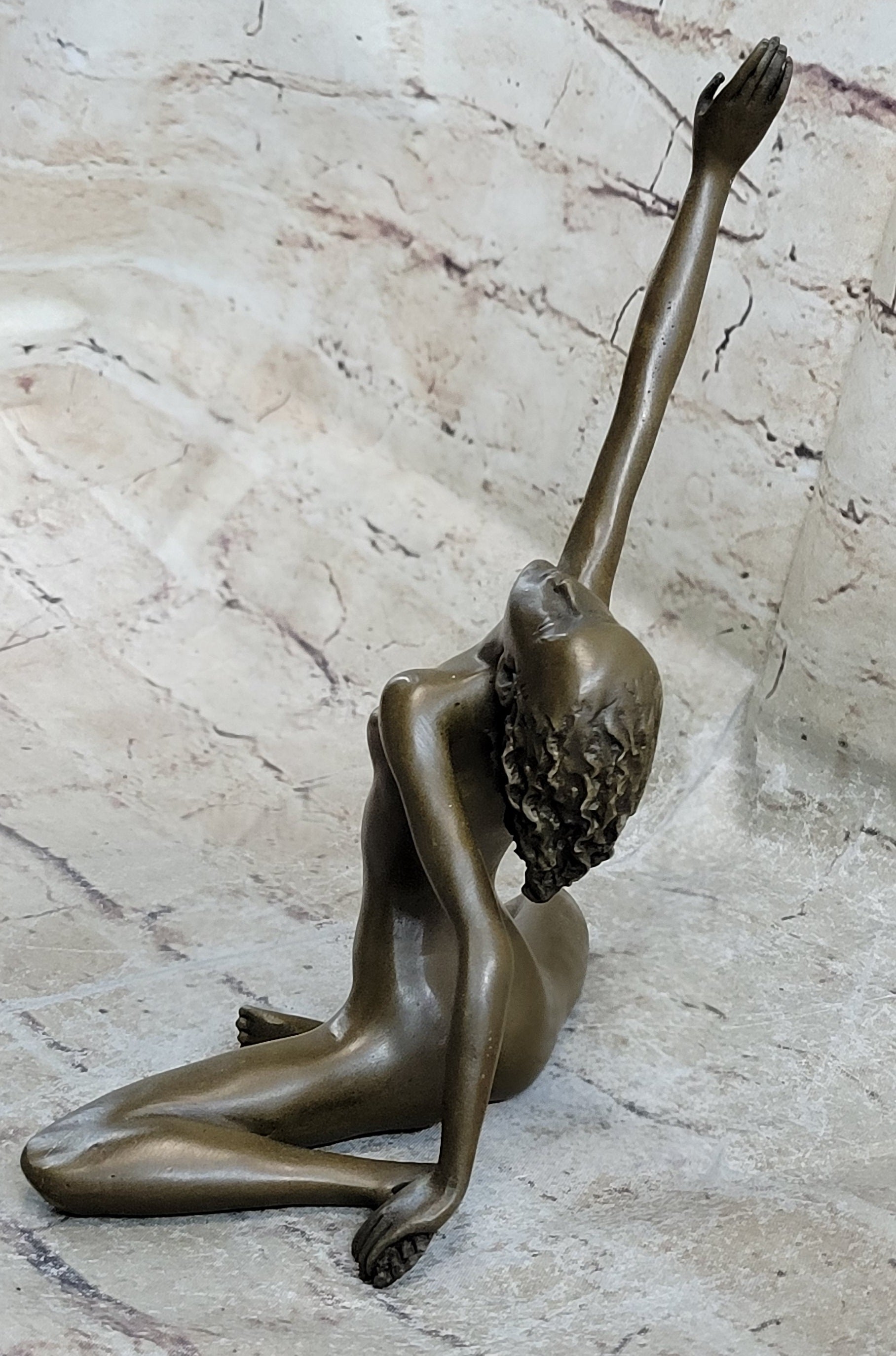 Every detail of this sculpture has been meticulously crafted, capturing the intricacies of the human form. The lines of her ribcage gracefully extend, accentuating her elegant posture. Created with utmost care, this sculpture is 100% bronze and entirely handmade, reflecting the artist's dedication to craftsmanship. The exquisite brown patina, achieved through the revered "Lost Wax Method," adds depth and richness to the sculpture's surface.