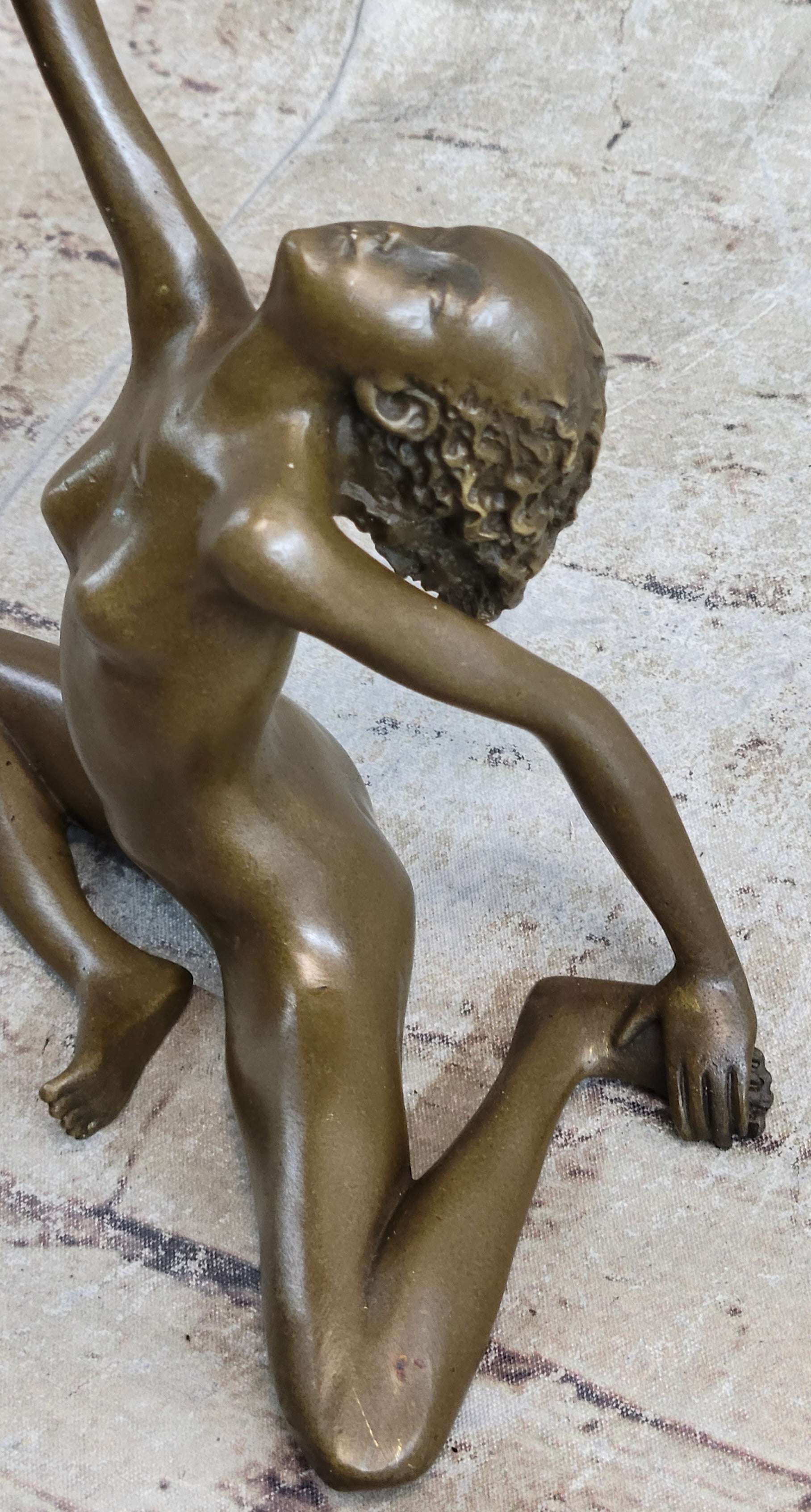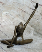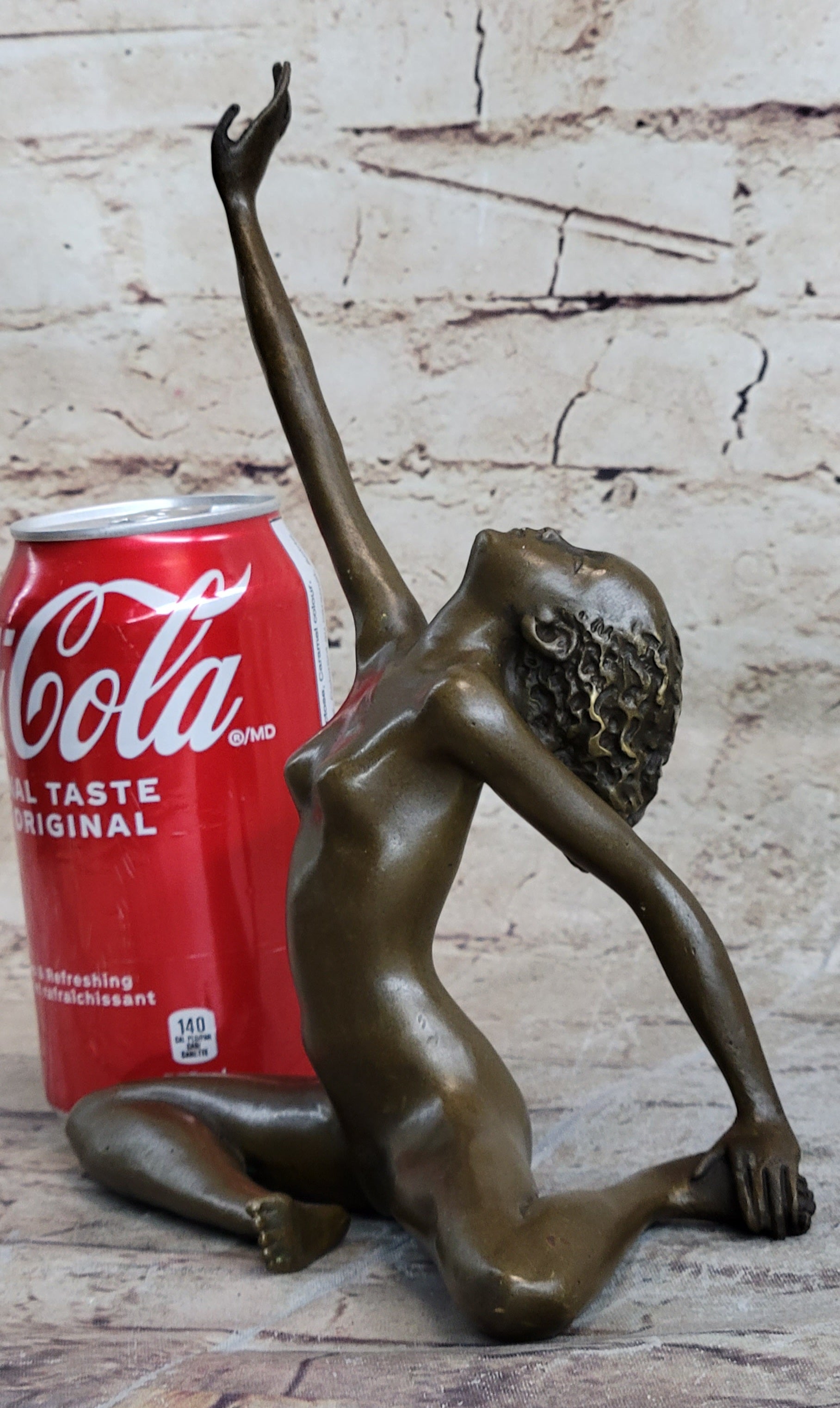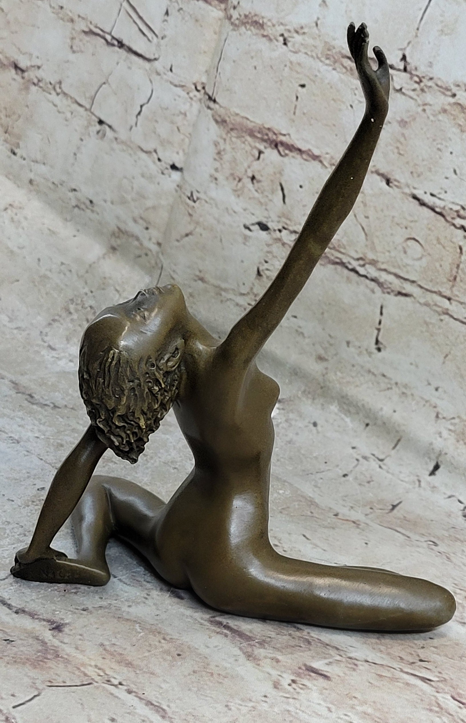Every detail of this sculpture has been meticulously crafted, capturing the intricacies of the human form. The lines of her ribcage gracefully extend, accentuating her elegant posture. Created with utmost care, this sculpture is 100% bronze and entirely handmade, reflecting the artist's dedication to craftsmanship. The exquisite brown patina, achieved through the revered "Lost Wax Method," adds depth and richness to the sculpture's surface.
