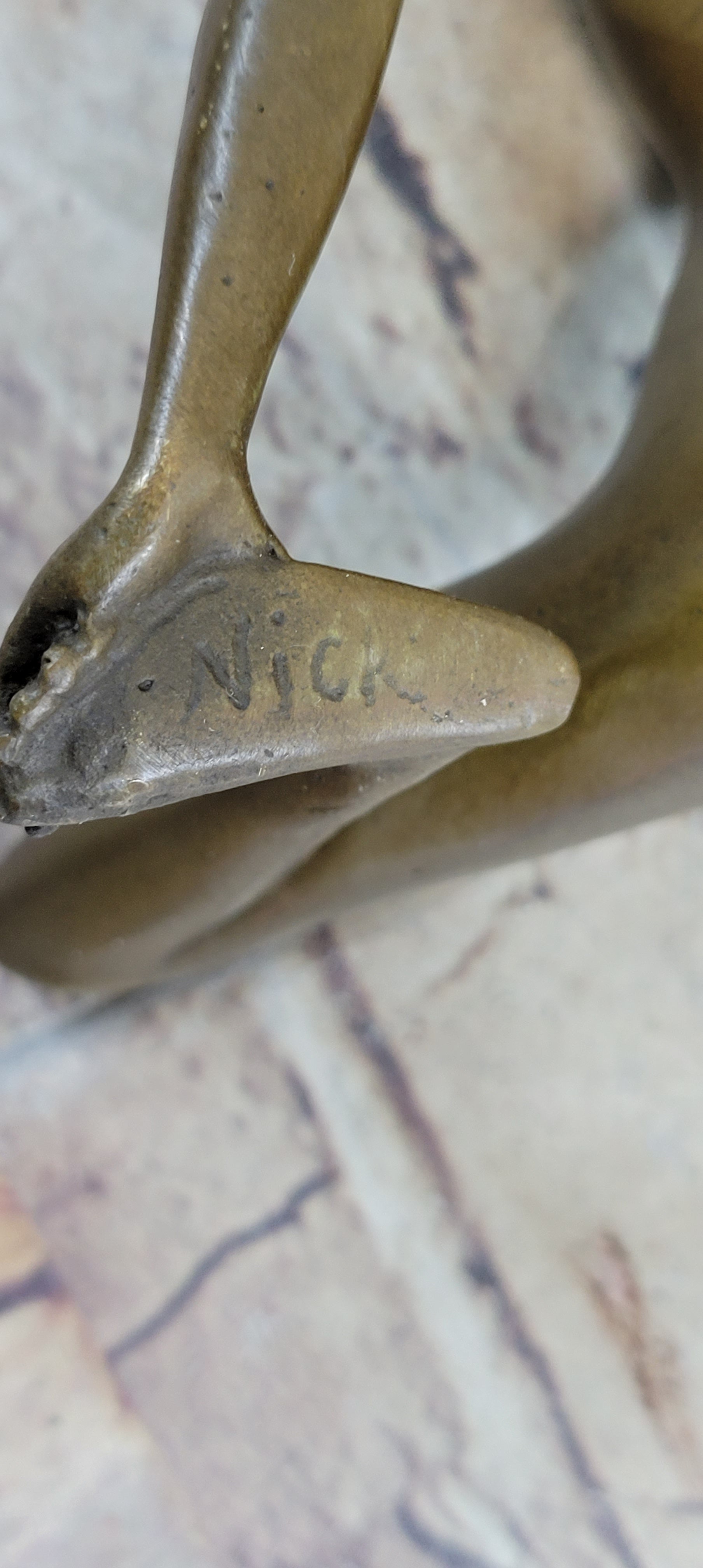 A testament to its authenticity, this sculpture proudly bears the signature of the acclaimed artist, Nick. It is a timeless piece that celebrates the symbiotic relationship between art and muse, inviting viewers to appreciate the beauty and inspiration that emerge from the creative process. Whether displayed in an art collection or as a centerpiece in a space that celebrates artistic expression, this sculpture will undoubtedly captivate and inspire all who encounter it.Bronze Dimensions :Height 9" X 9"
