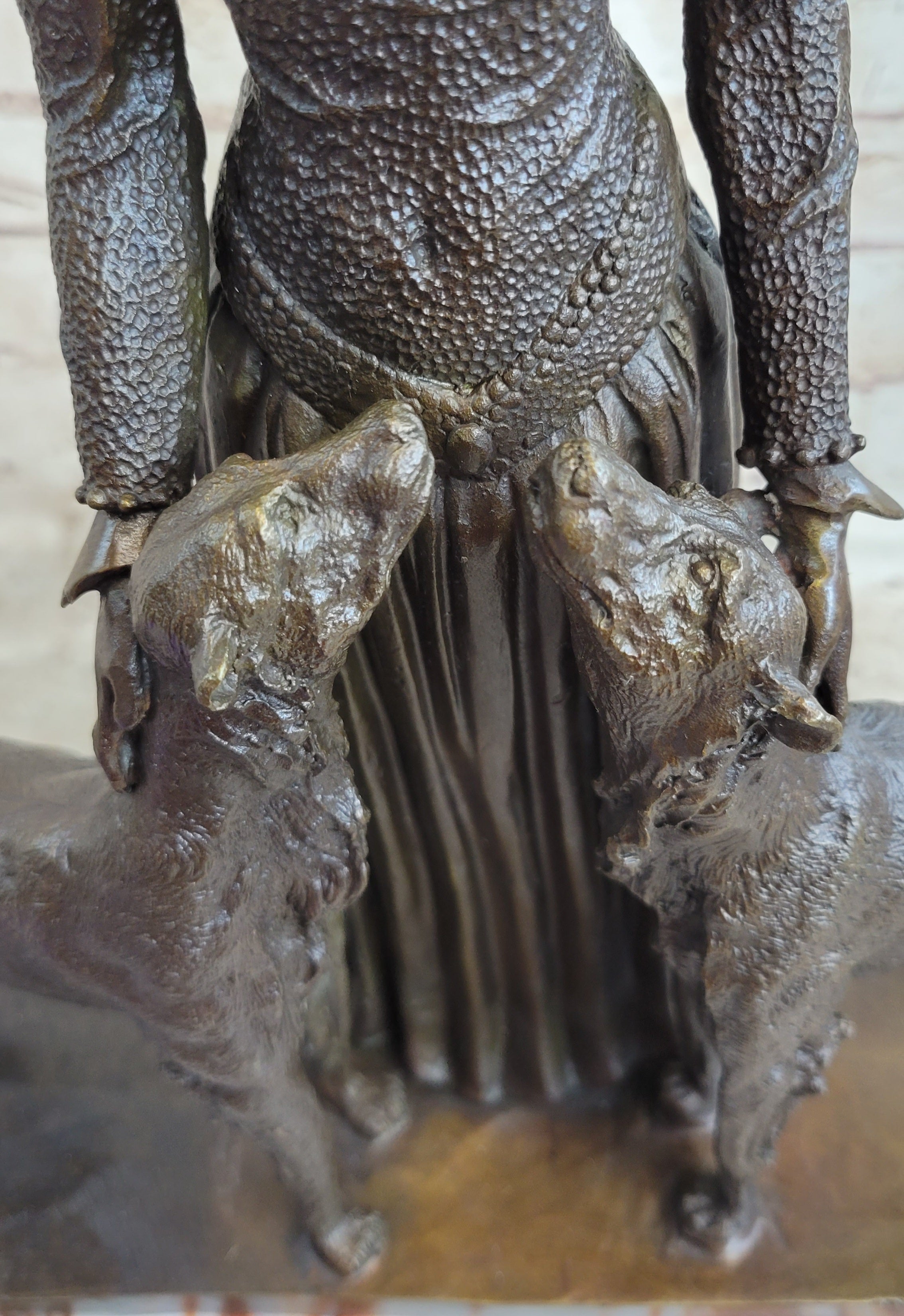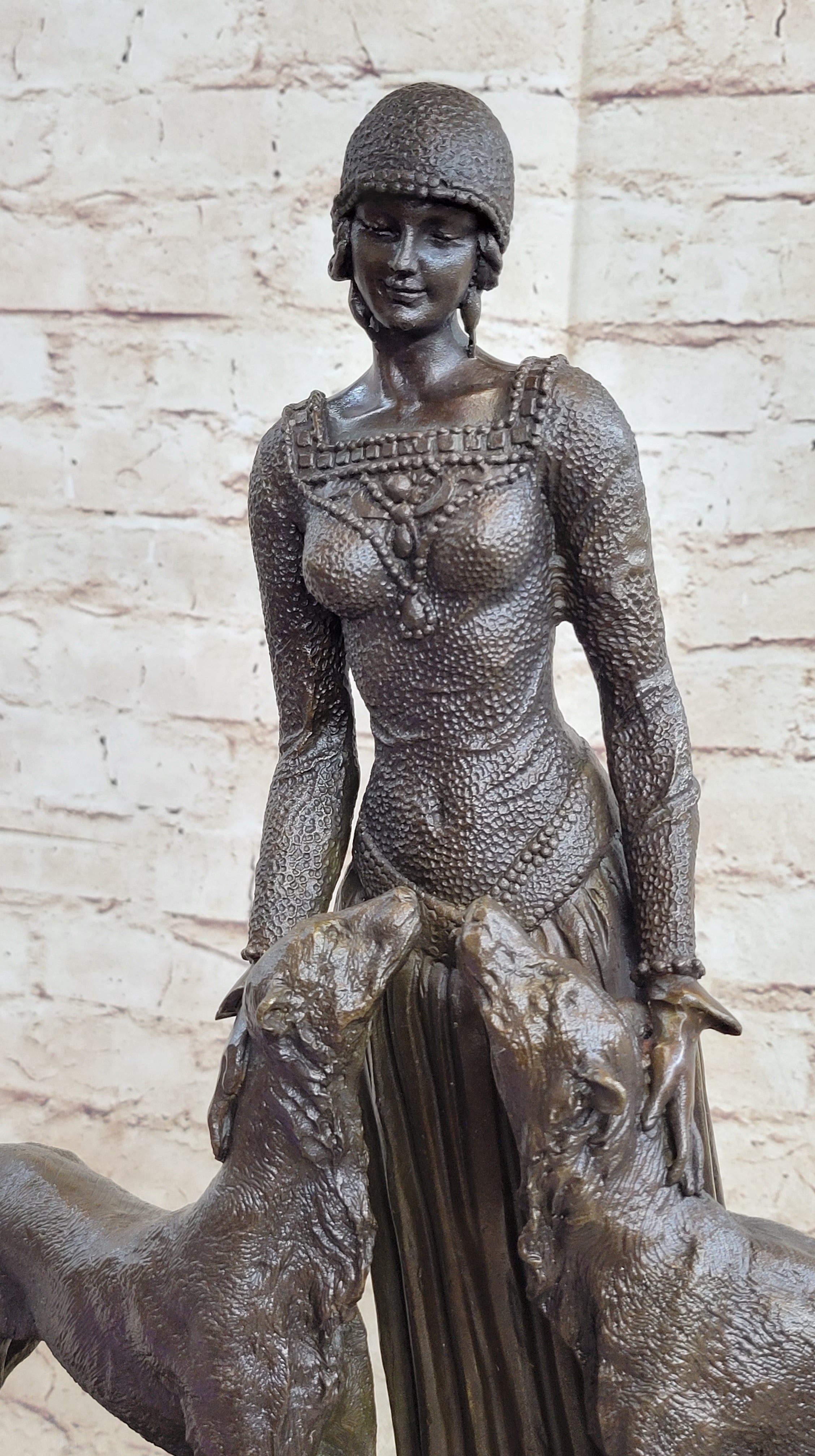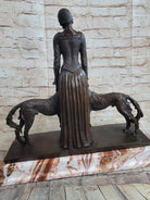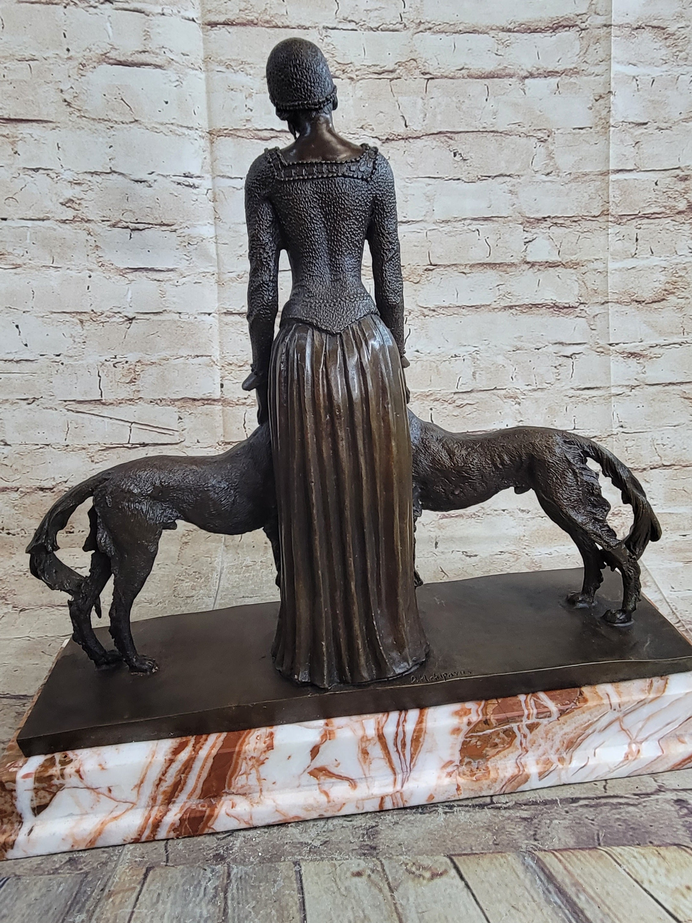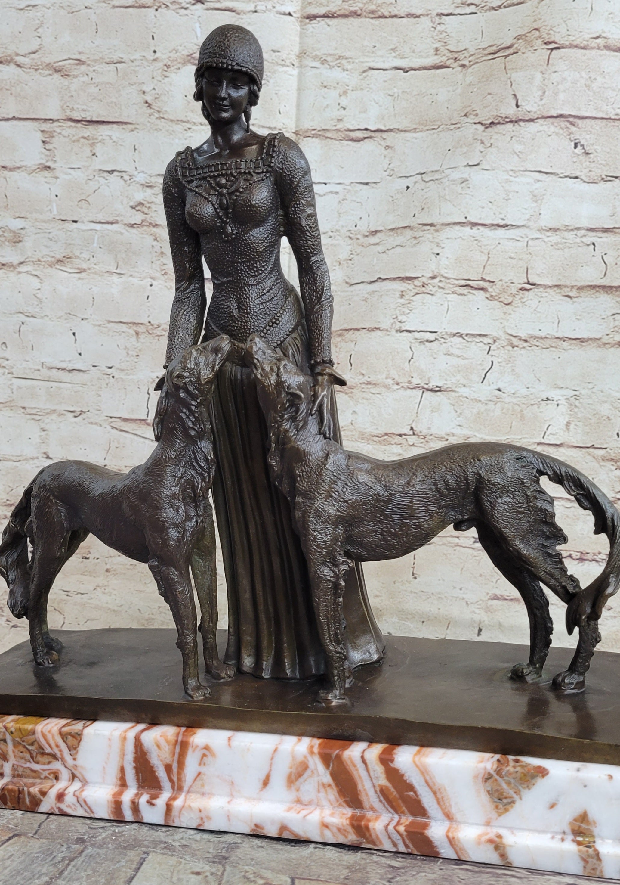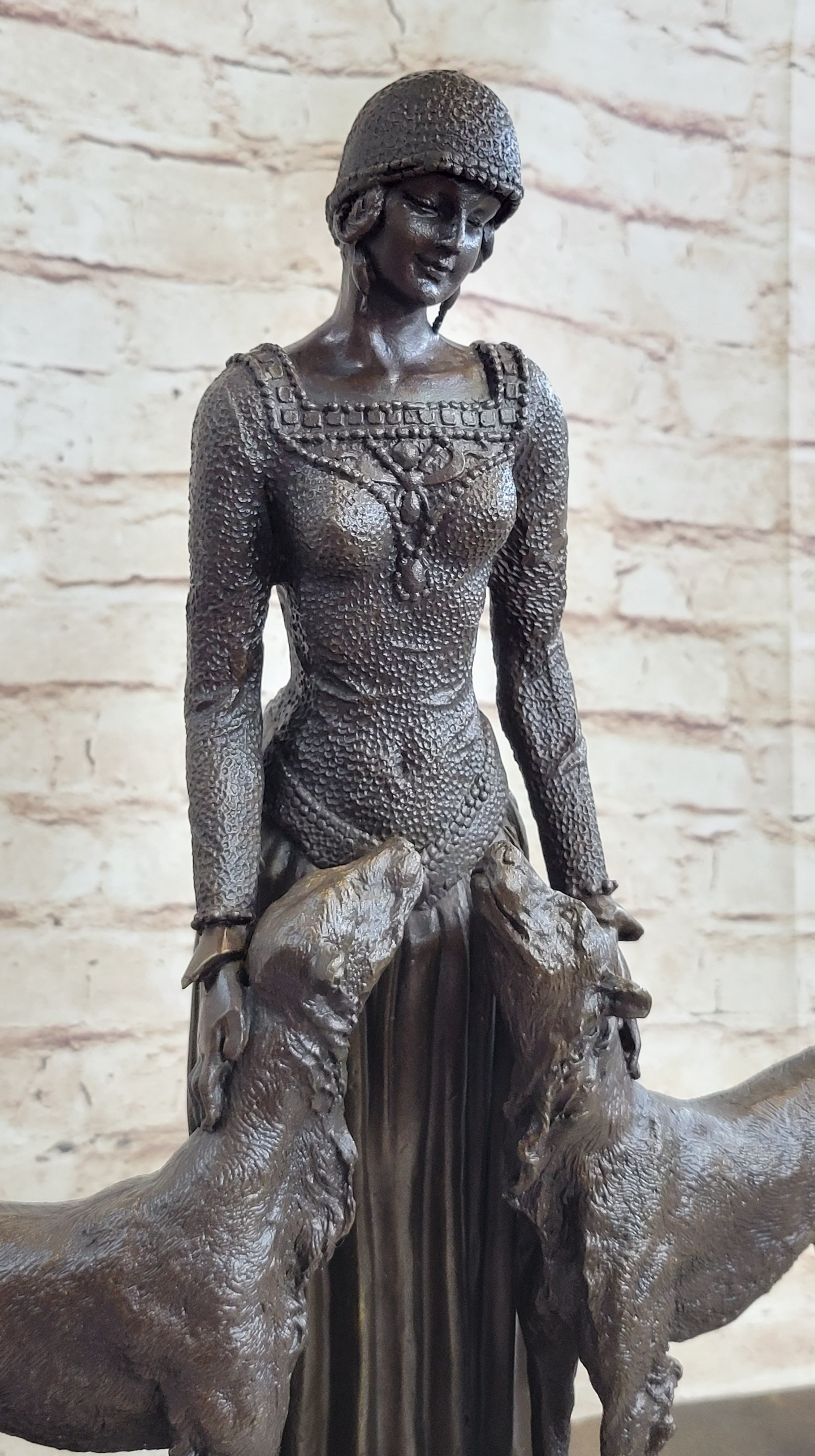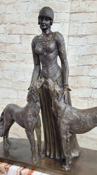Lady with 2 Borzoi Dogs Chiparus Art Deco Bronze Statue Sculpture 18" x 6"