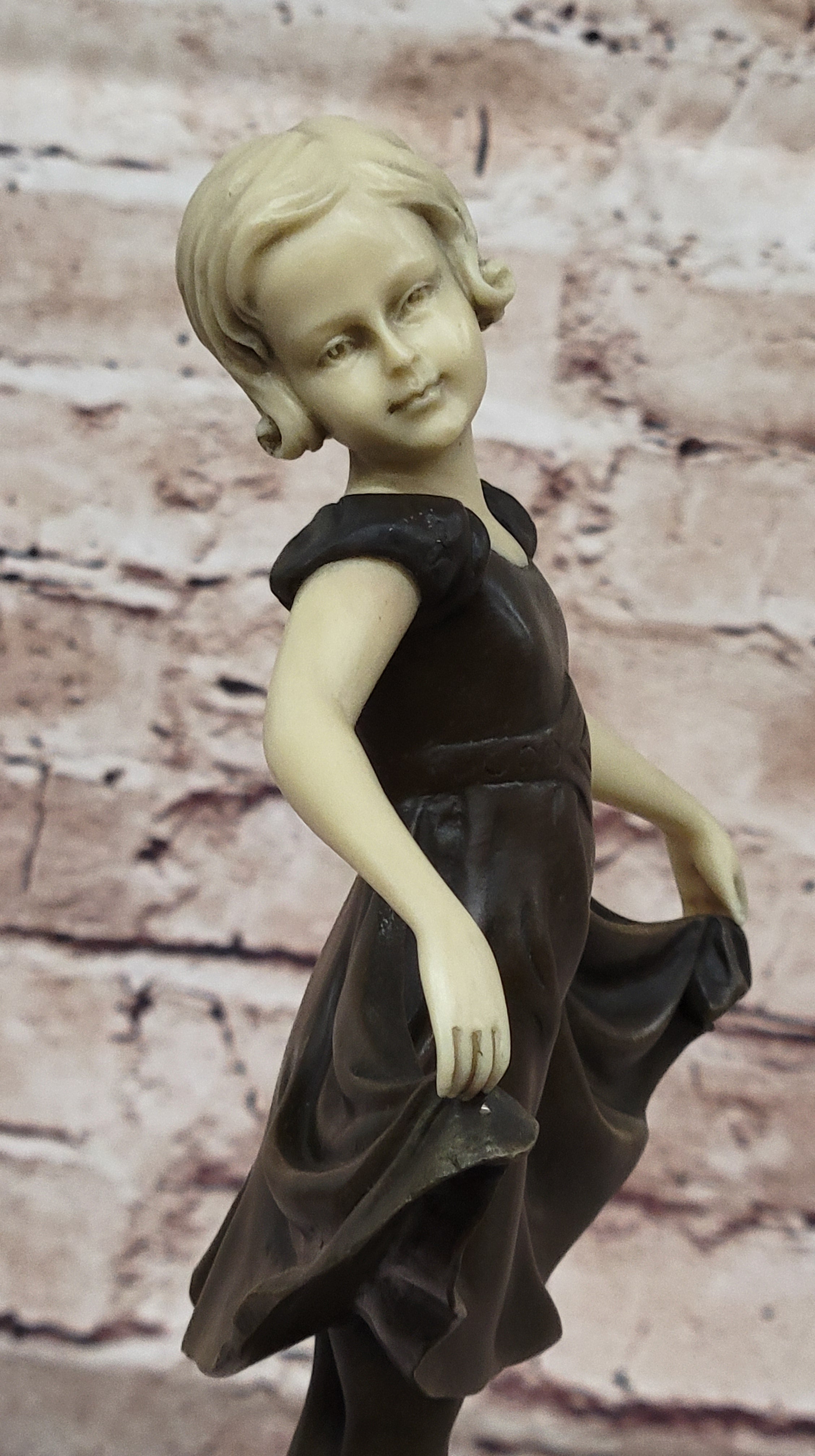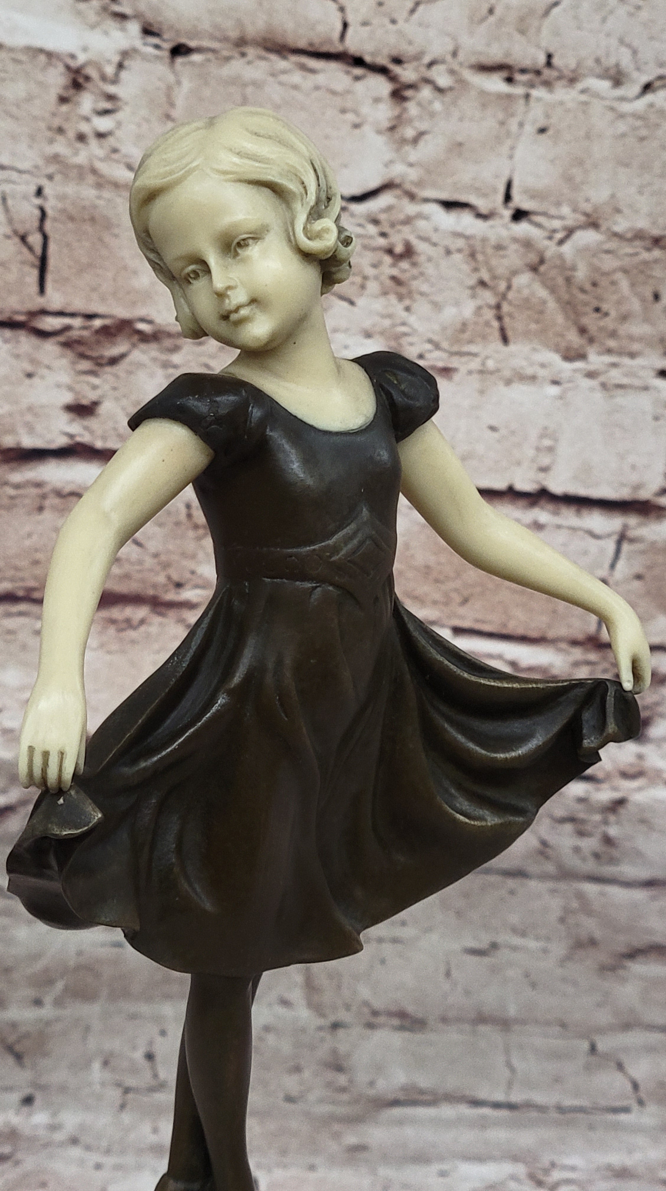 Little Girl Dancer Doing a Curtsy - Bronze Sculpture w/ Resin Arms & Head Handmade Art