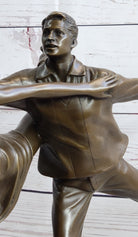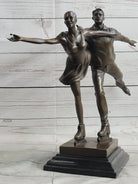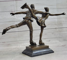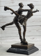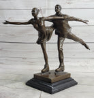 Male & Female Pair of Figure Skaters Ice Skating Bronze Sculpture Statue on Marble Base