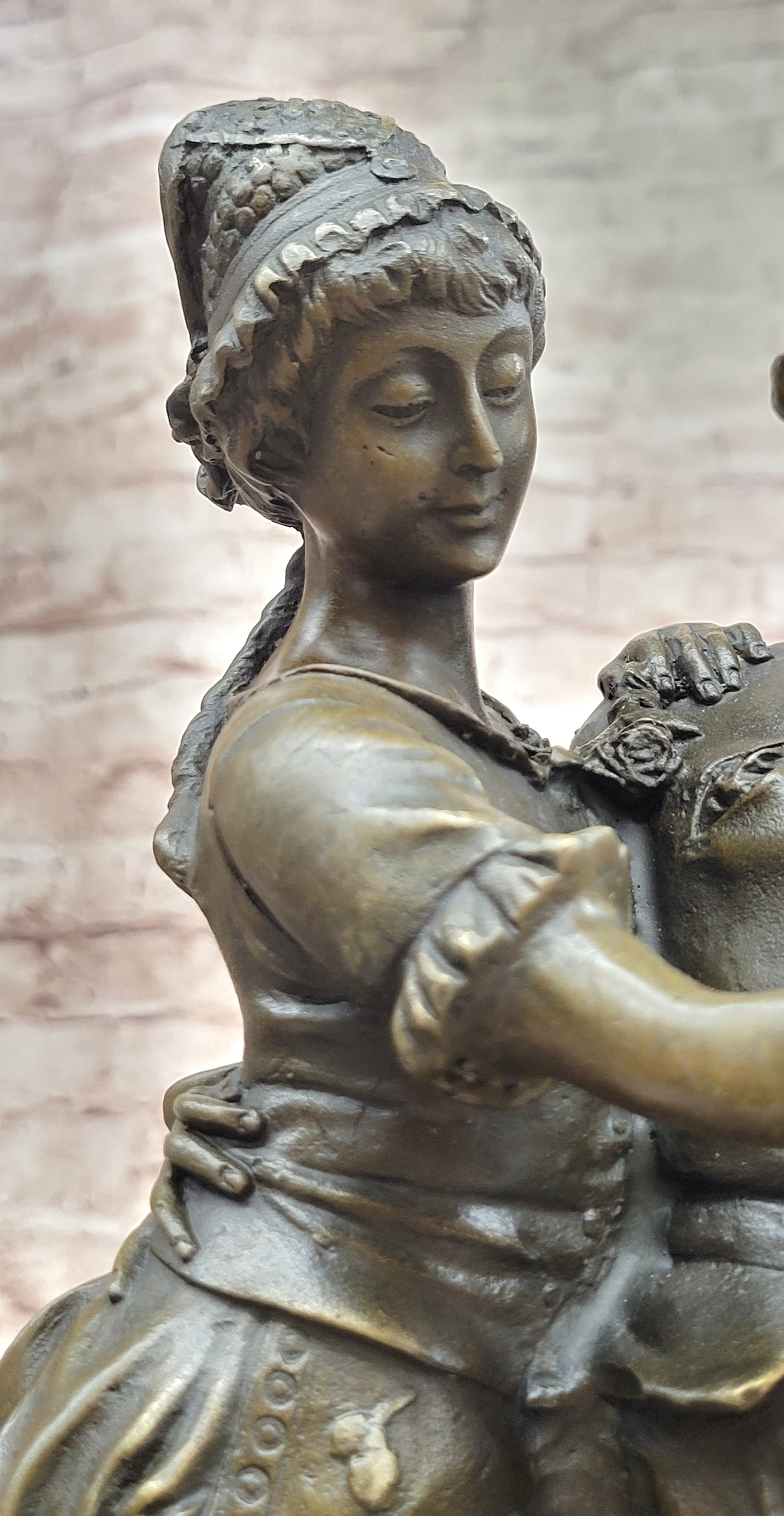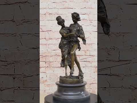 Step into a world of passion and emotion with this captivating bronze sculpture that tells a tale of love and longing. Depicting a poignant scene, a young woman stands before her suitor, torn between her emotions and her resolve. The sculpture beautifully captures the tension between them as she reluctantly offers her hand, a delicate movement that signifies a hesitant reconciliation.