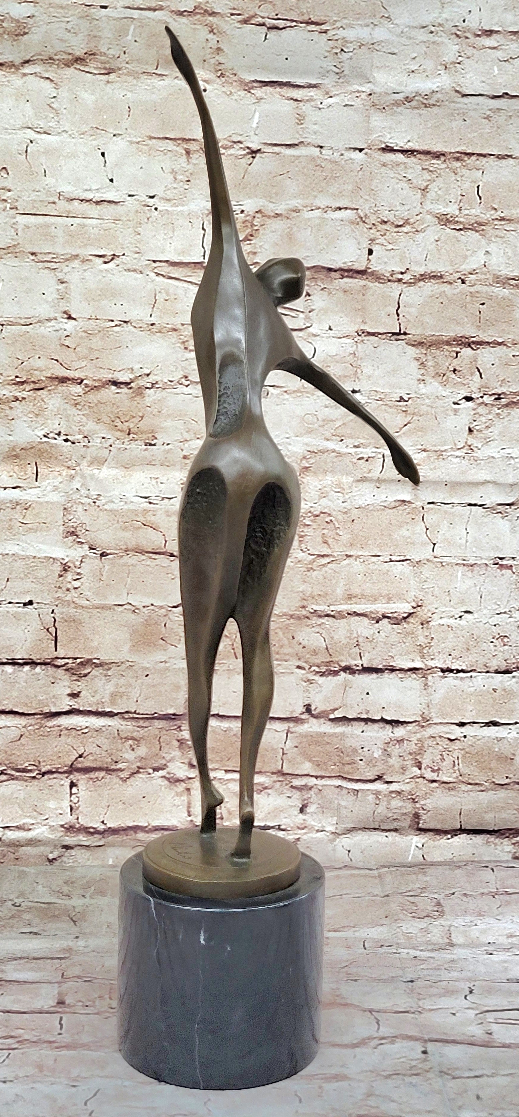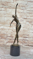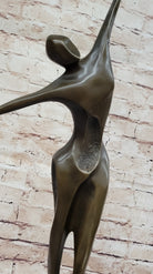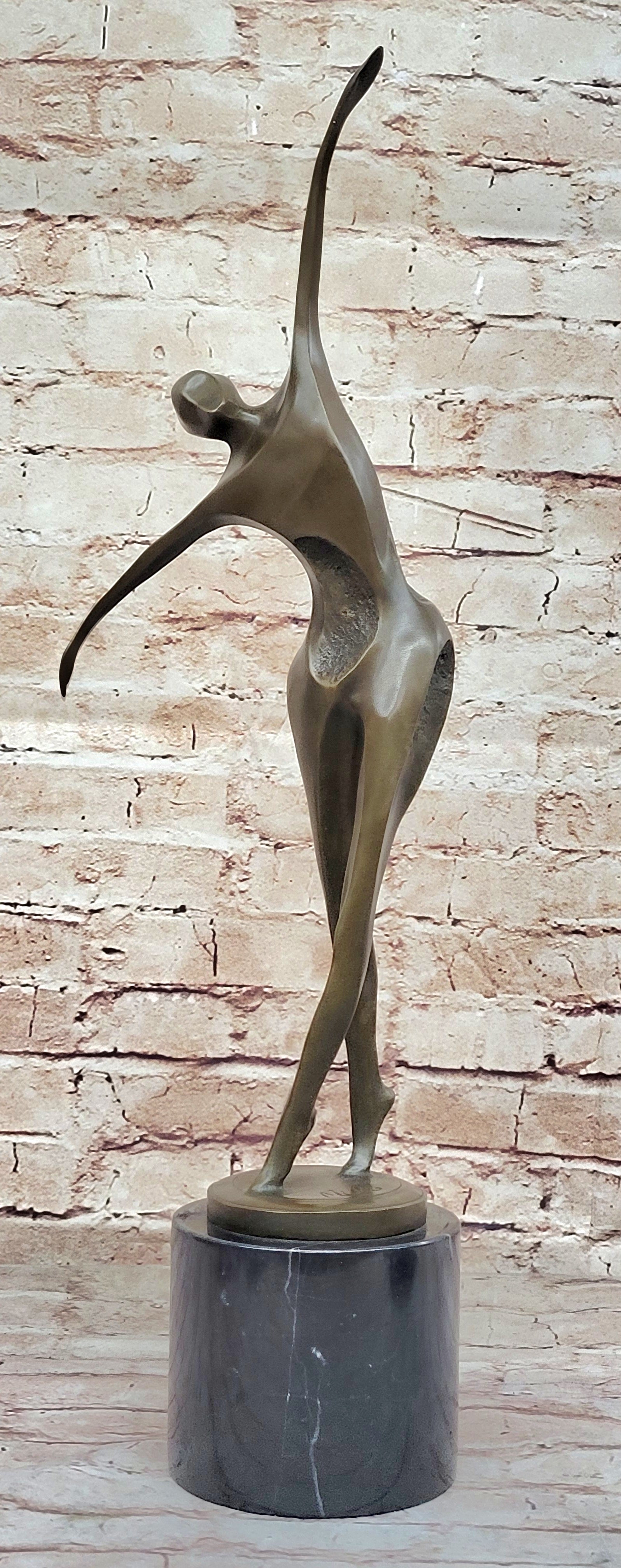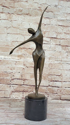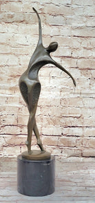 Midcentury Modern Abstract Art Human Dancer Figure Bronze Sculpture on Marble Base