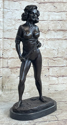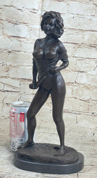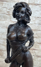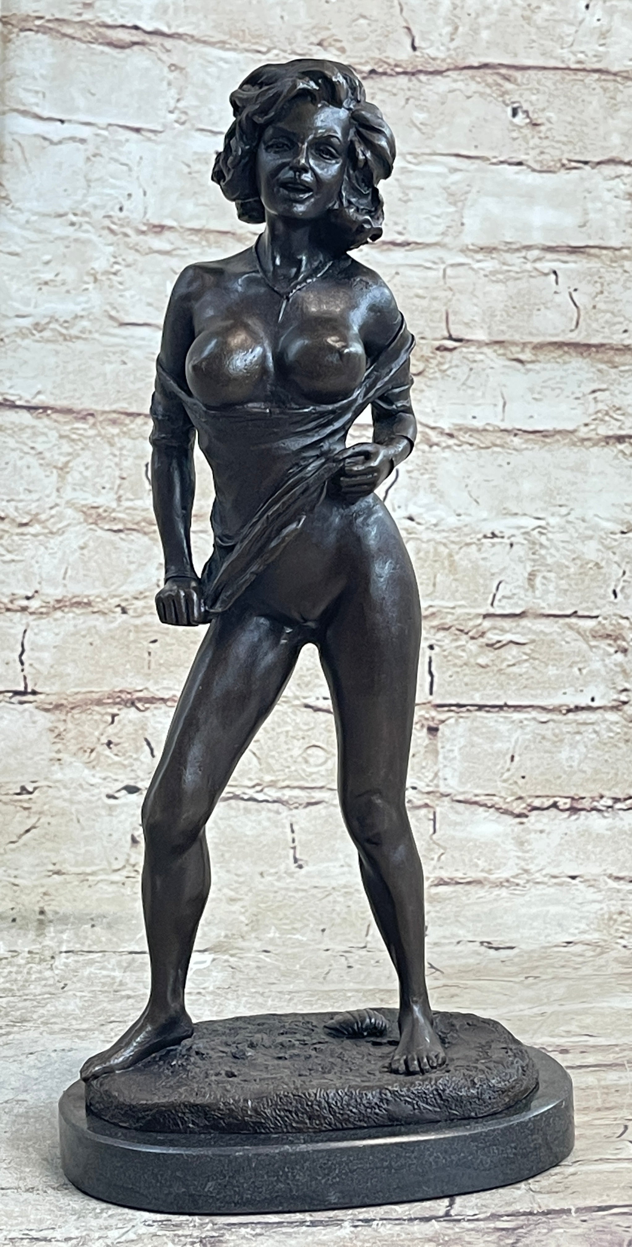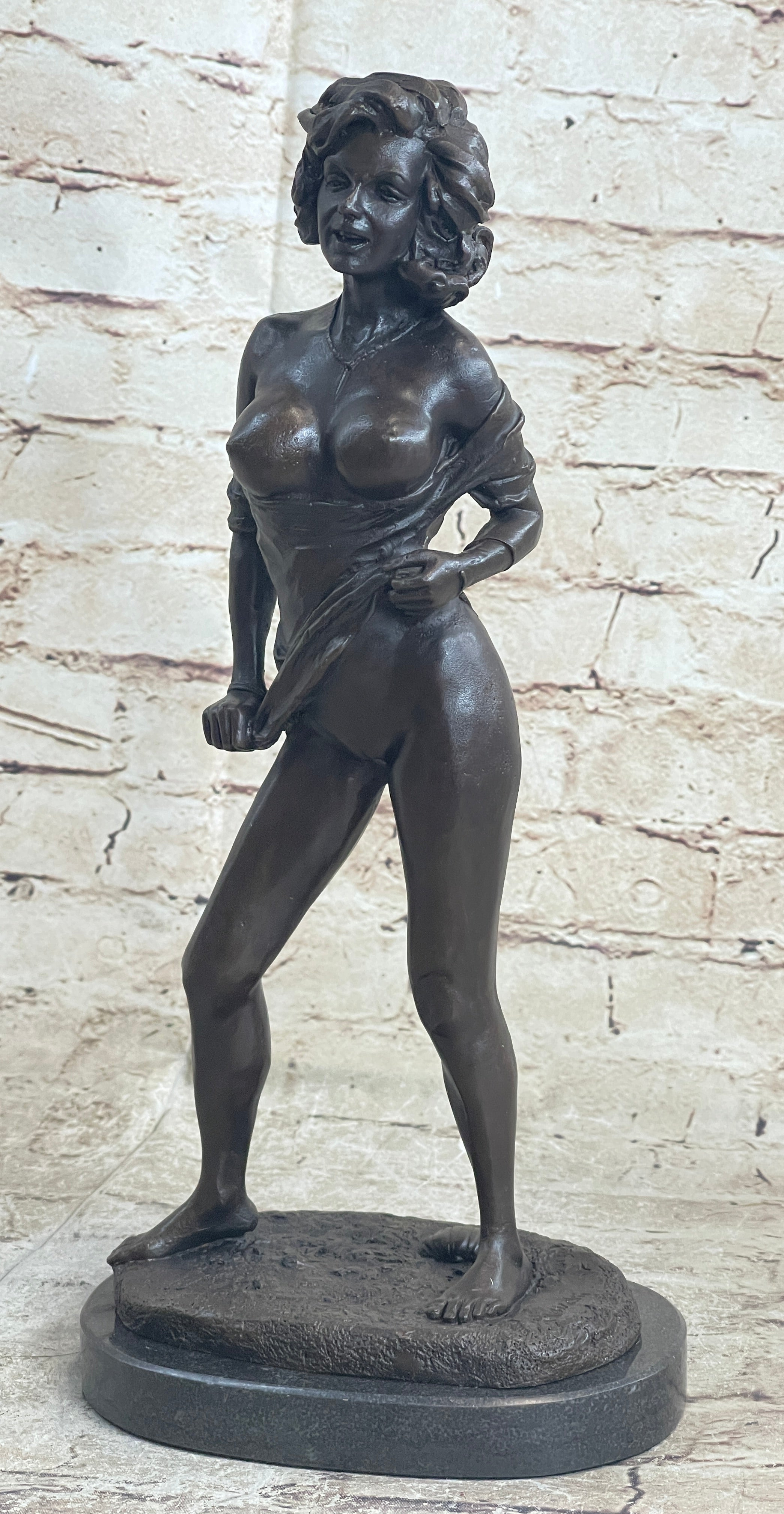 Nude Exhibitionist Girl Bronze Sculpture Statue Contemporary Art Female Figure on Marble Base