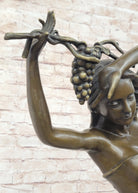 Nude Female Figure Sexy Girl Stretching Grapes Vineyard Wine Bronze Sculpture Statue Decor Original Art
