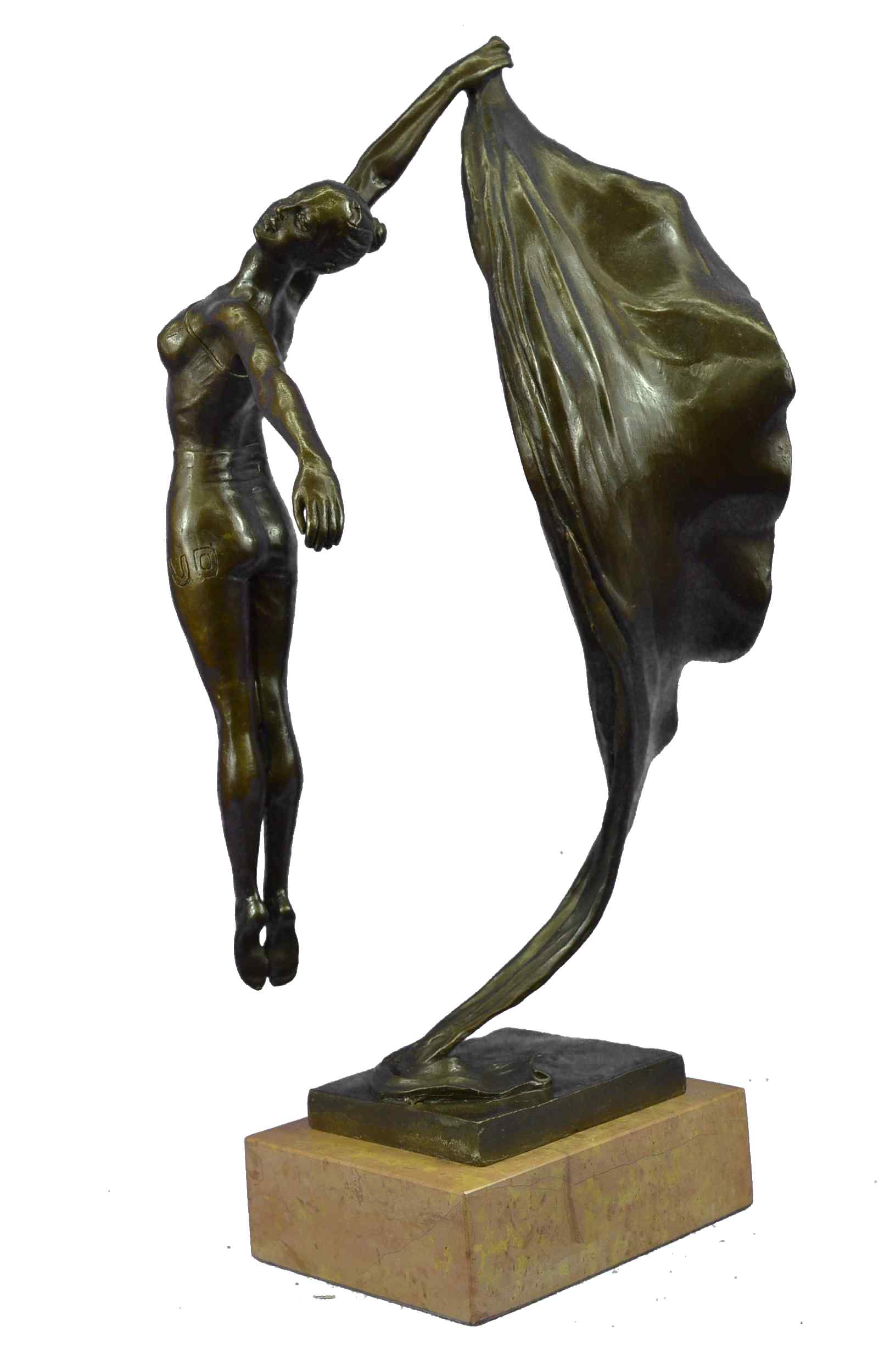 Nude Flag Dancer by Aldo Vitaleh Modern Art Bronze Sculpture Marble Statue Decor