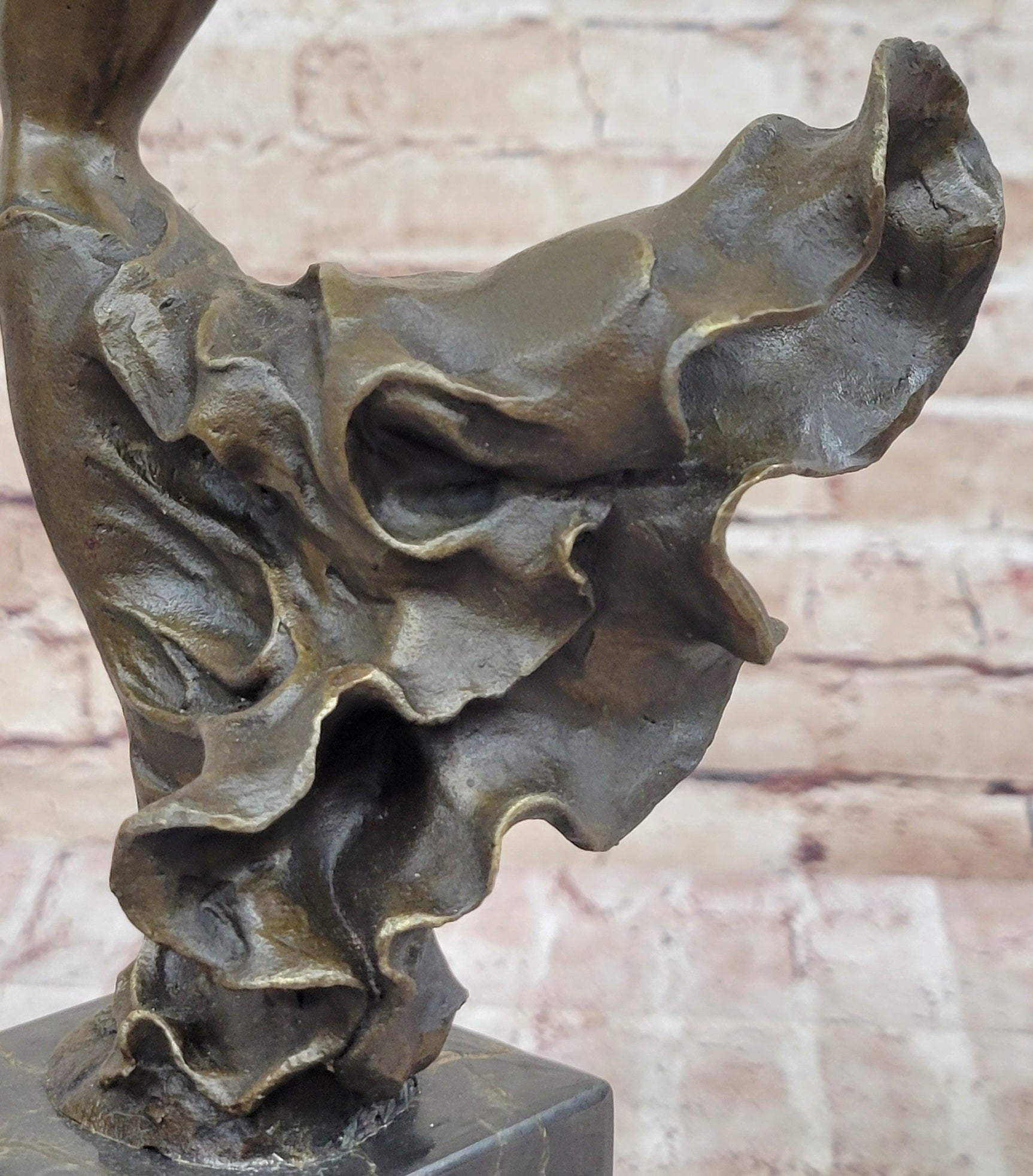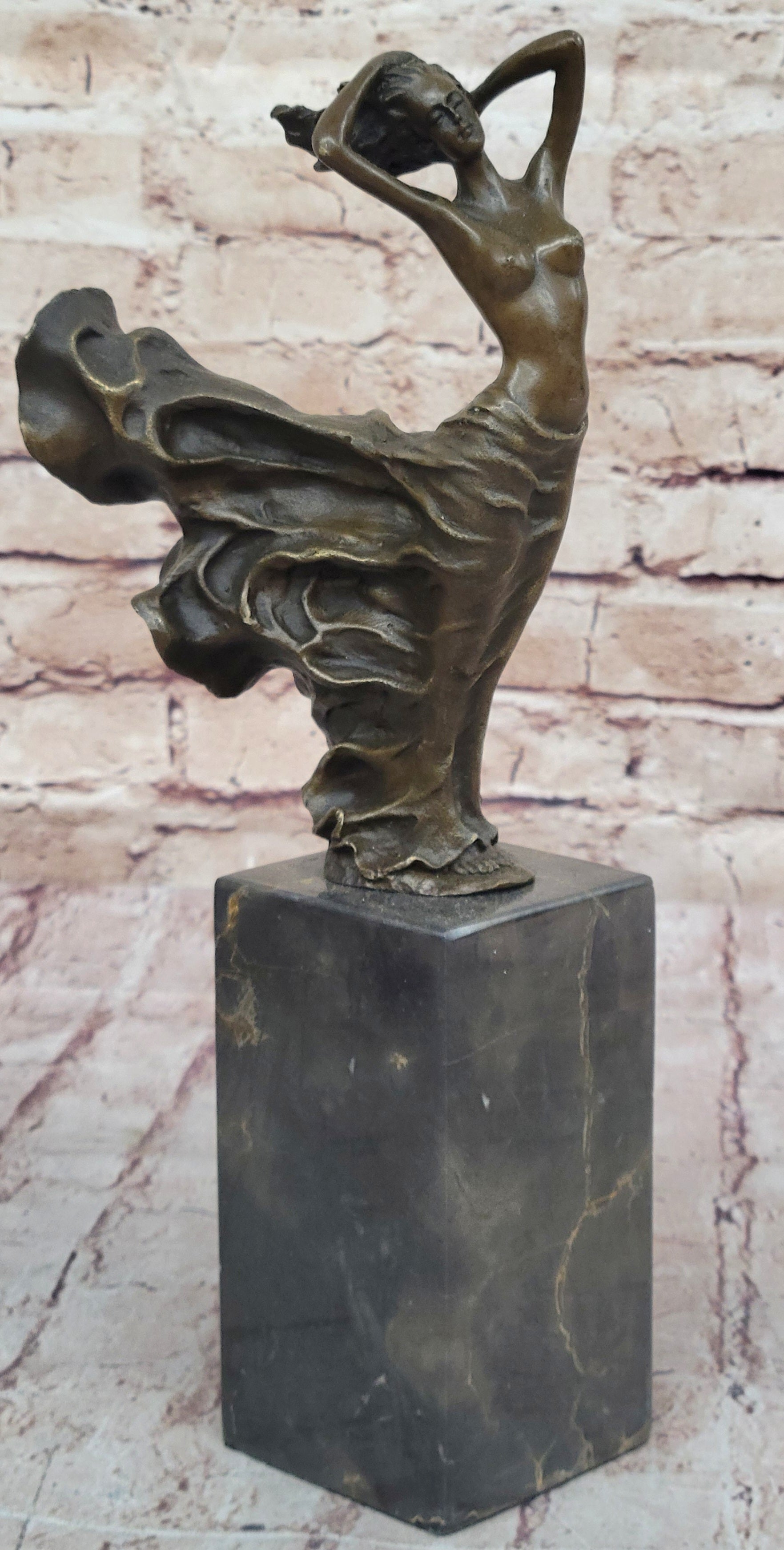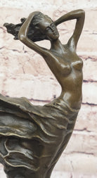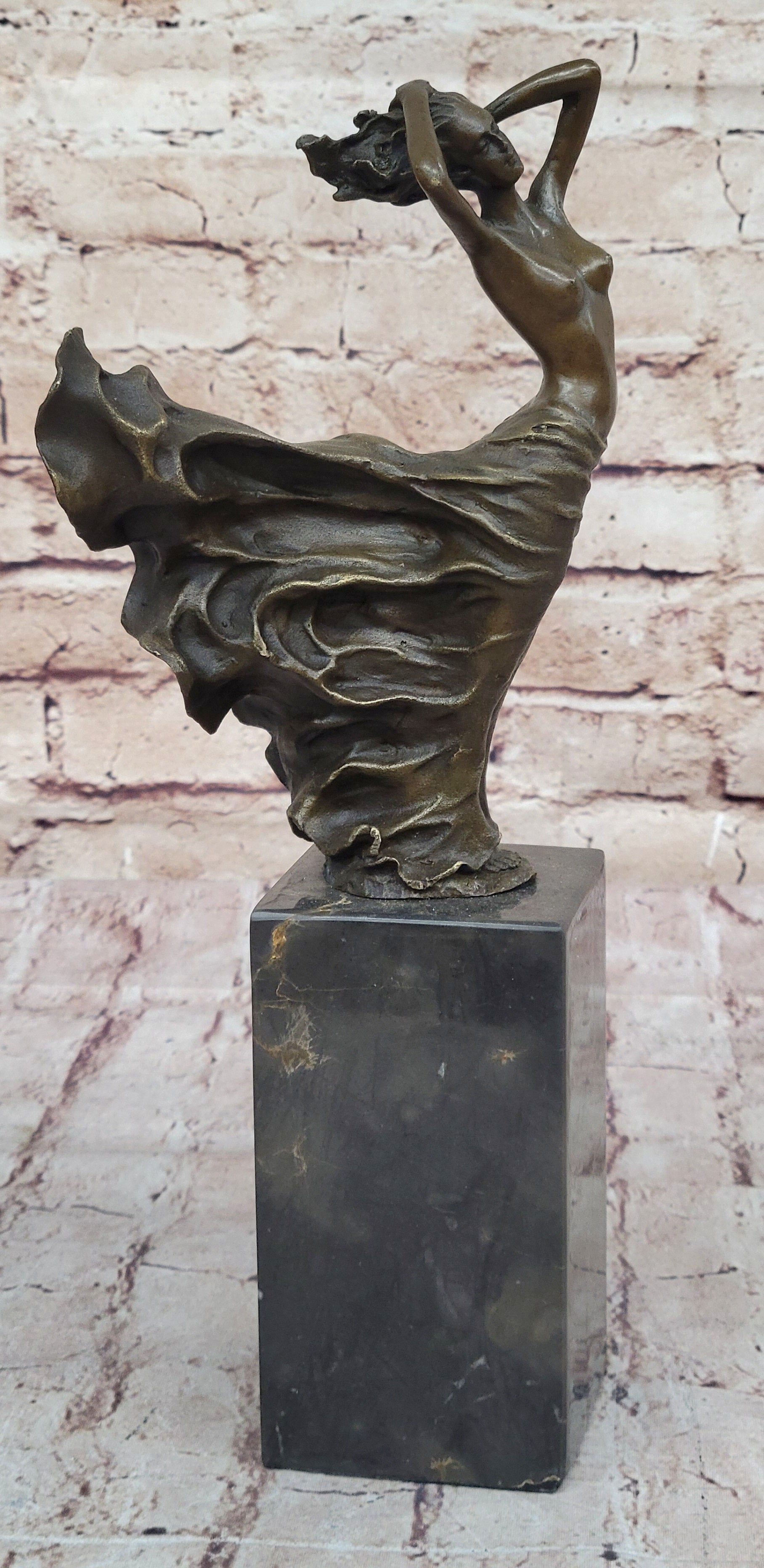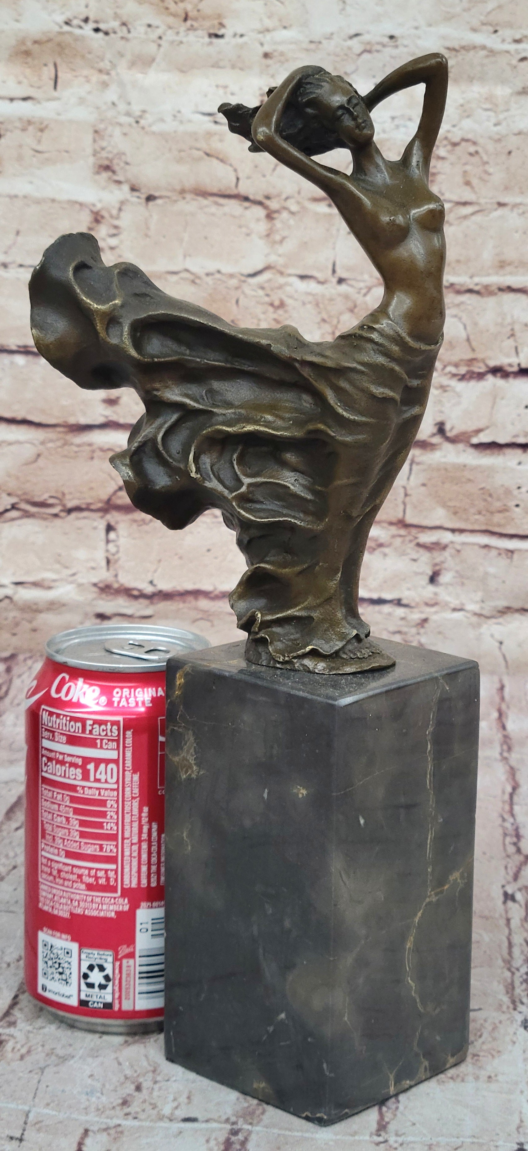 Nude Girl w/ Dress Blowing in the Wind Bronze Sculpture Statue Figure Signed Art