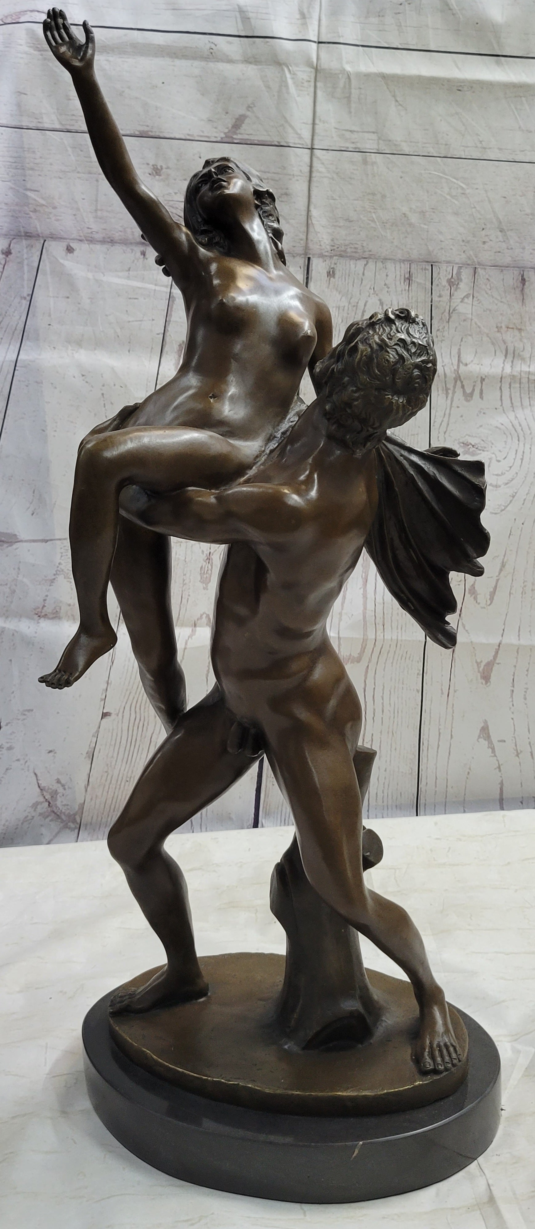 Nude Man Lifting Woman Bronze Sculpture Statue Original Neoclassical Art 28" x 19"