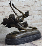 ORIGINAL BRONZE STATUE FREE AS BIRD BALLERINA DANCER ART DECO MARBLE FIGURINE NR