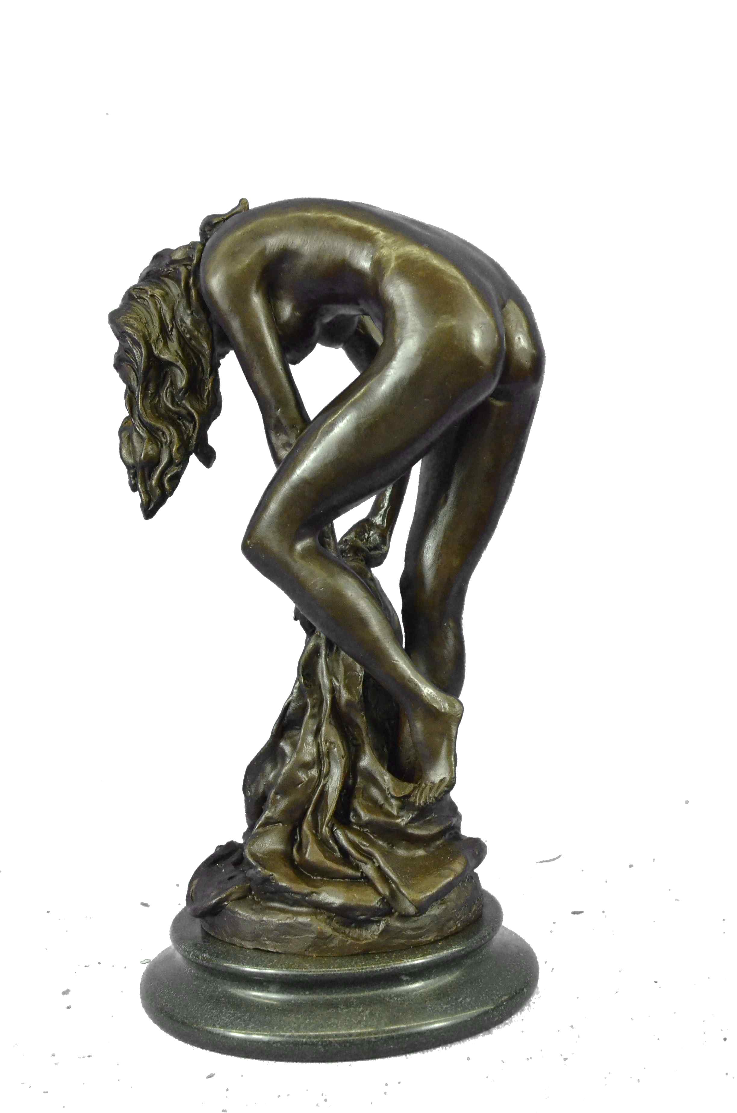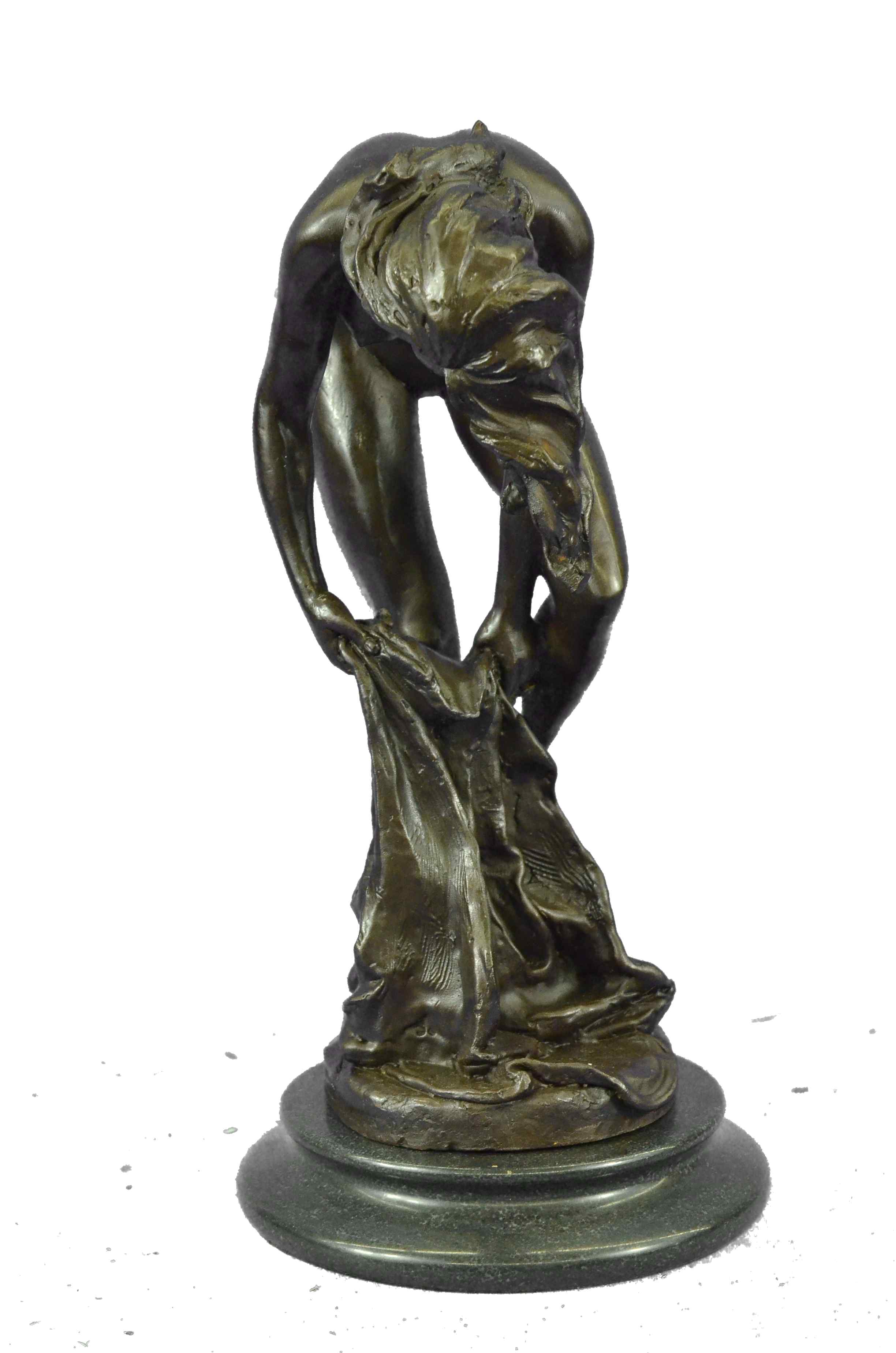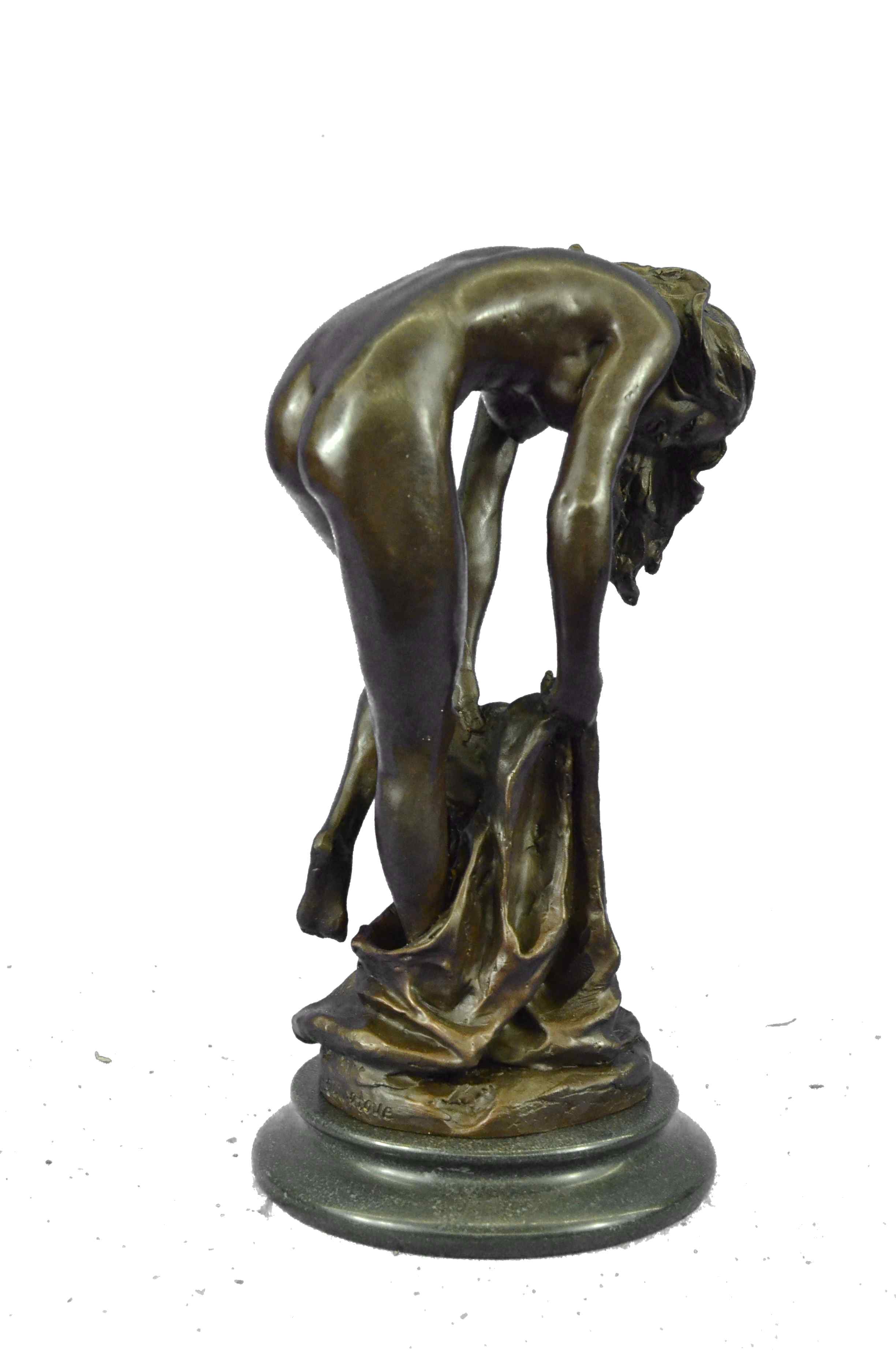 Original French Artist Jean Patoue Nude Female Standing on Rock Bronze Sculpture
