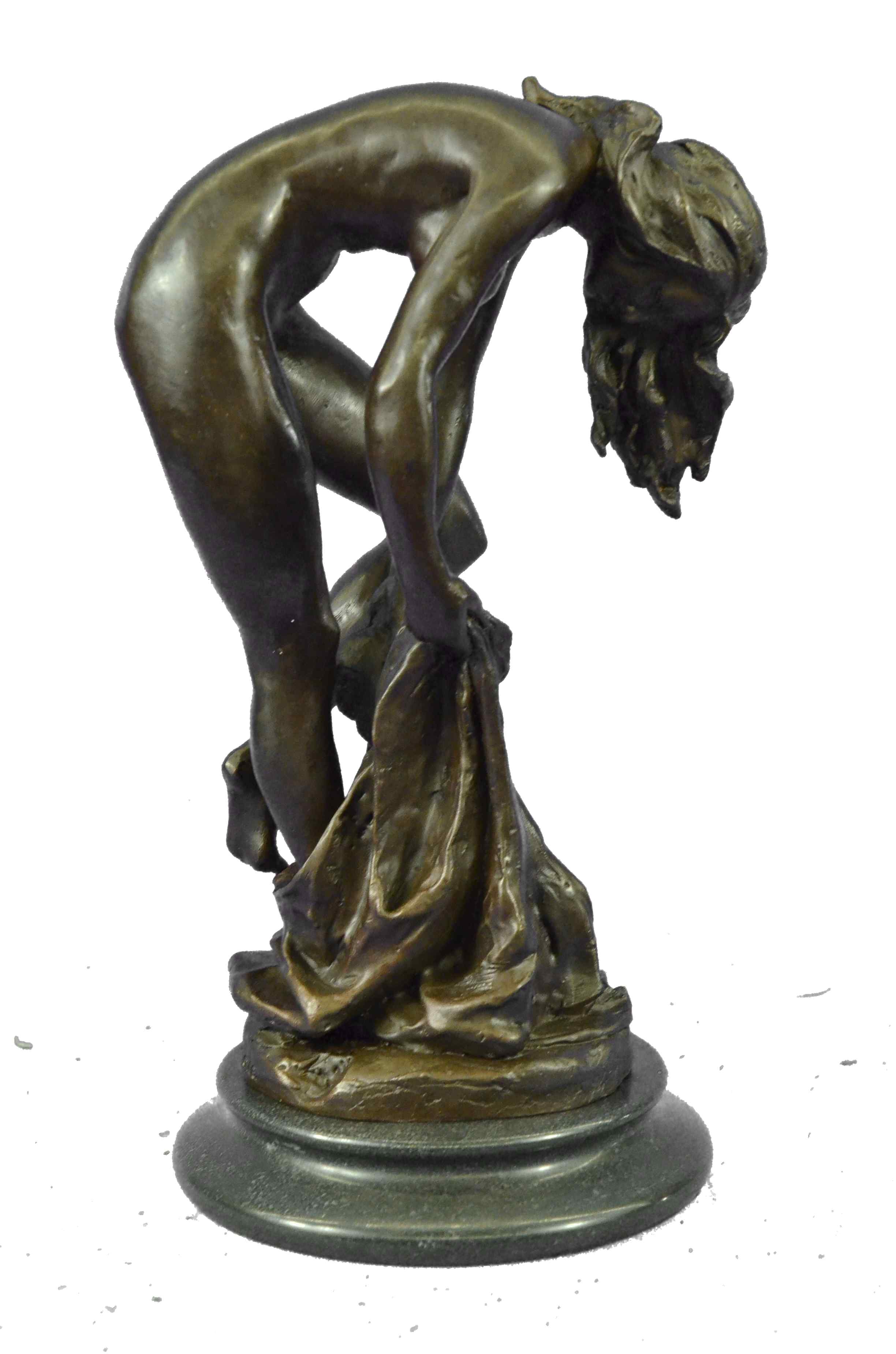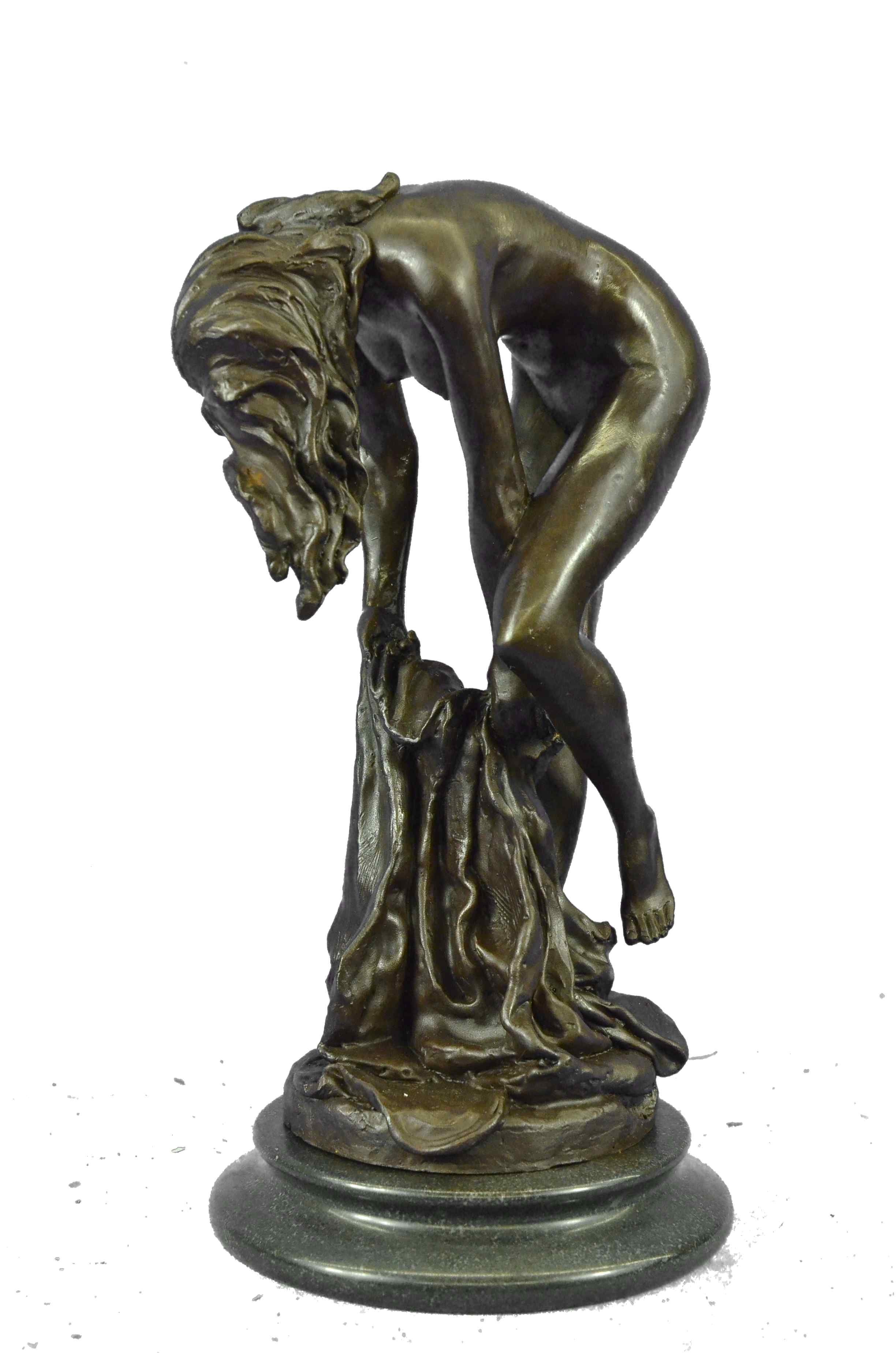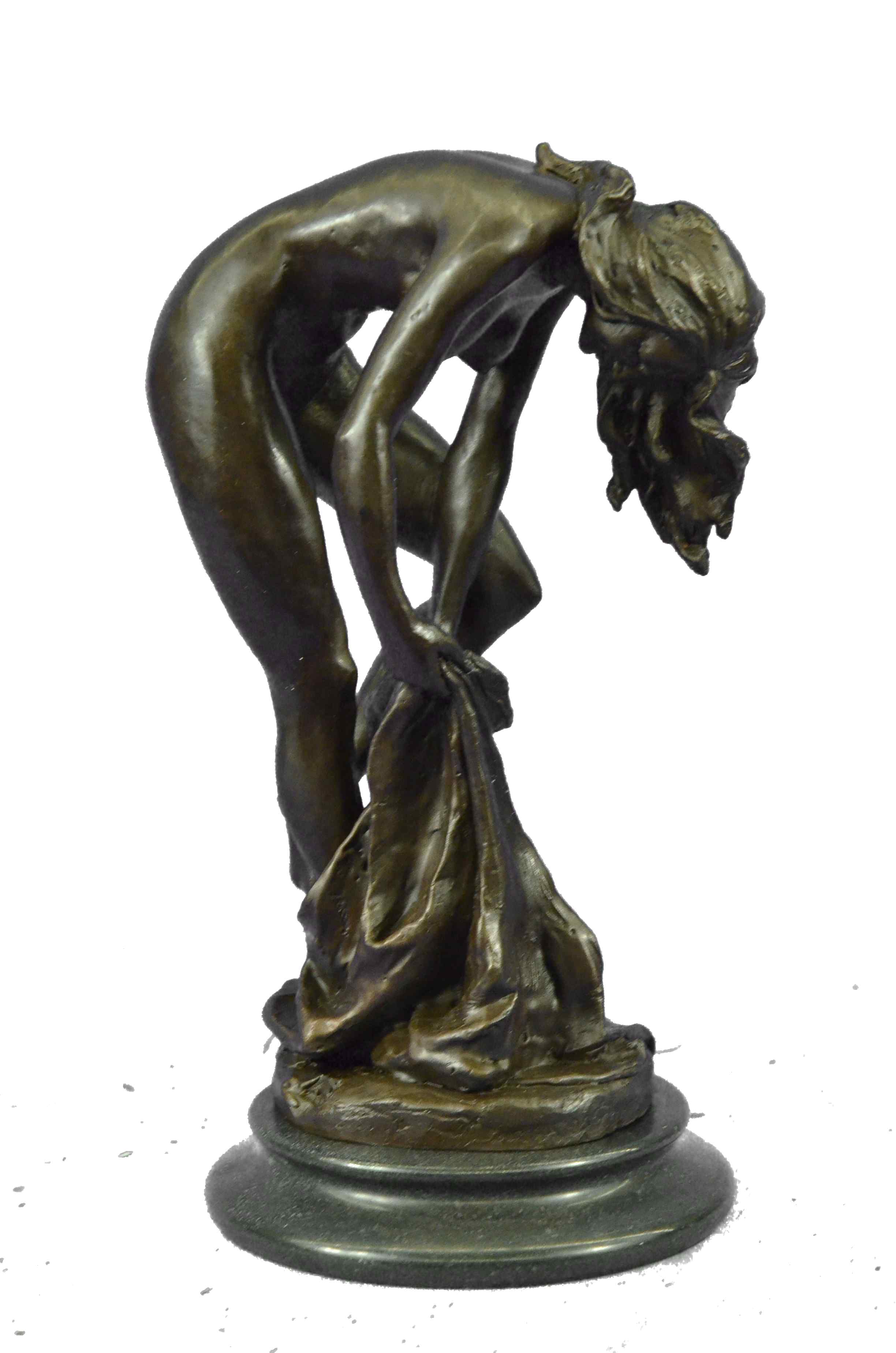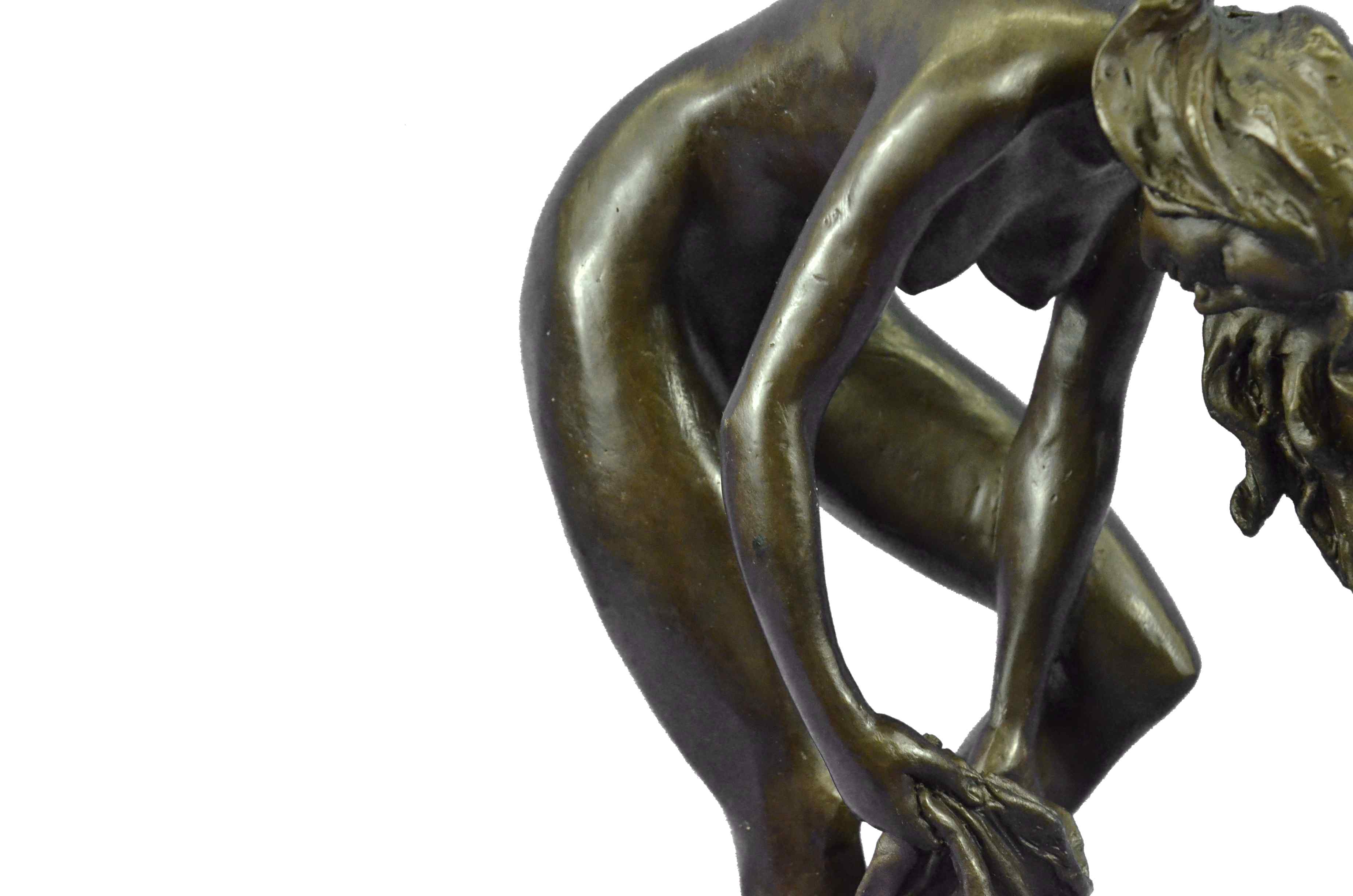 Original French Artist Jean Patoue Nude Female Standing on Rock Bronze Sculpture