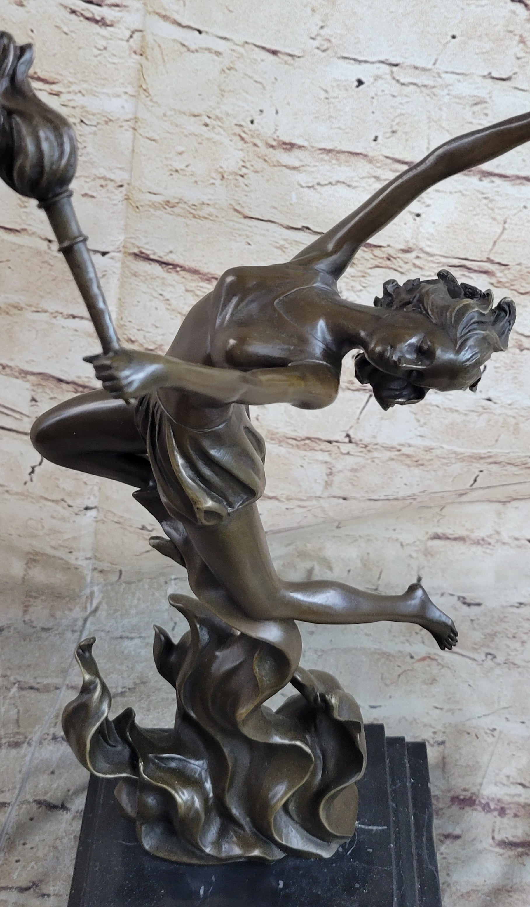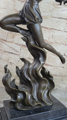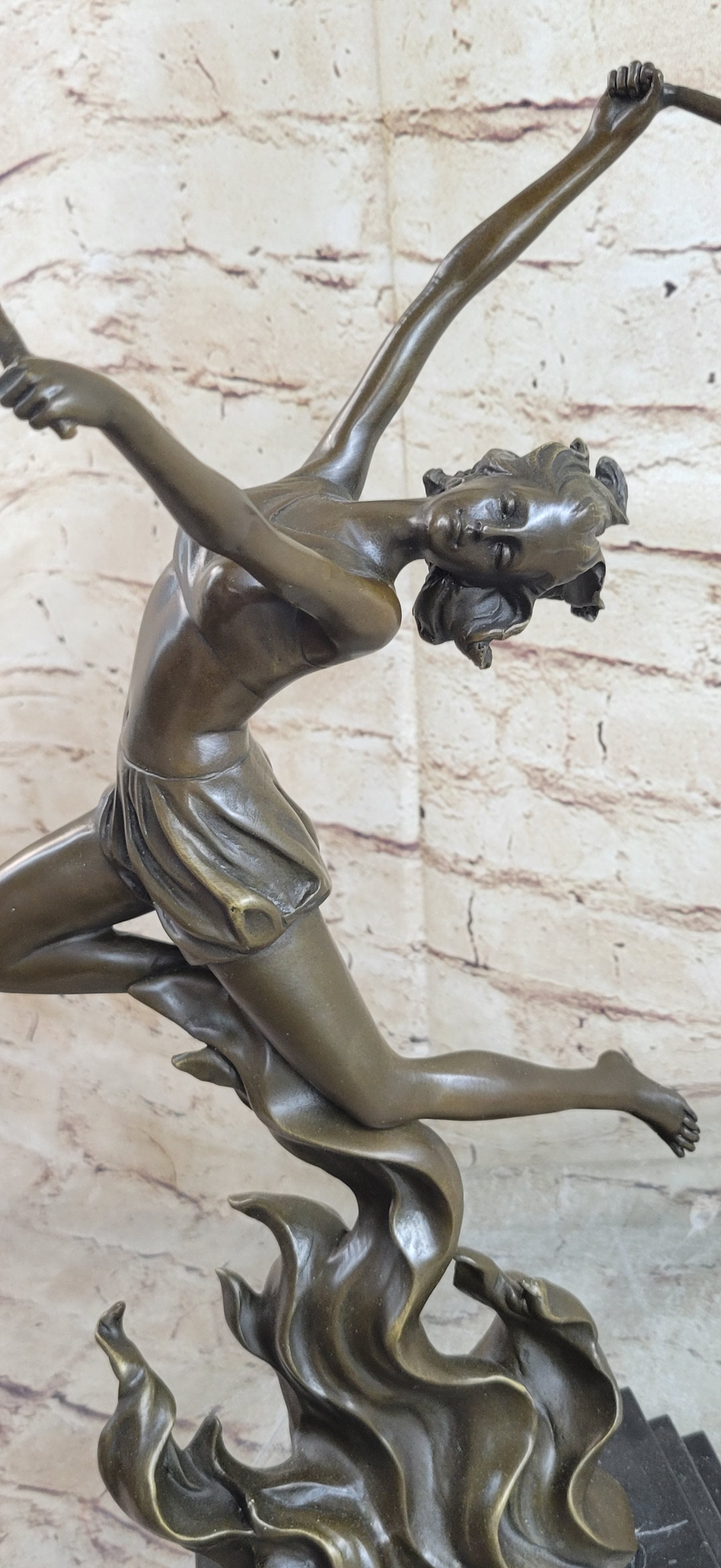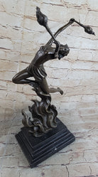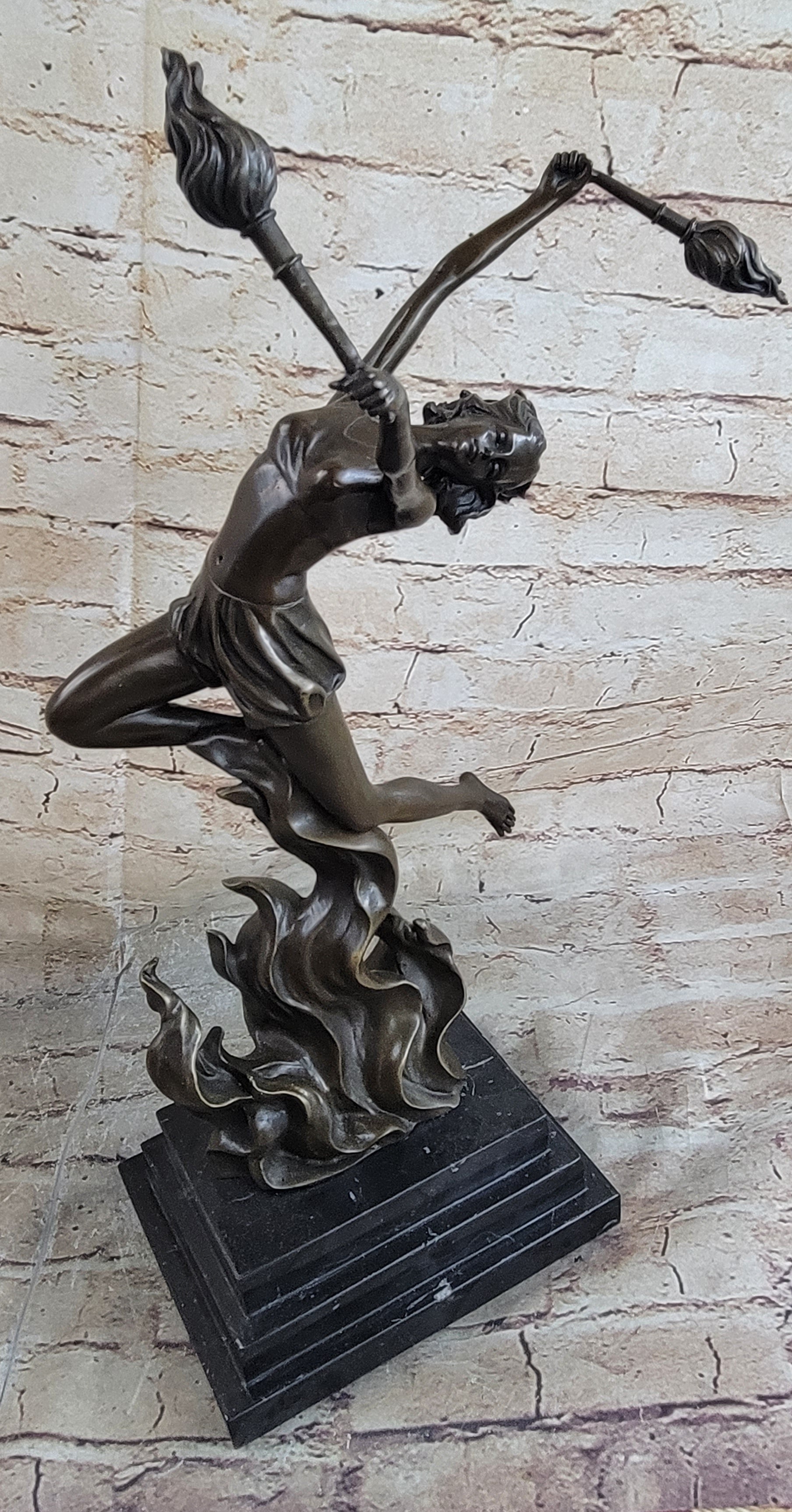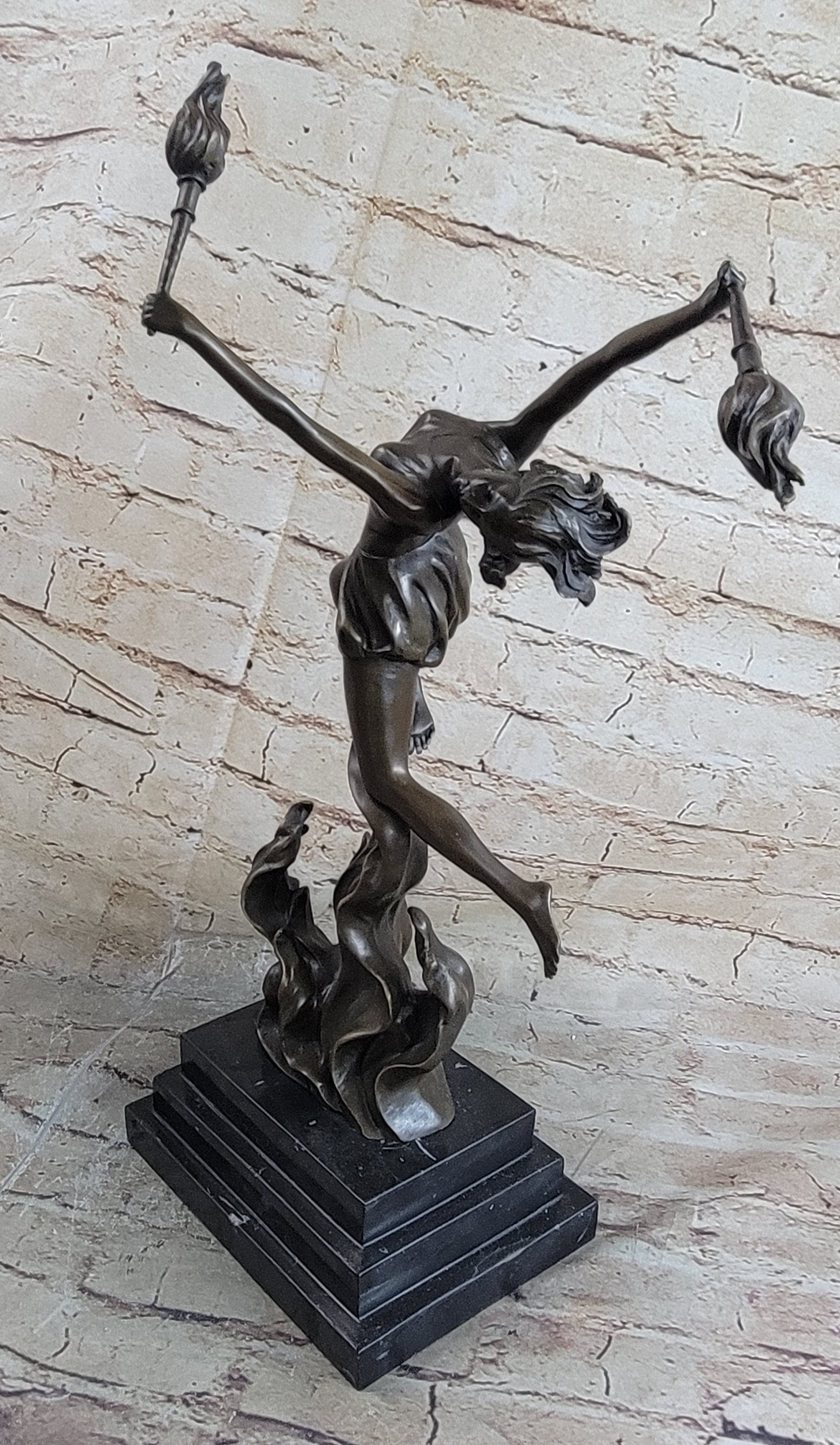 Fire Dancer Girl Dancing with Torches Bronze Metal Sculpture Statue Figure Marble Base