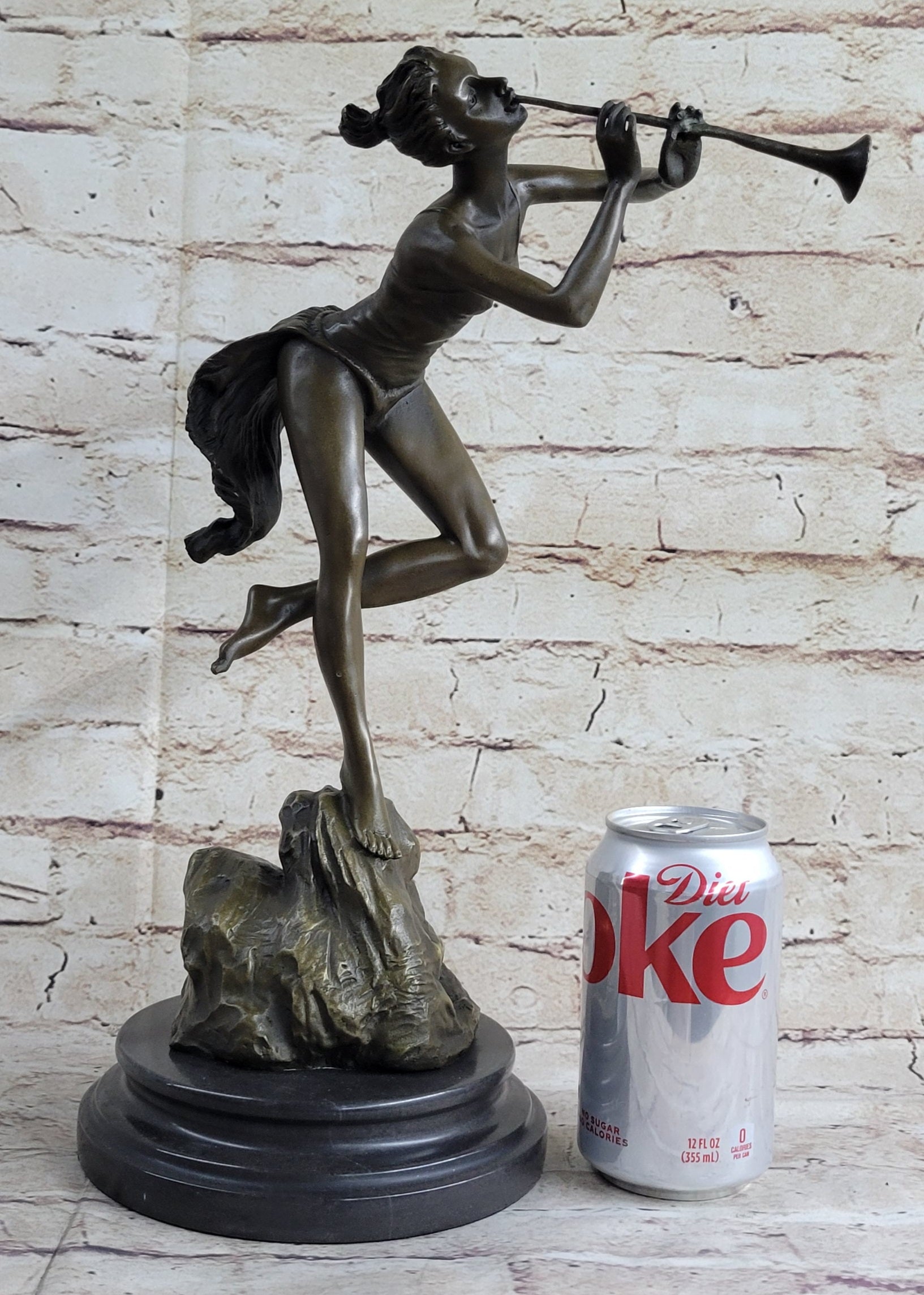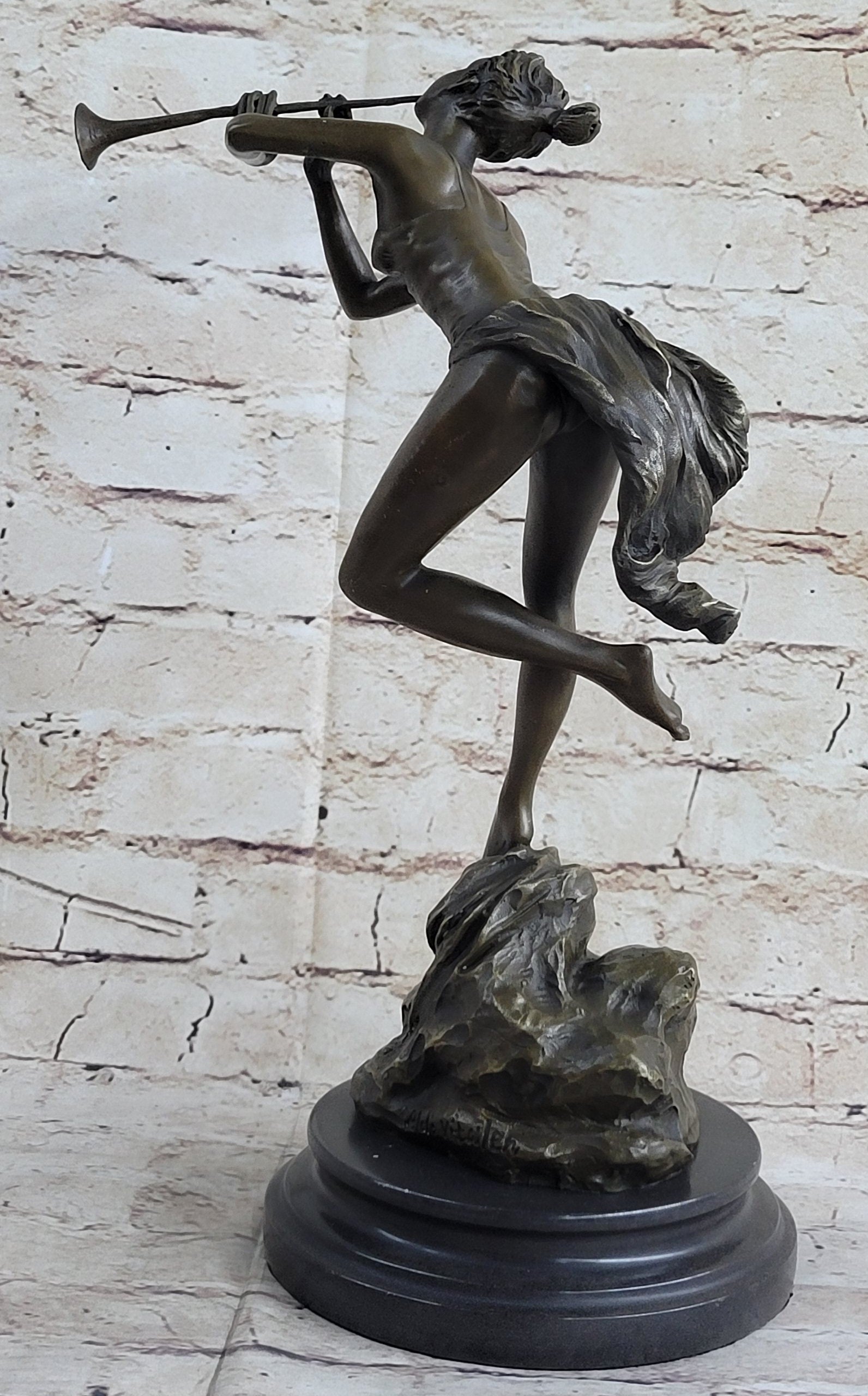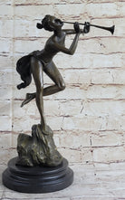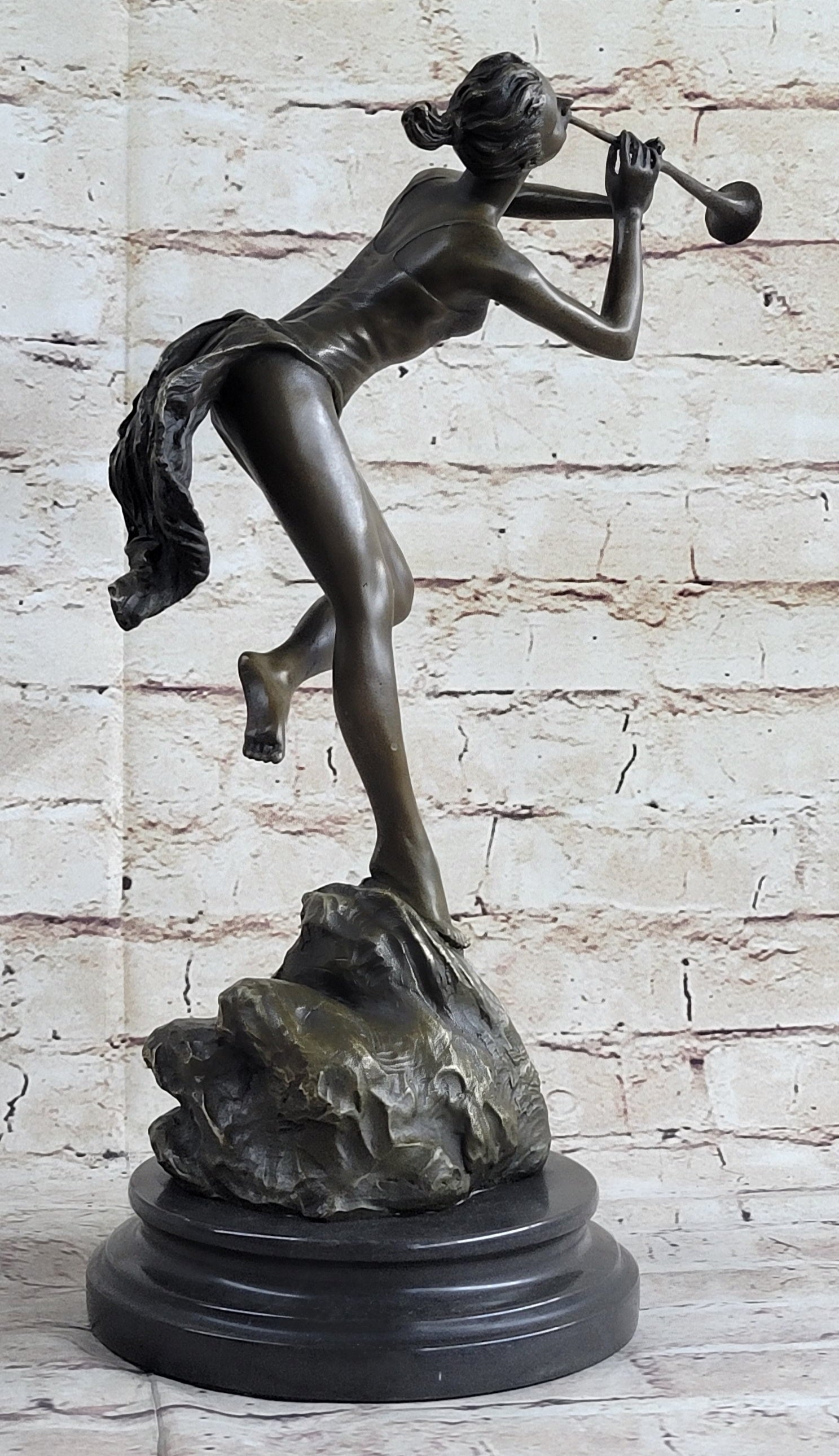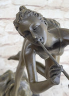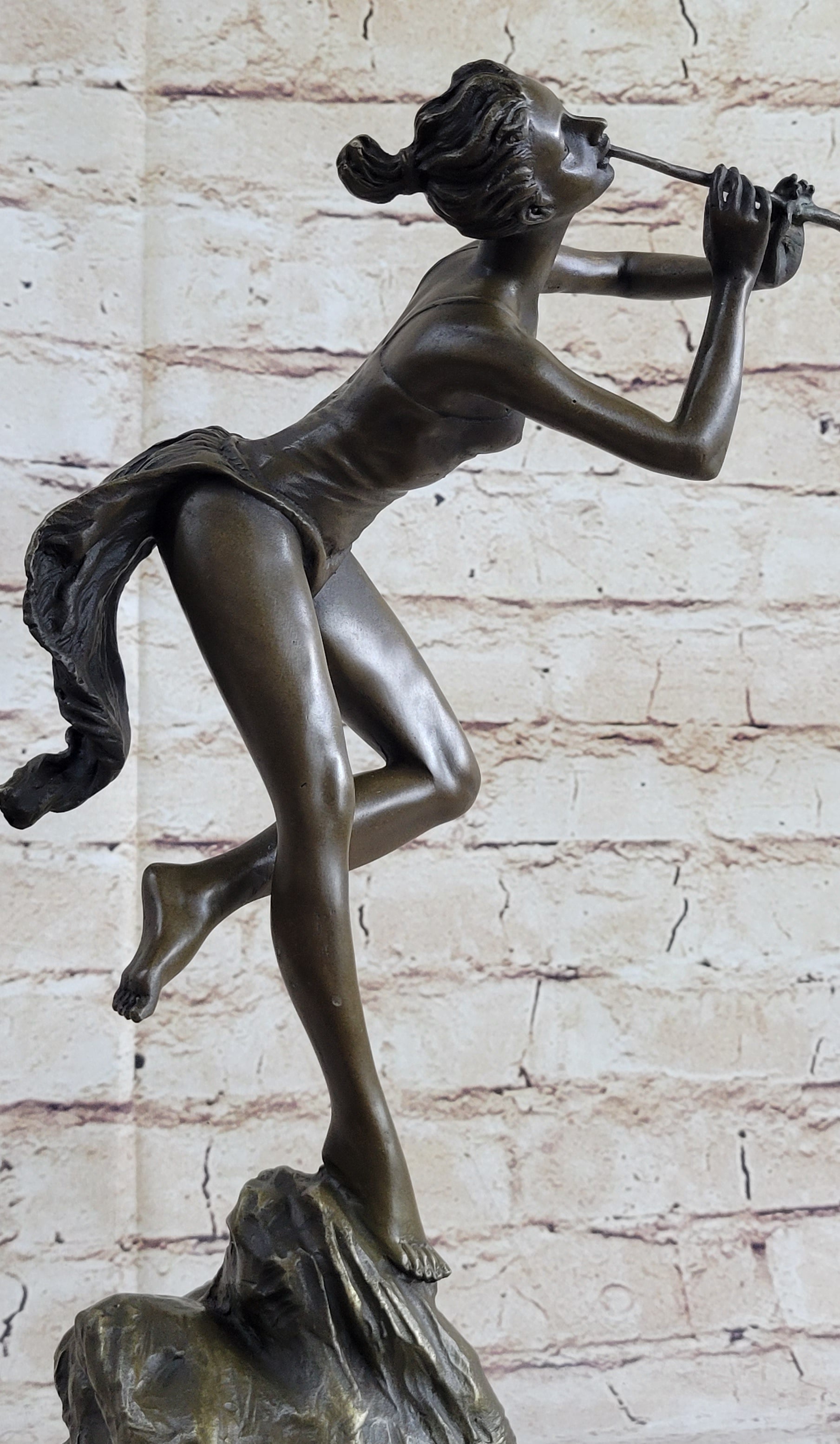Original Vitaleh Sexy Nude Wood Nymph Playing Flute Bronze Sculpture Statue Gift