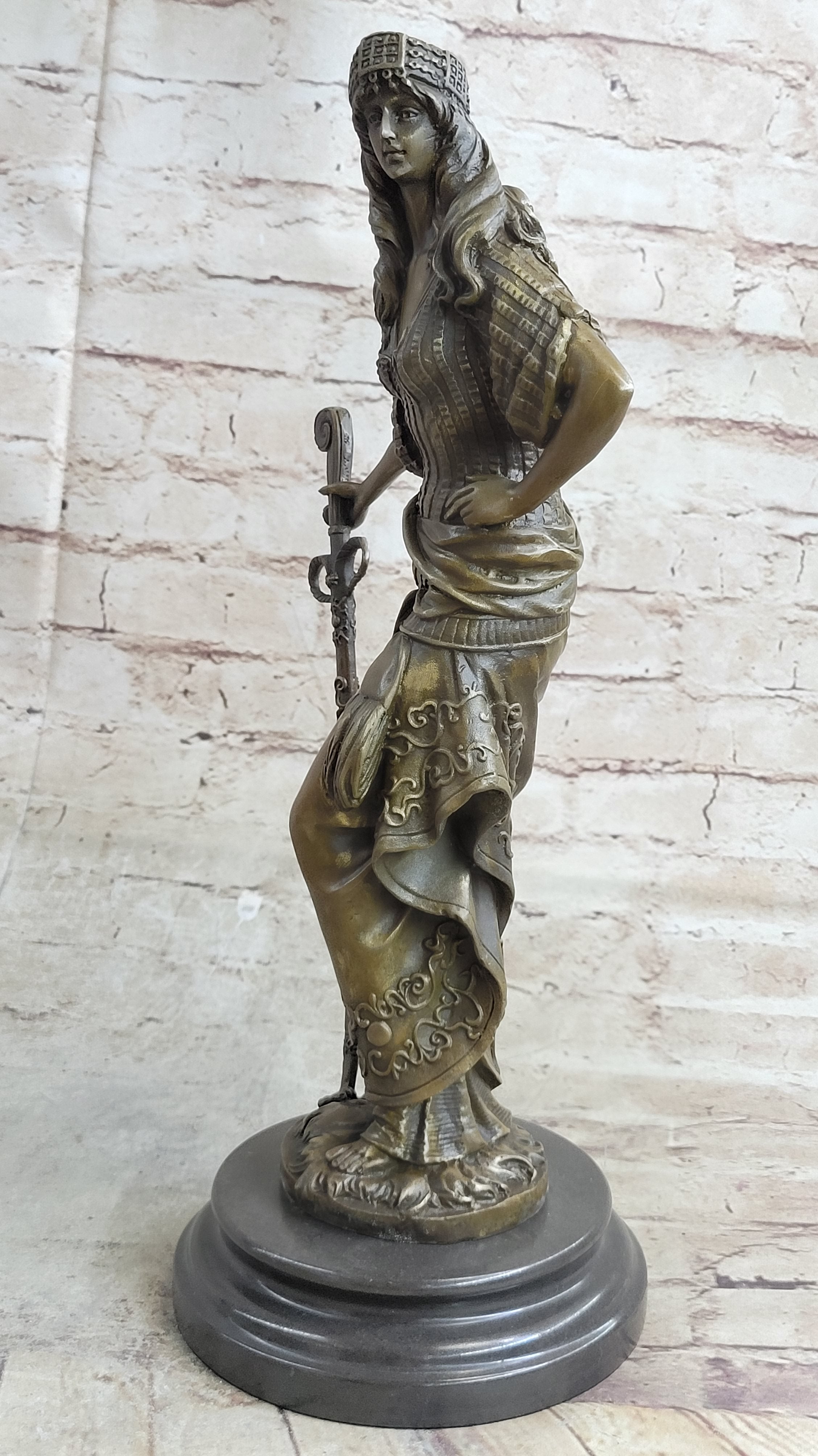 Ancient Warrior Princess w/ Sword Bronze Statue Sculpture Figure 15" x 8"