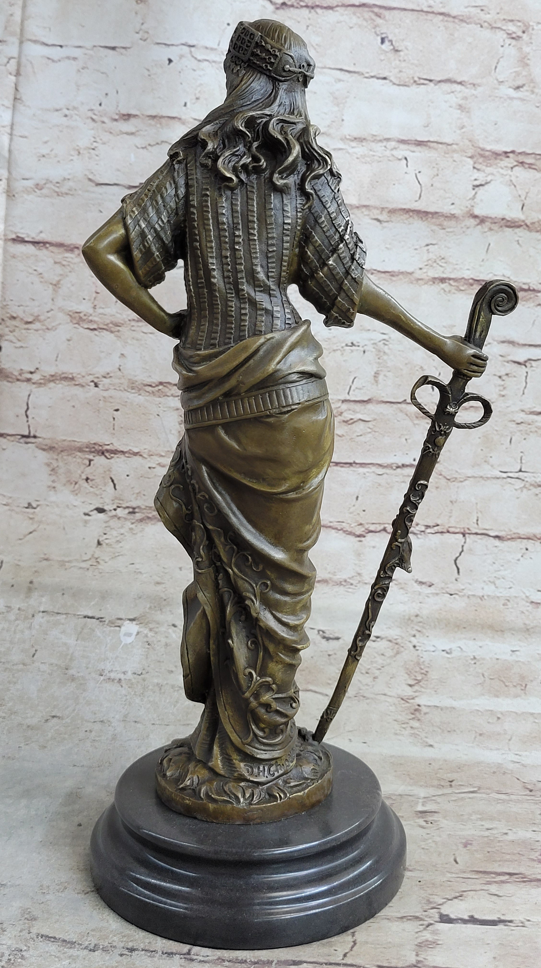 This captivating bronze sculpture promises to enchant art lovers and collectors alike, making a breathtaking addition to any space. Let its timeless beauty and the story it tells of the Persian Princess evoke a sense of wonder and admiration in your surroundings.Bronze Dimensions with Marble Base: Height 15" X Width 8"
