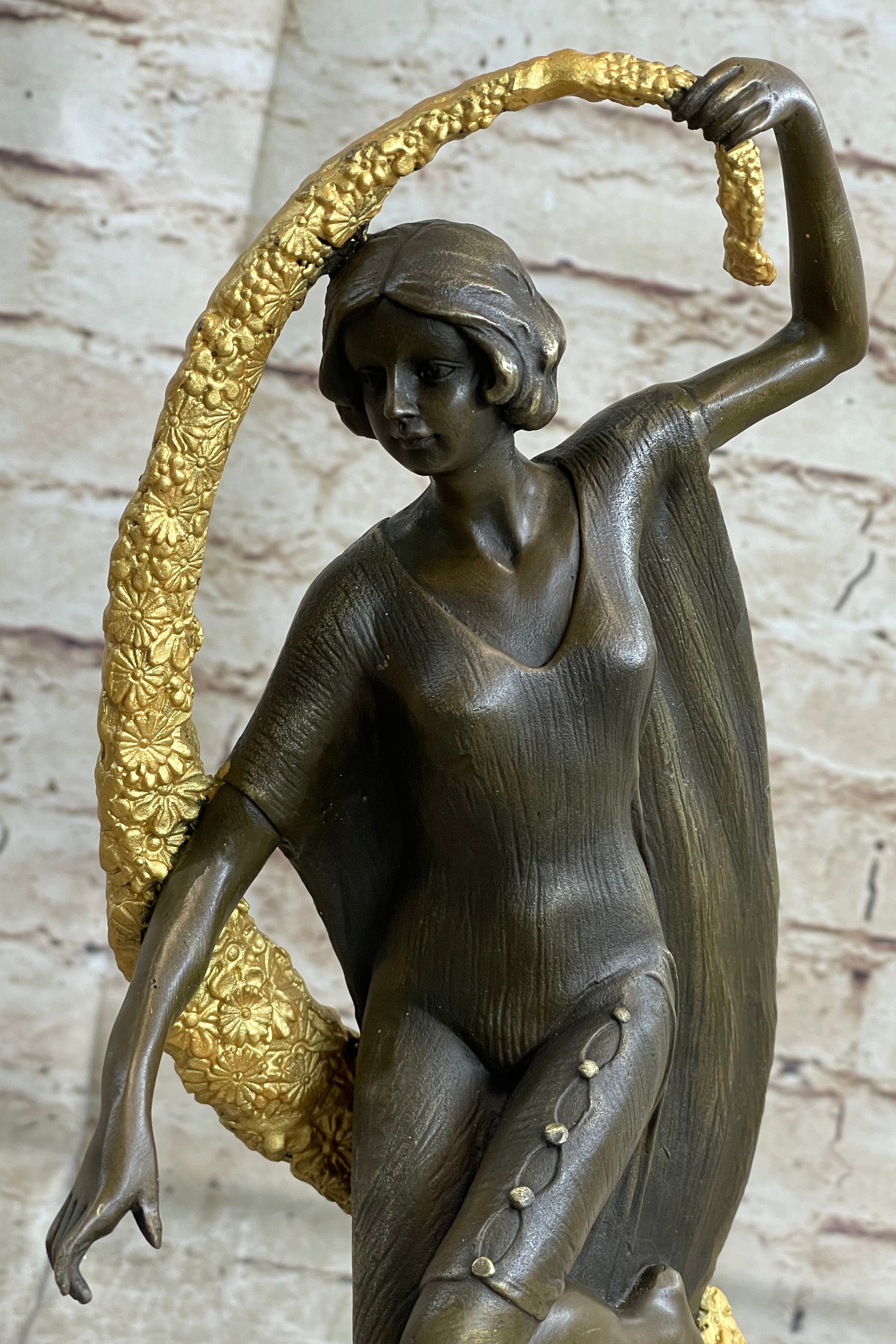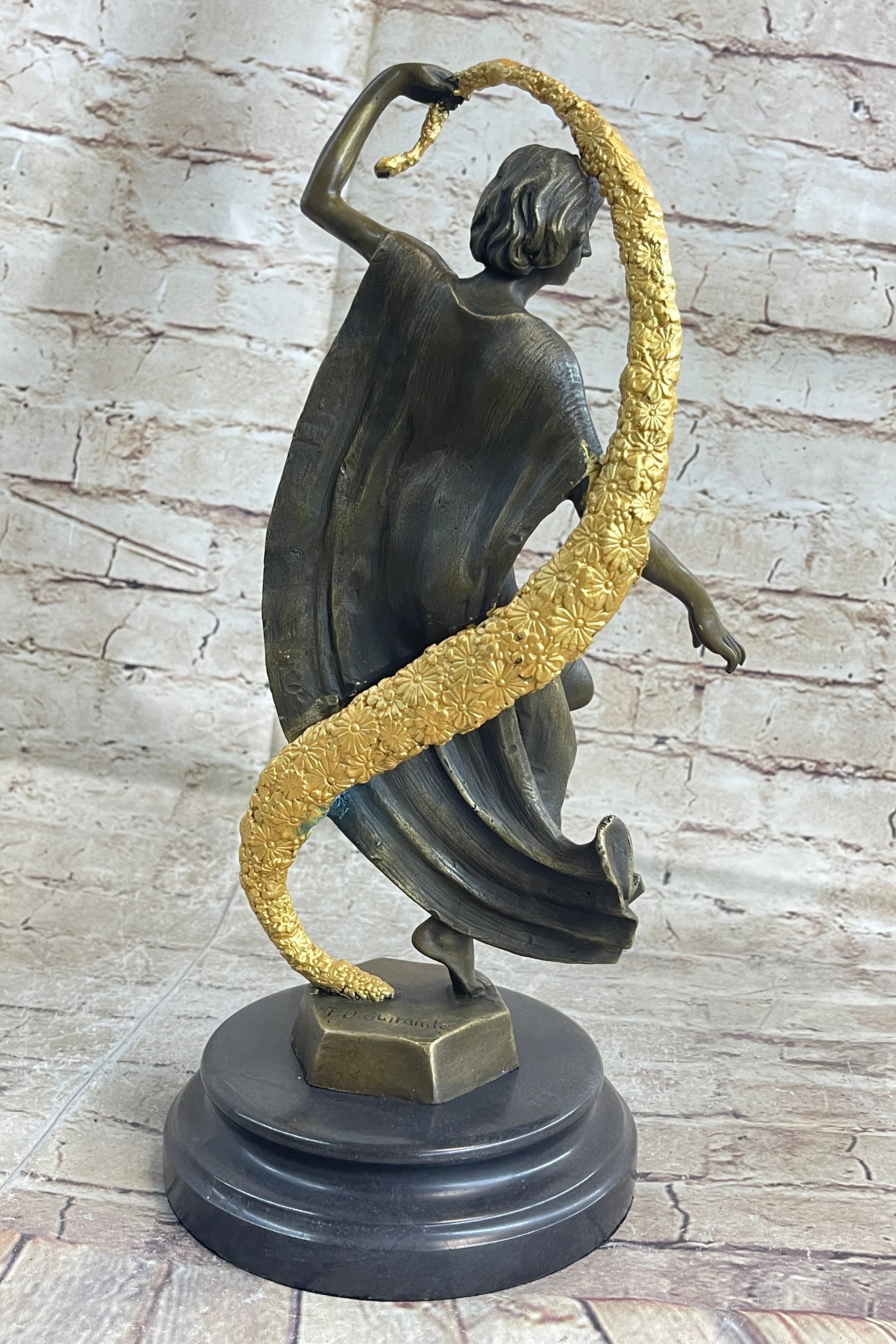 SCARF DANCER PURE BRONZE ART DECO DANCER SIGNED GUIRANDE HOT CAST FIGURINE GILT
