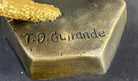 This demure flapper figurine embodies the vivacious energy of the Jazz Age. Even after kicking off her heels for the night, she can't resist doing the Charleston. Her bobbed hair, a symbol of the era, curls playfully from beneath her stylish 1920s hat, which was a defining fashion statement of the Jazz-obsessed era. As she moves, her dress shimmies, capturing the essence of the era's exuberant dancing. Cast with meticulous attention to detail and artisanal craftsmanship, this bronze sculpture is created using the esteemed "Lost Wax Method." It is securely mounted on a marble base, enhancing both its visual impact and stability. The sculpture is personally signed by the artist T.d Guirande.
