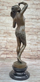 Resting elegantly on a round marble base, the sculpture not only celebrates the beauty of the dancer but also adds a touch of sophistication to any space. The rich brown patina enhances the bronze, creating depth and highlighting the subtle details of the artwork. Each curve and contour of the dancer's body is expertly rendered, making this handcrafted masterpiece a celebration of the human form and artistic expression.