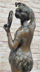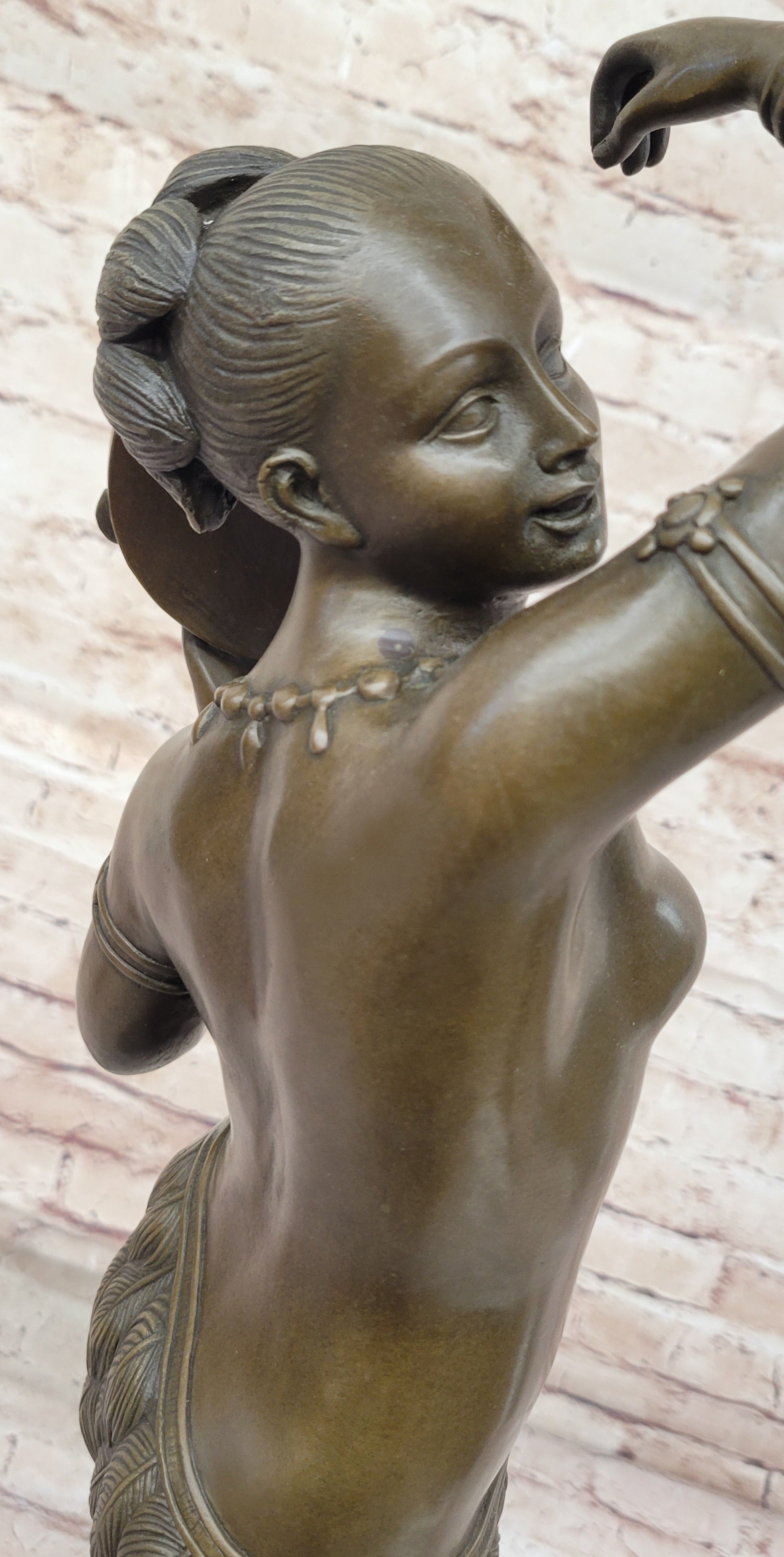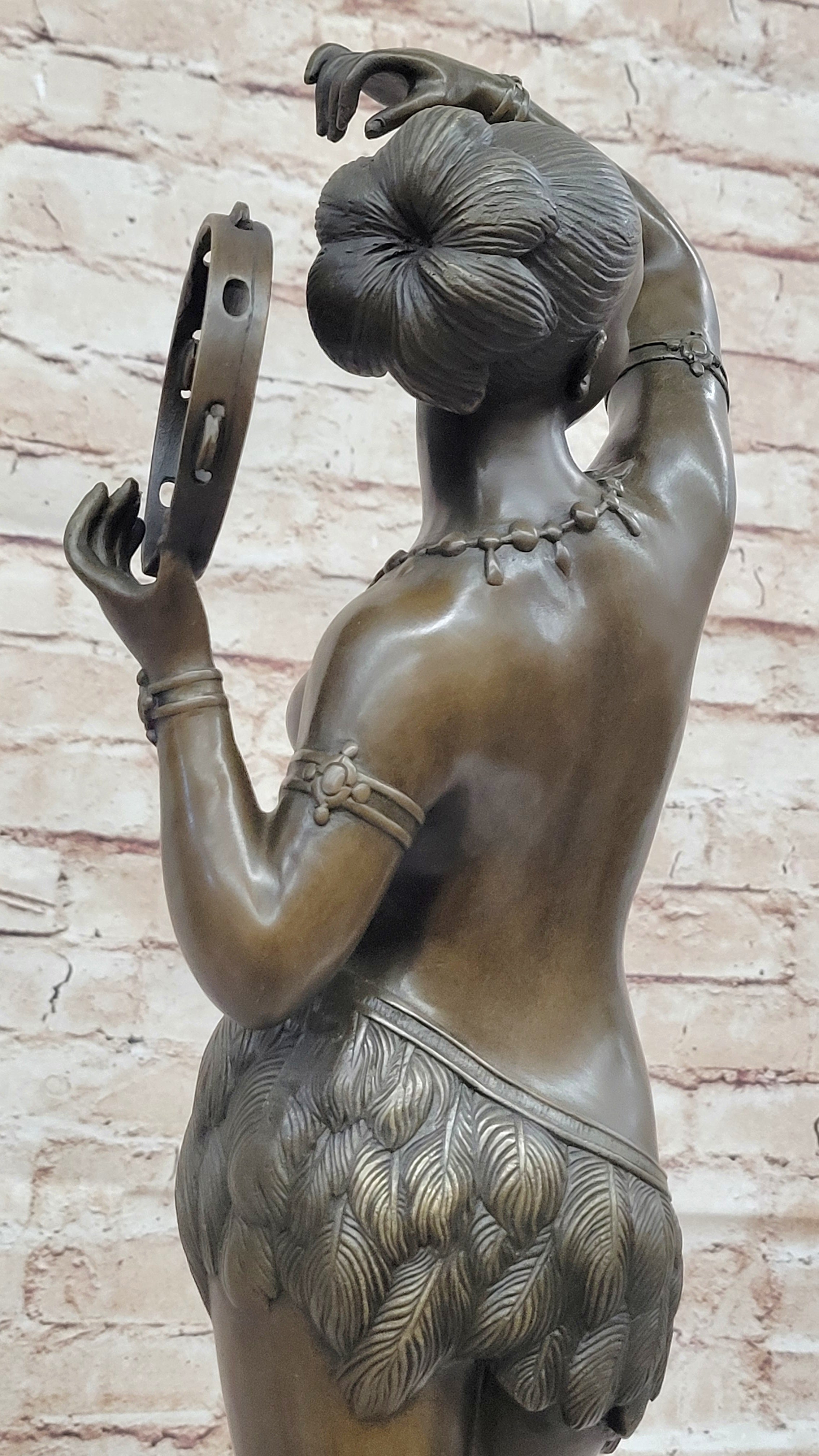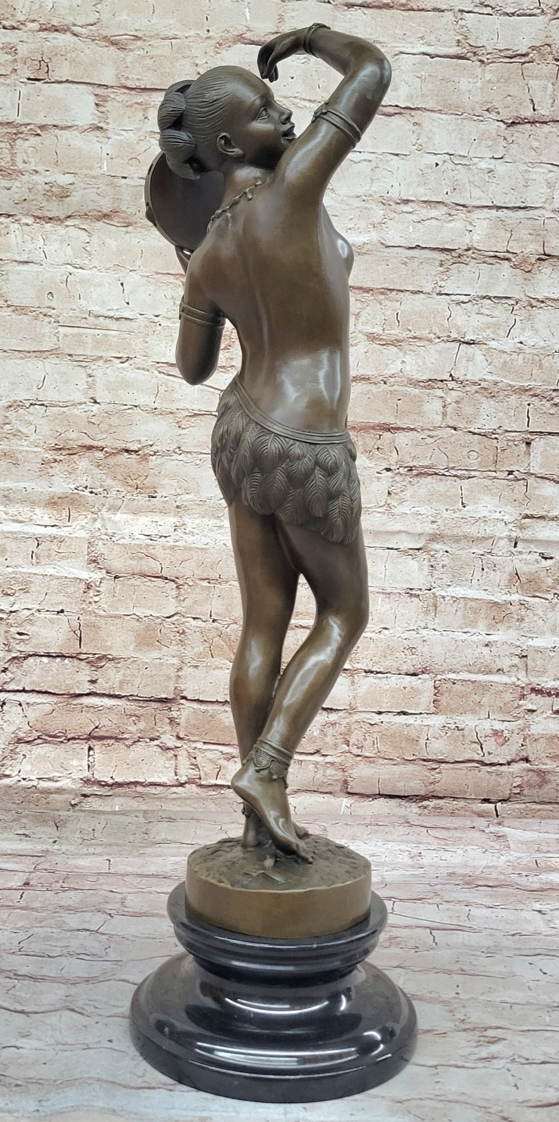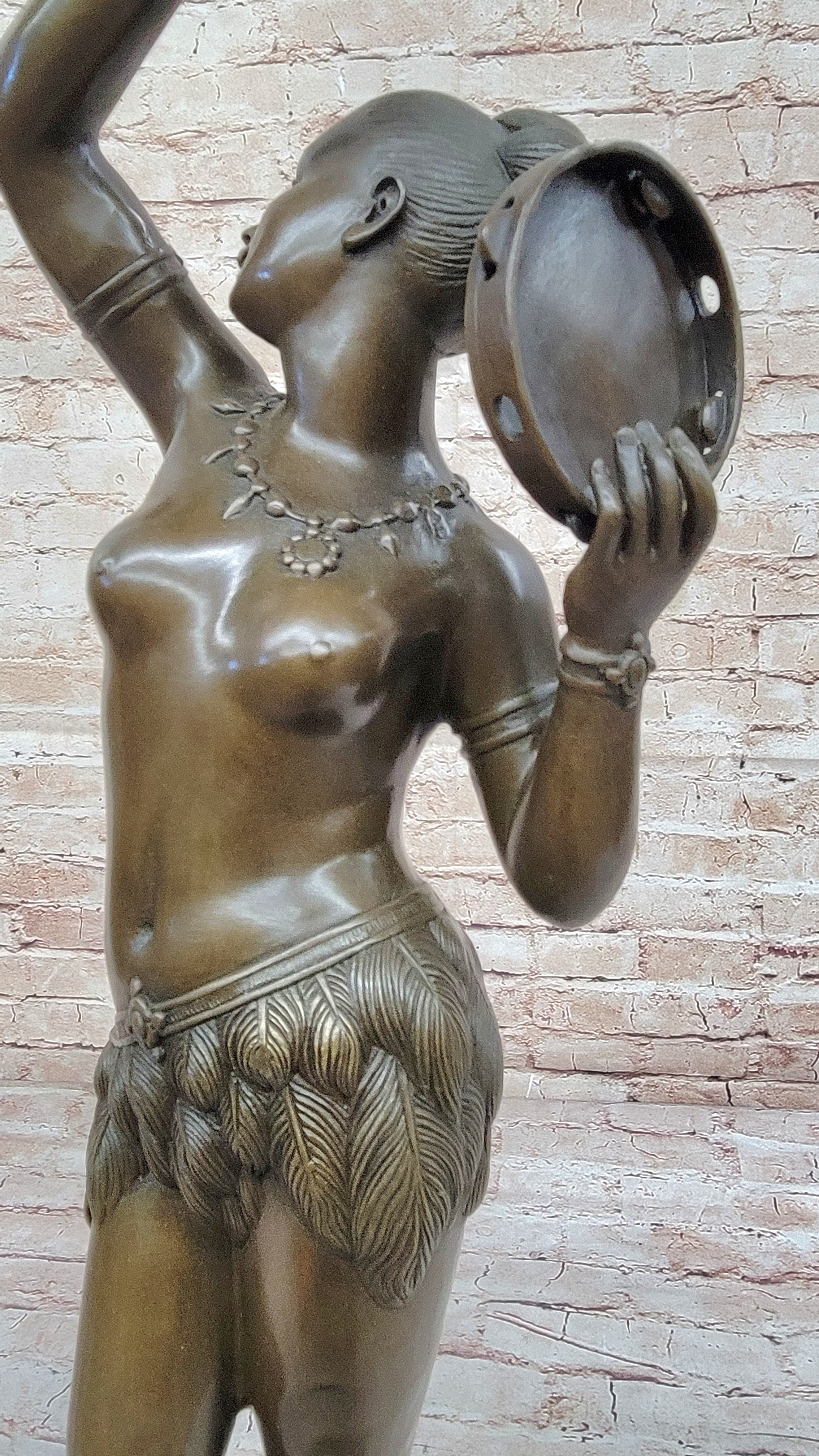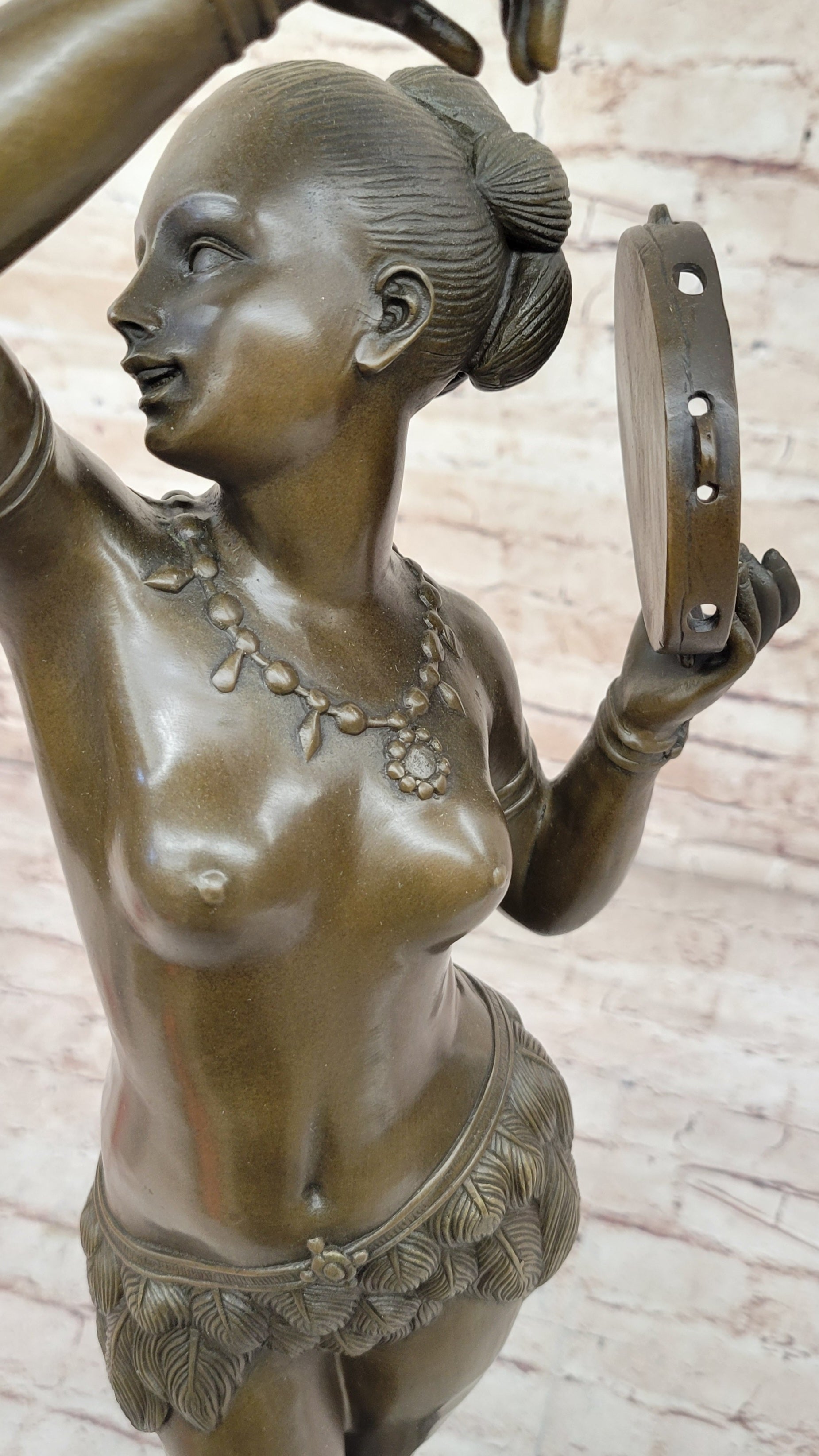 Semi Nude Exotic Female Tambourine Dancer in Hula Skirt - Bronze Sculpture by M.C. Bouay