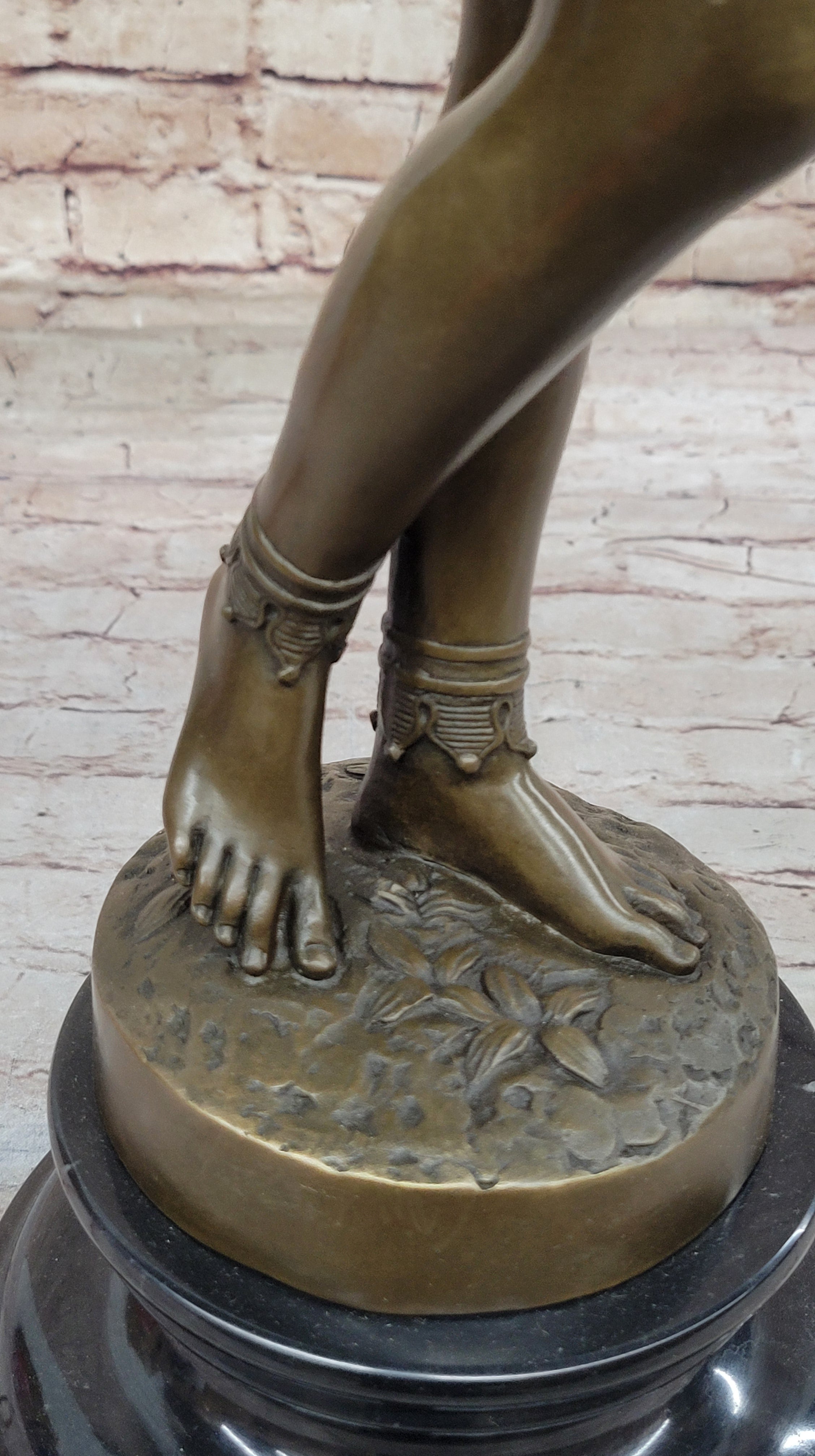 Delight in the mesmerizing allure of M.C. Bouay's Dancer of Tambourine Bronze Sculpture. This exquisite piece captures the essence of movement and grace, portraying a nude dancer with a tambourine. Meticulously handcrafted using the lost wax method, the sculpture stands as a testament to Bouay's artistic skill and dedication to capturing the human form in its purest and most expressive state.