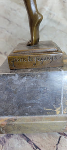 This Art Deco bronze stick dancer is more than just a sculpture; it is a piece of history, reflecting the artistic spirit of the early 20th century. Whether displayed in a home, gallery, or as part of a larger collection, this statue will undoubtedly draw admiration and inspire conversation. Its museum-quality craftsmanship, combined with the timeless beauty of its design, ensures that it will remain a cherished piece for generations to come. The statue is signed by Pierre le Faguays, guaranteeing its quality and making it a valuable addition to any art lover's collection.Bronze Dimensions with Marble Base: Height 22" X Width 18 1/2"