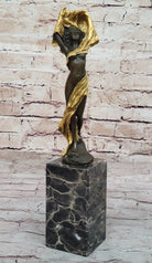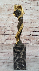This piece serves as a testament to the timeless artistry of the lost wax method, founded thousands of years ago. Its semi-finished appearance adds character, making it a distinctive addition to any space. Whether displayed in a business or home, this sculpture radiates grace and beauty, capturing the essence of the artist's vision and craftsmanship.Bronze Dimensions with Marble Base: Height 14" X Width 3"