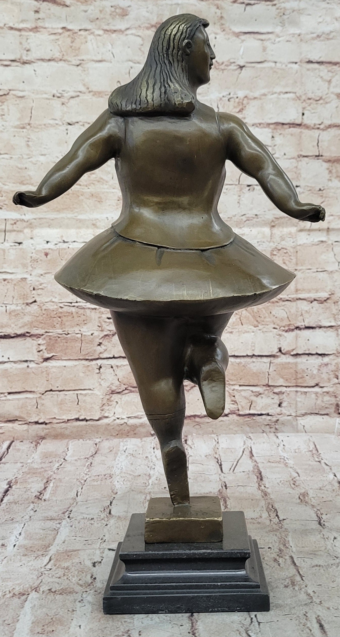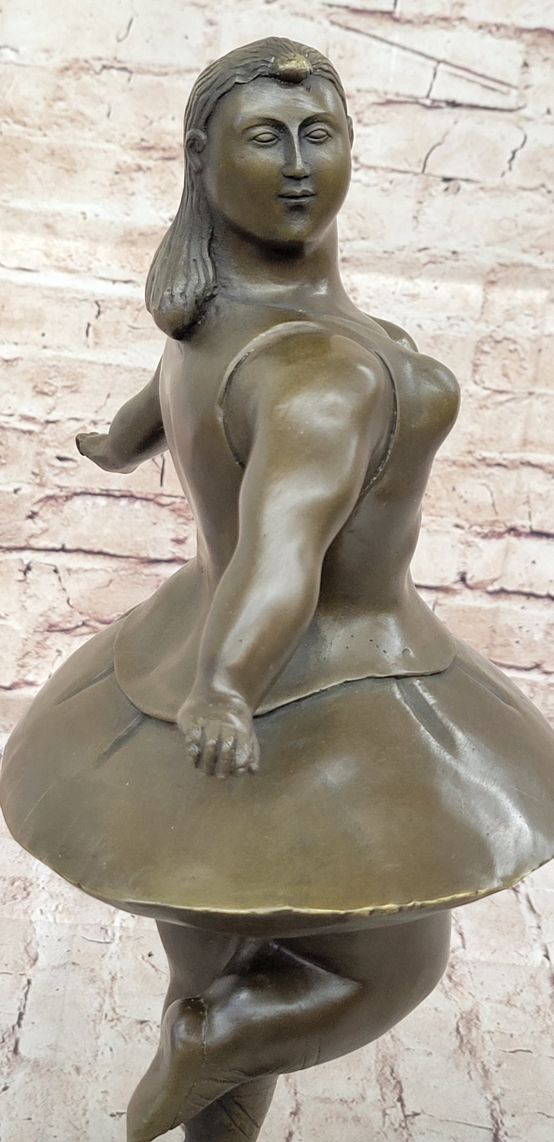 Signed Abstract Prima Ballerina after Botero Bronze Marble Sculpture Figurine