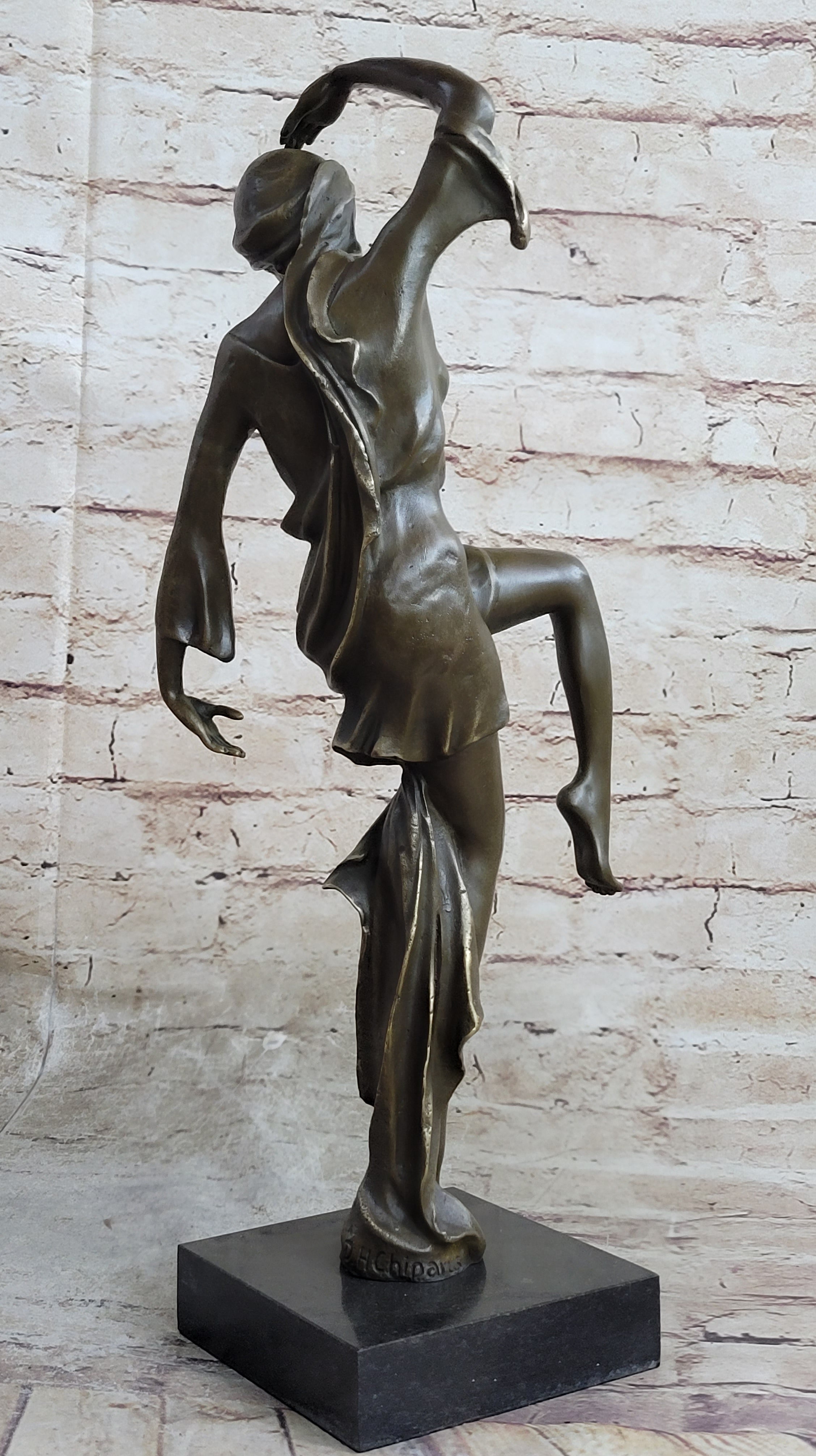 Signed D.H. Chiparus Art Nouveau Gypsy Dancer Bronze Sculpture Home Decoration