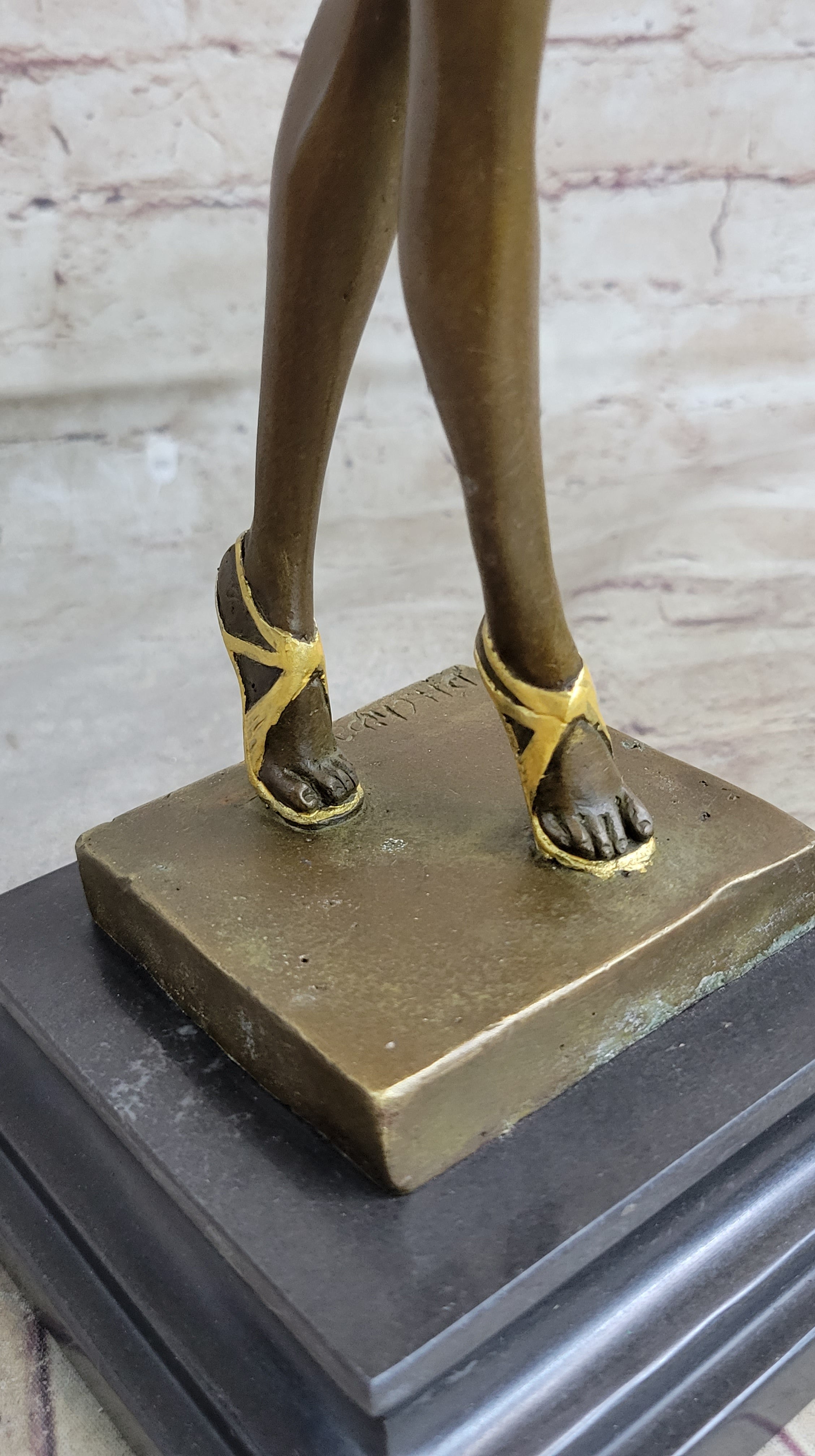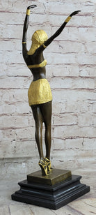 Presenting an exquisite bronze statue that captures the grace, agility, and flexibility of a vibrant dancer. Inspired by one of D.H. Chiparus' renowned sculptures, this captivating piece depicts a dancer who effortlessly glides across the stage, delicately balanced on the balls of her feet.