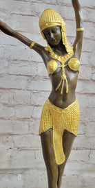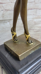 Signed Gold Patina Tall Chiparus Lady Bronze Sculpture on Marble Base Figurine