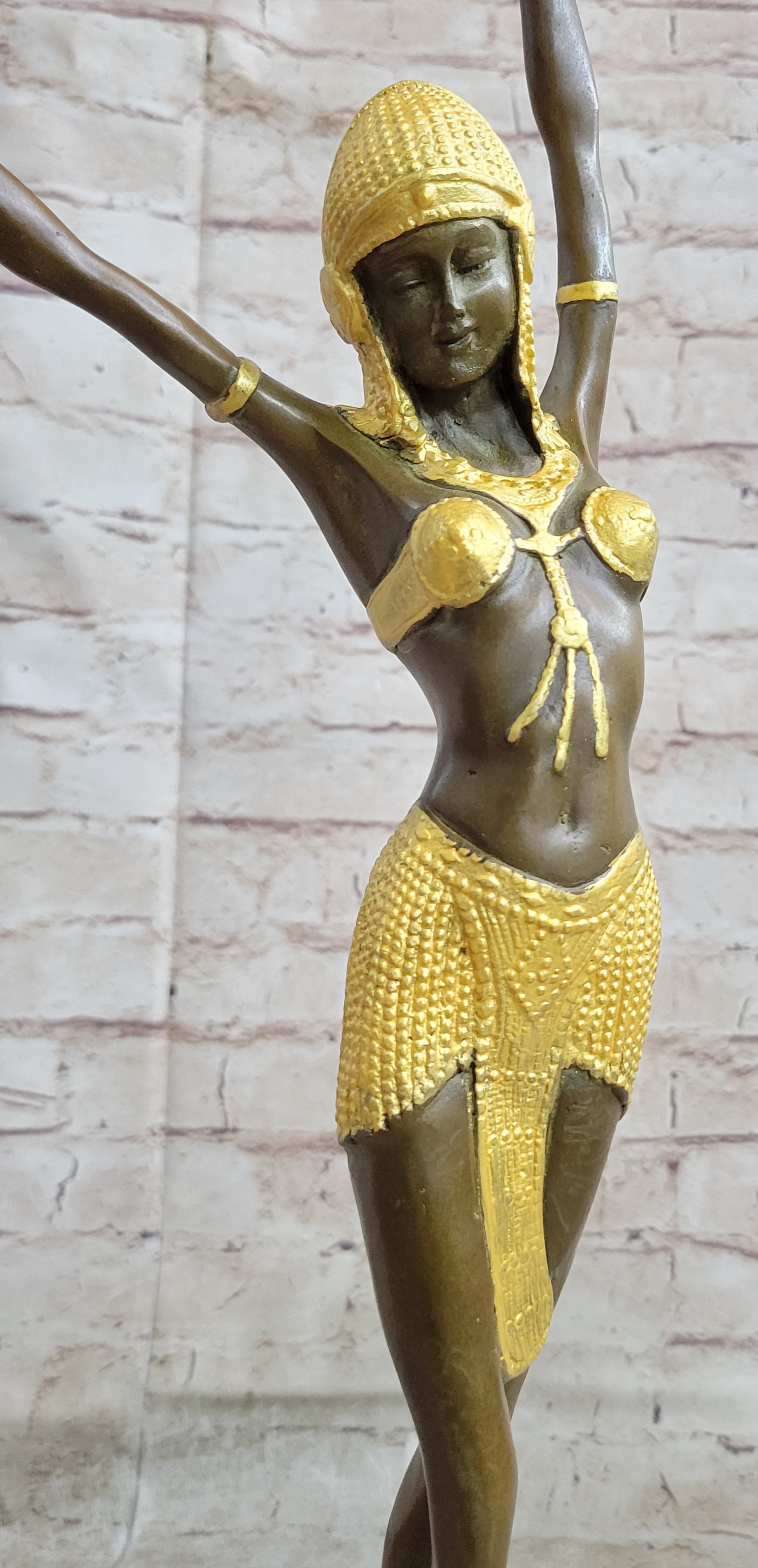 Embrace the beauty and energy of this bronze sculpture, a testament to the artistry and talent of D.H. Chiparus. Whether for art enthusiasts, collectors, or dance enthusiasts, this piece is sure to captivate and inspire, making a remarkable addition to any space or collection.Bronze Dimensions with Marble Base: Height 19.5" X Width 8"