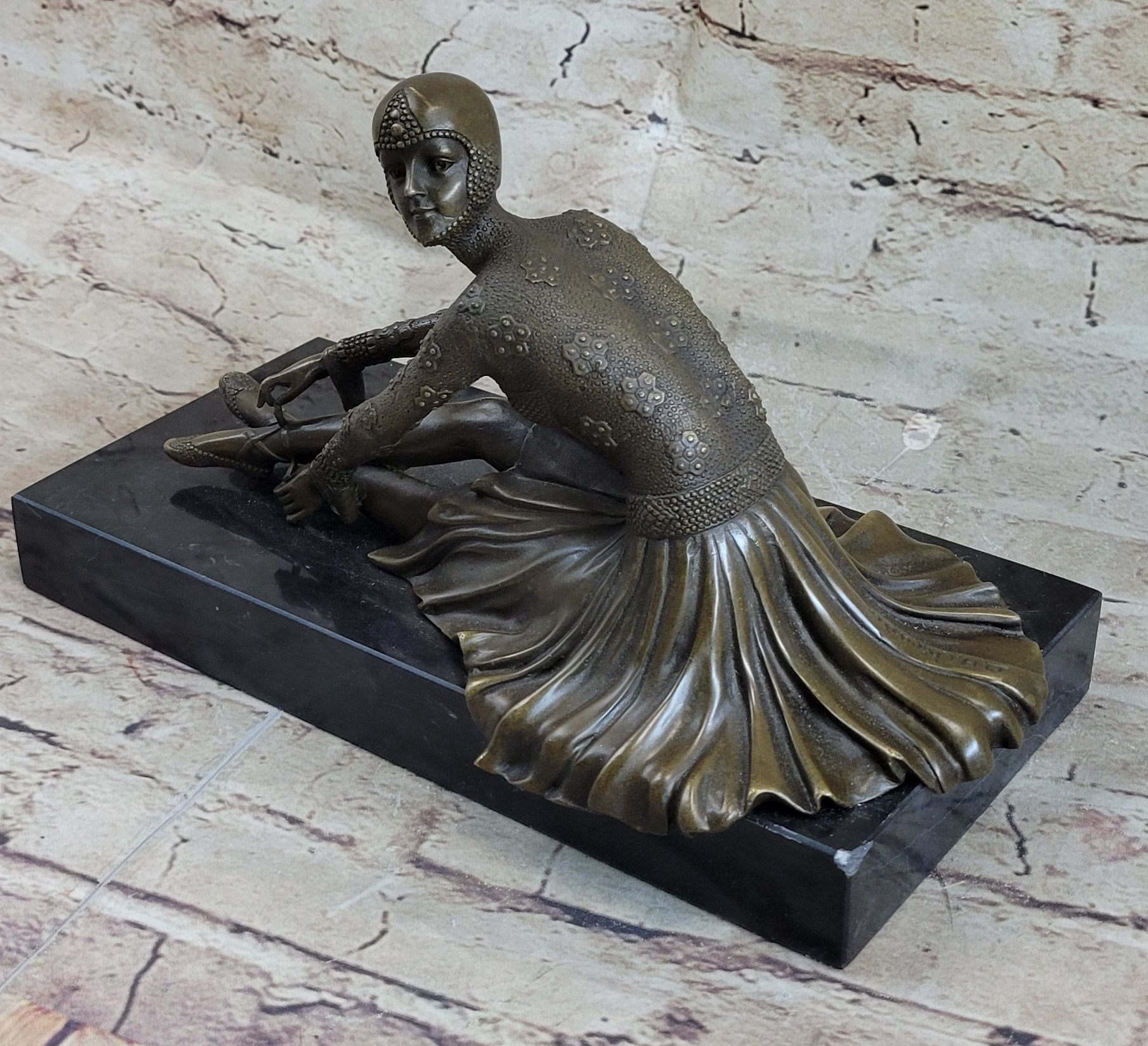 Signed Milo Art Lost Wax Sitting Dancer Bronze Sculpture Figure Statue Figurine