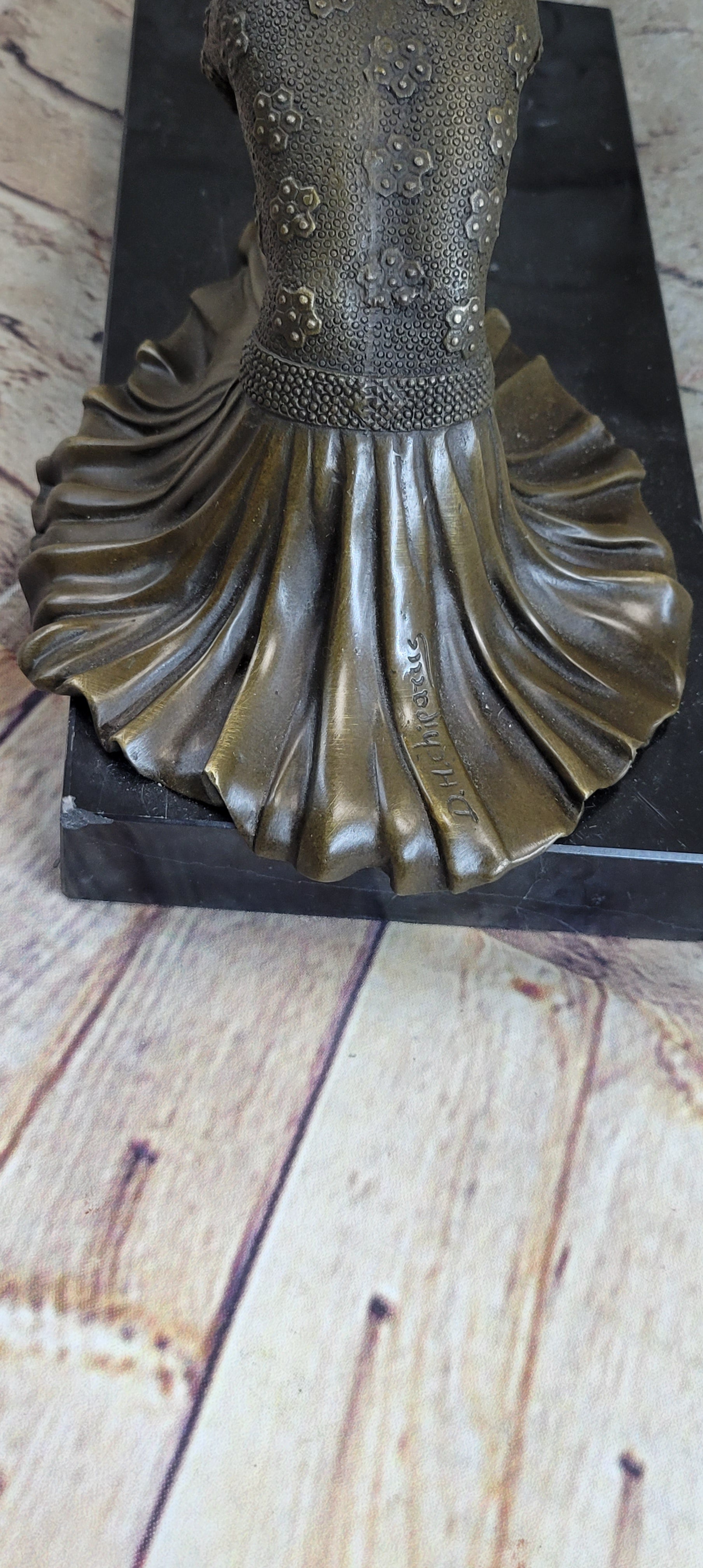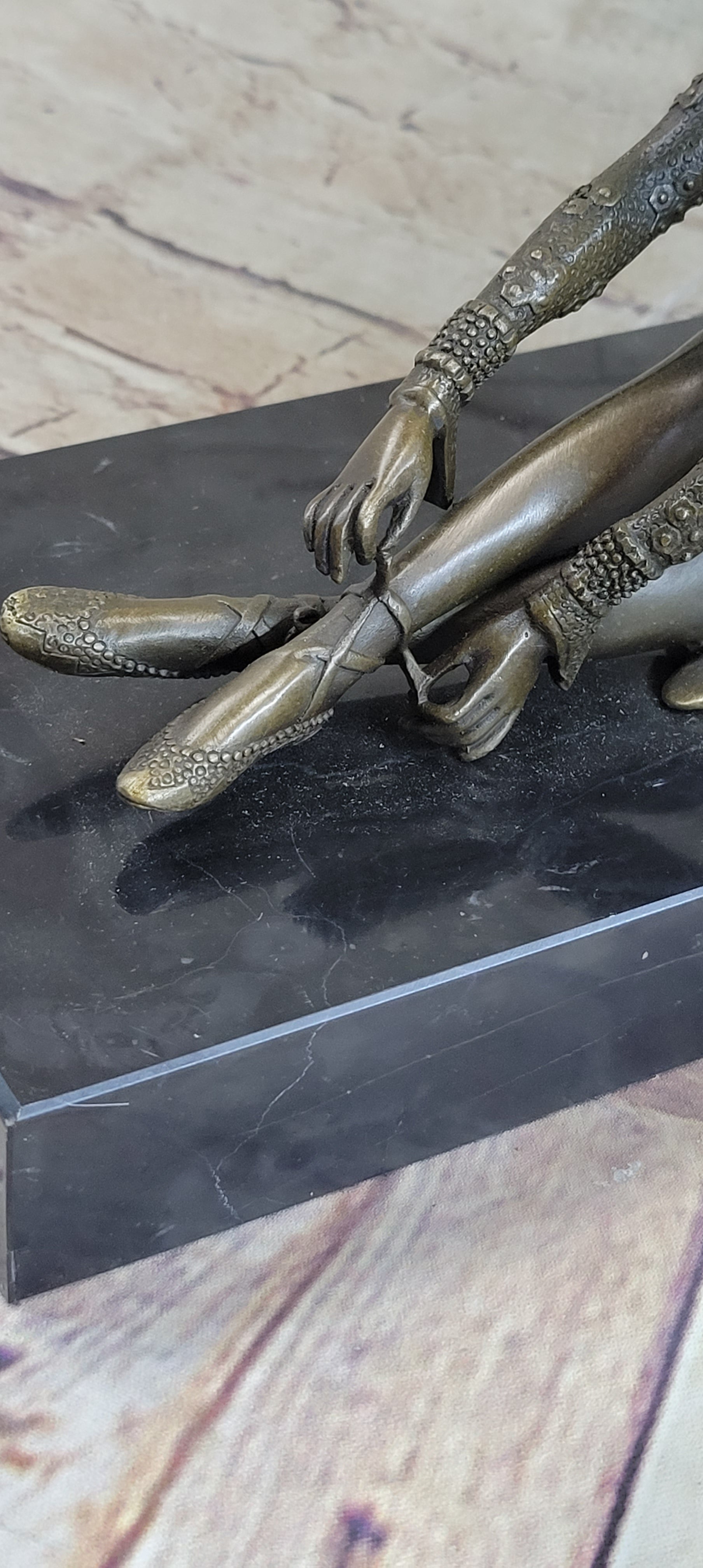 Handmade with utmost craftsmanship, this sculpture is crafted from 100% bronze, ensuring its durability and timeless beauty. The renowned "Lost Wax Method" was employed during the casting process, allowing for the intricate details and lifelike qualities to be preserved. The sculpture is mounted on a marble base, which provides stability and complements the overall aesthetic. Signed by the artist Milo, this exquisite piece of art celebrates the artistry and elegance of dance, making it a cherished addition to any art collection or space dedicated to the beauty of movement.Bronze Dimensions with Marble Base: Height 7 1/2" X Width 10"
