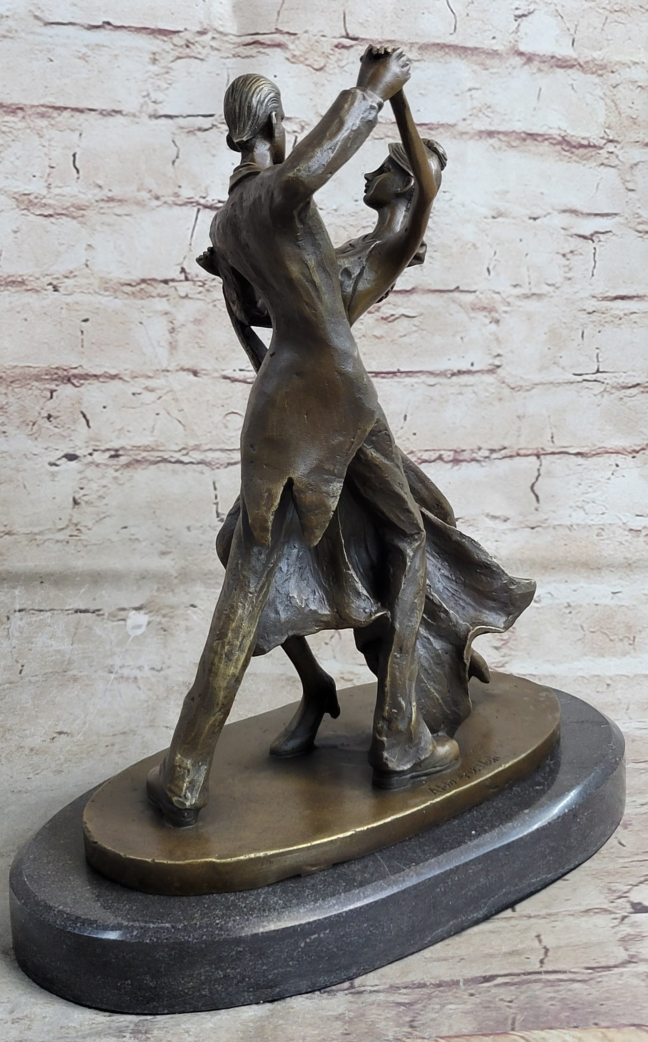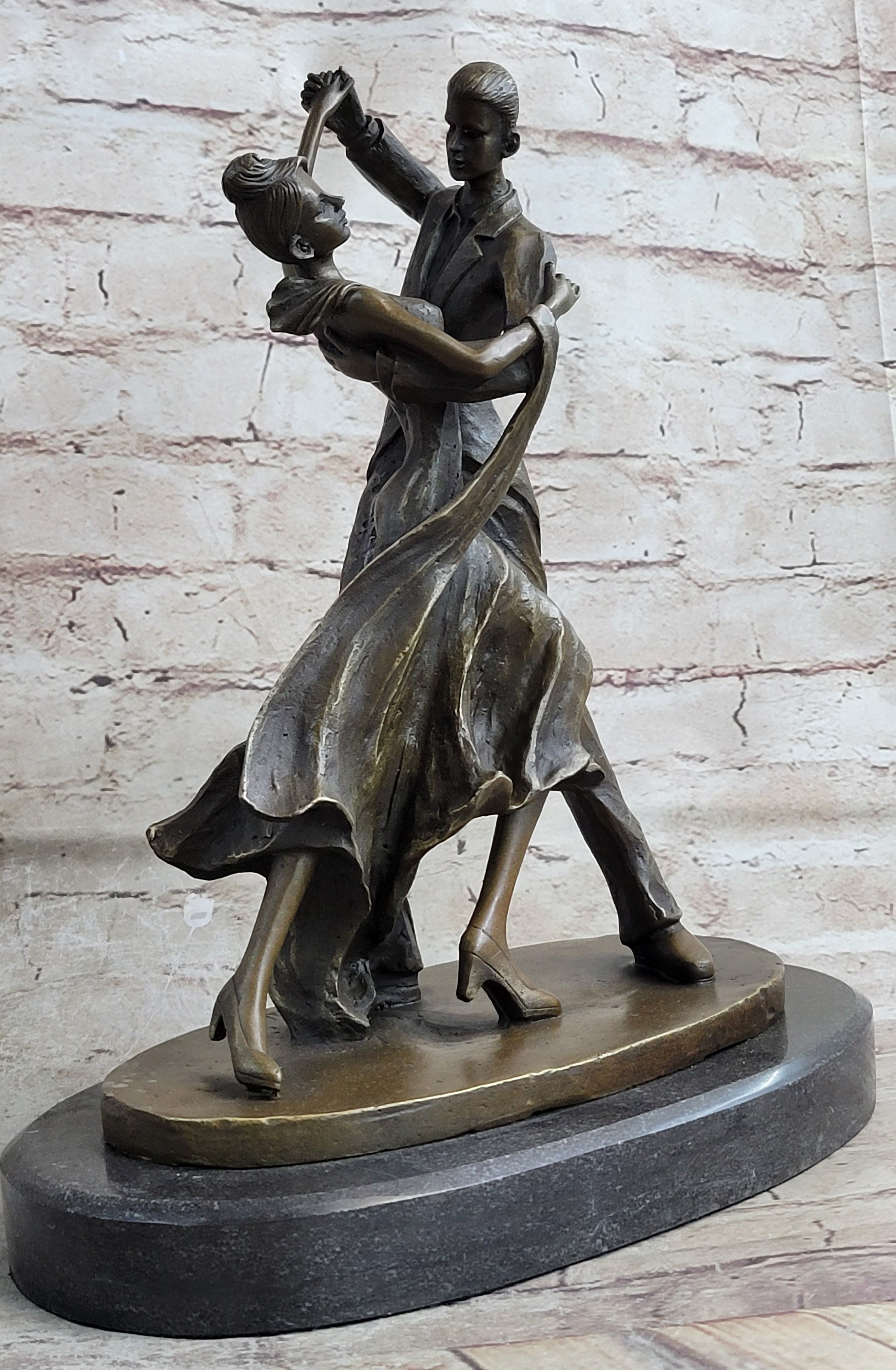 Using the age-old technique of lost wax casting, this handmade bronze sculpture captures every nuance of the dancers' movement and emotion. The brown patina finish not only lends a rich hue but also preserves the sculpture for generations to come. Resting atop a marble base from the renowned European Bronze Finery, this artwork exudes an air of sophistication and authenticity.