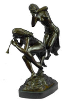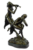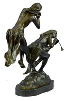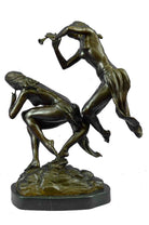 Signed Original Decarlo Two Wood Nymphs Singing Bronze Figurine Sculpture Art