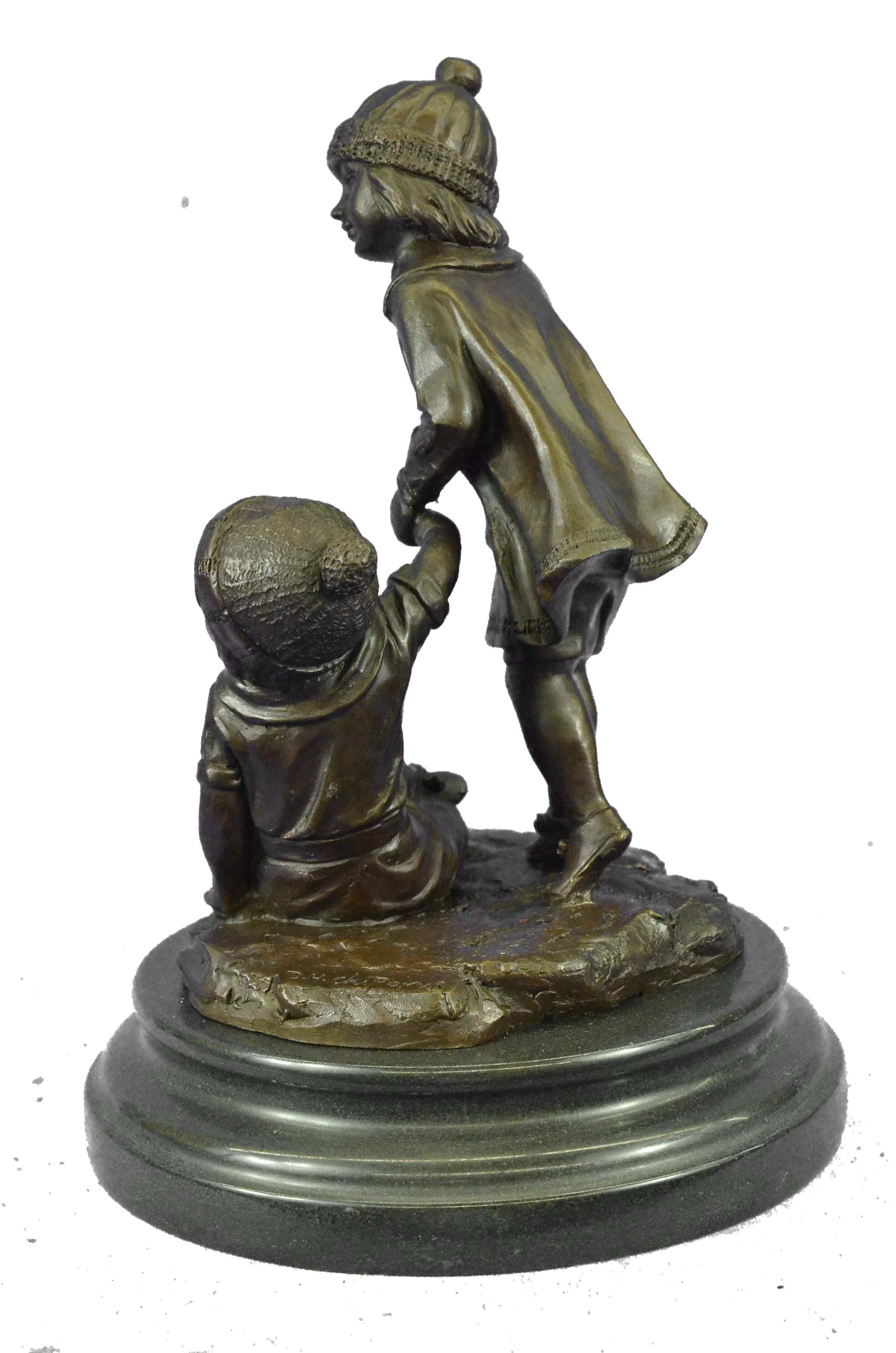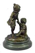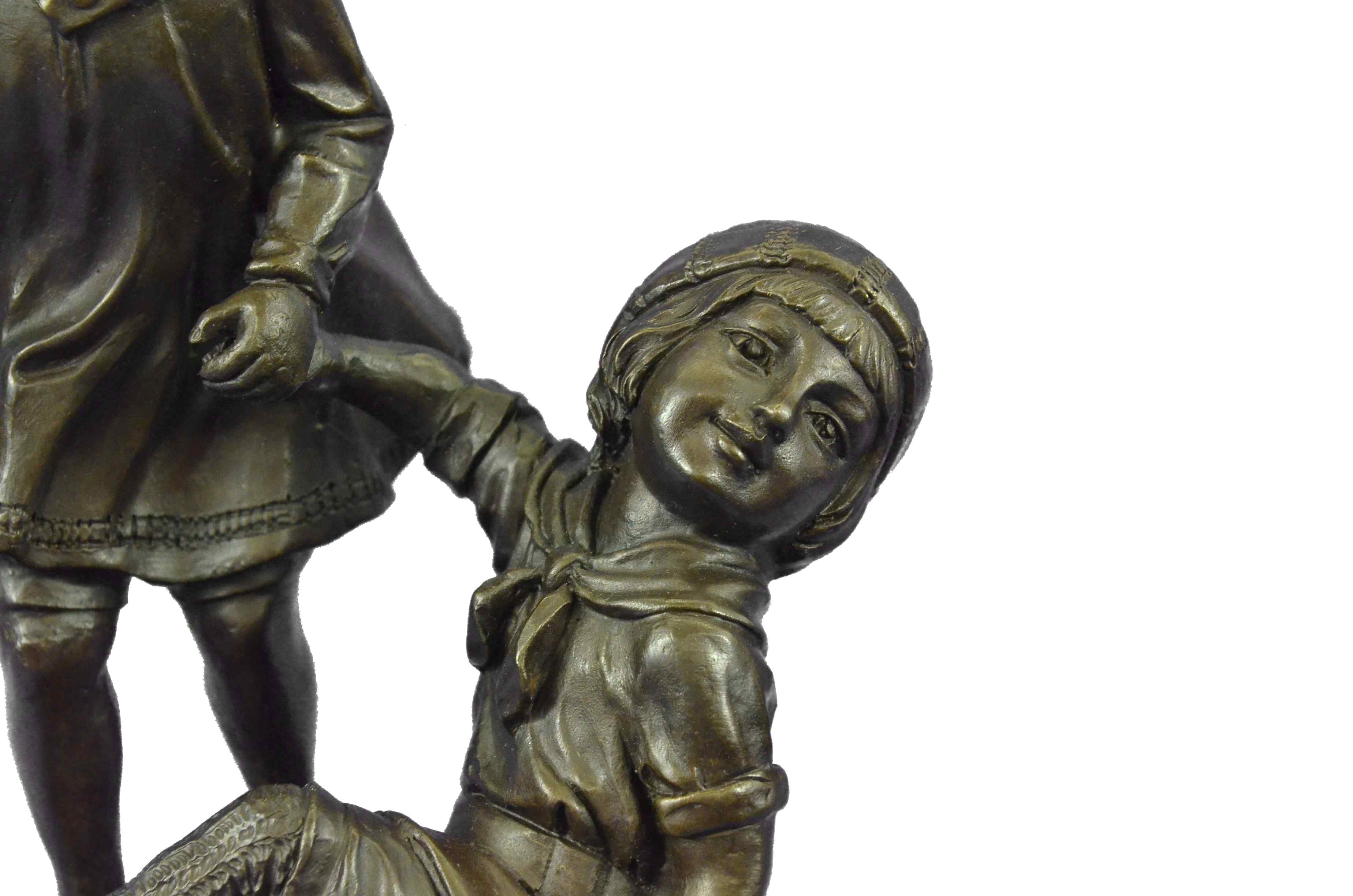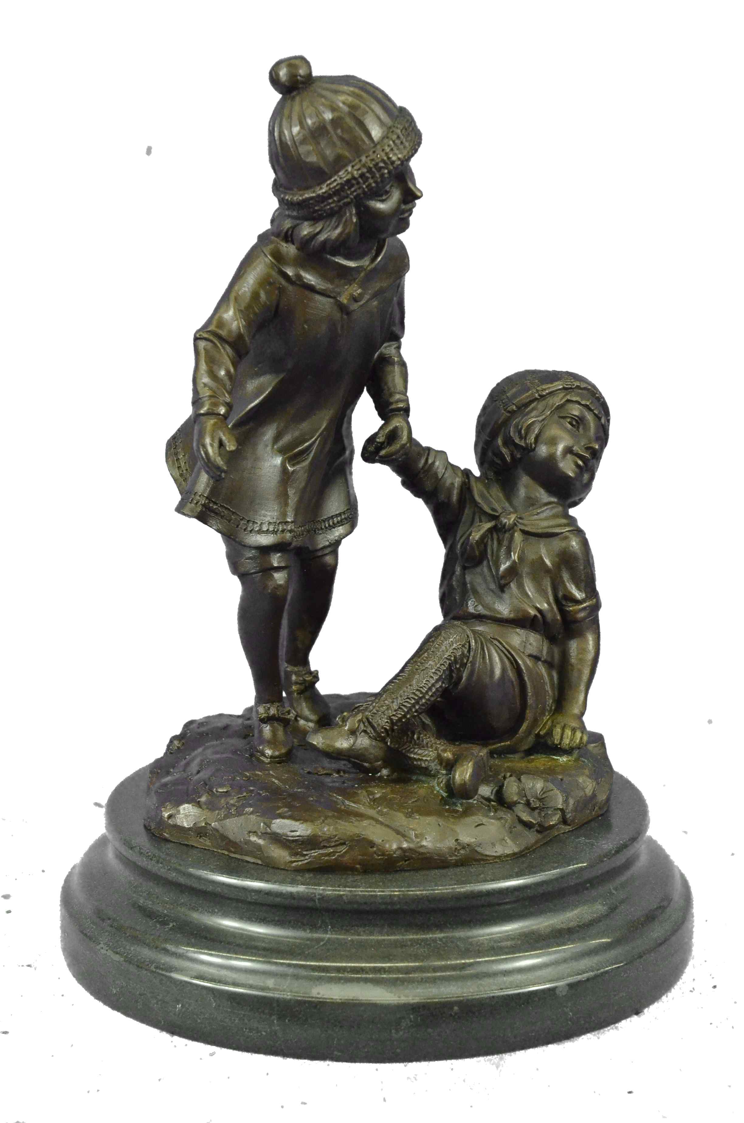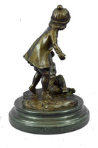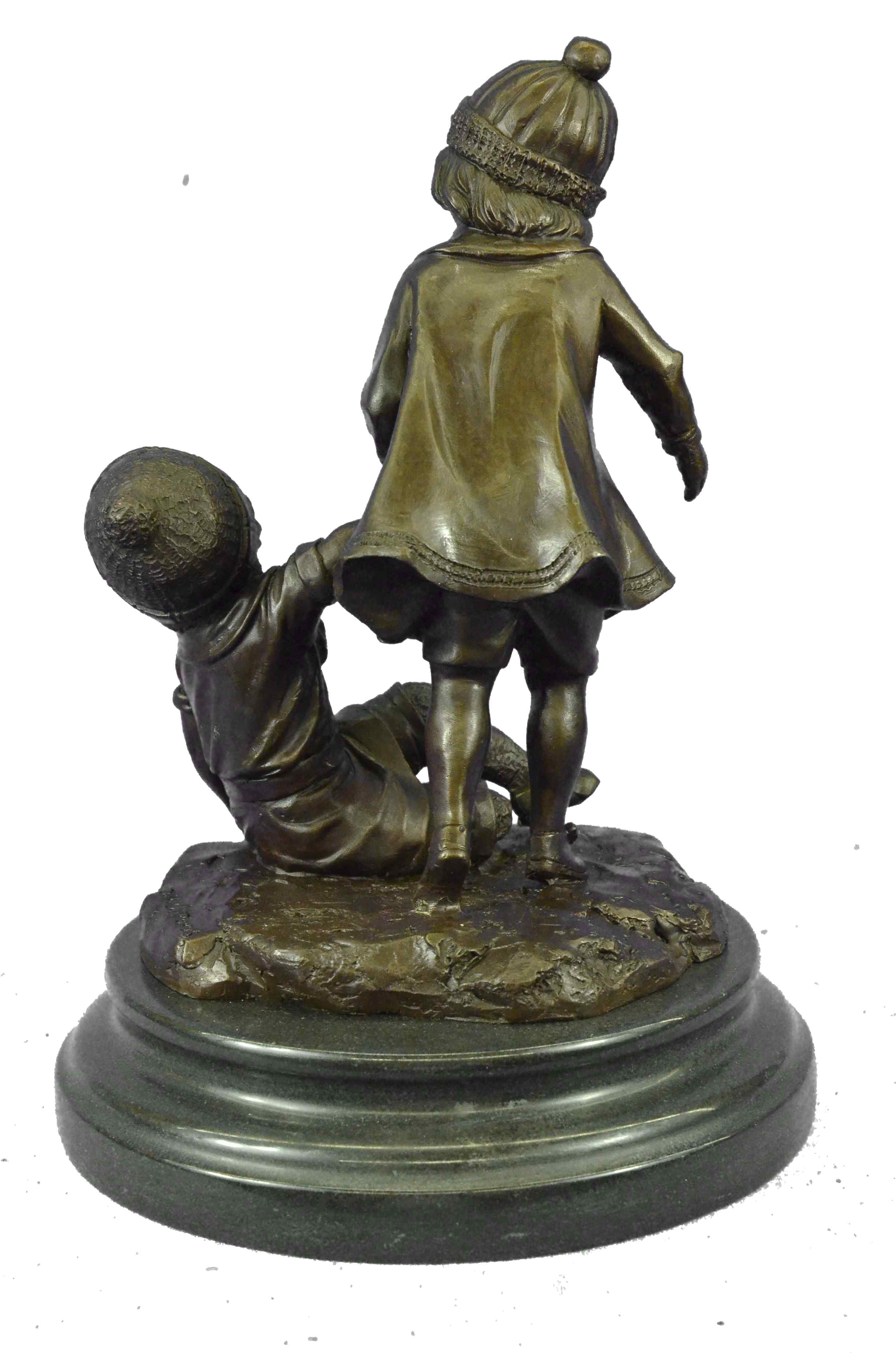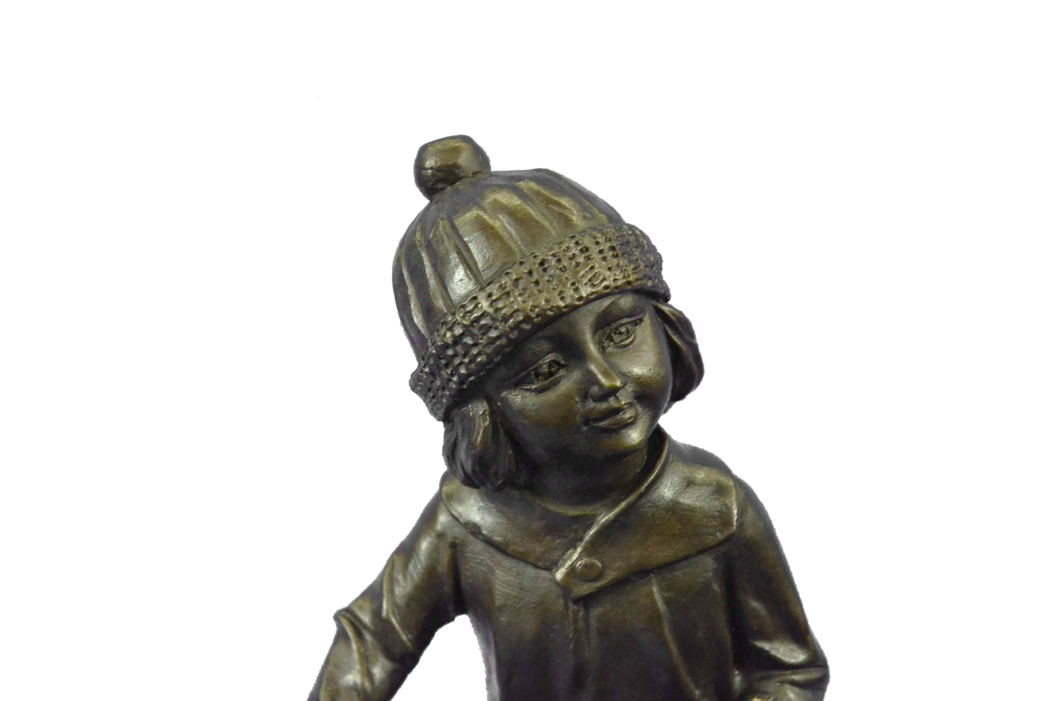 Signed~D.H Chiparus~ Two Small Girls Play in Cold Winter Bronze Sculpture Statue