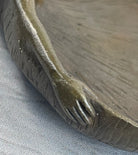 Handmade using the ancient lost wax method, this bronze dish showcases the high-quality material and artistry that went into its creation. The rich brown patina adds depth and character to the piece, enhancing its visual appeal and ensuring its durability over time. This sculpture is not just a functional item but also a statement piece that reflects timeless elegance.