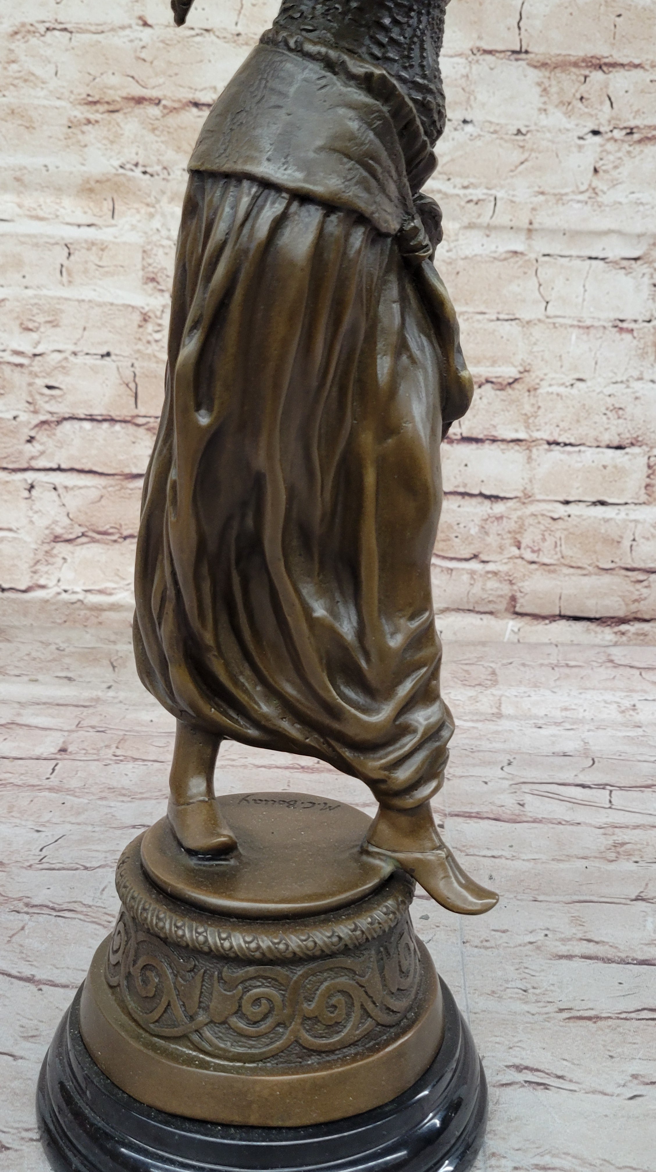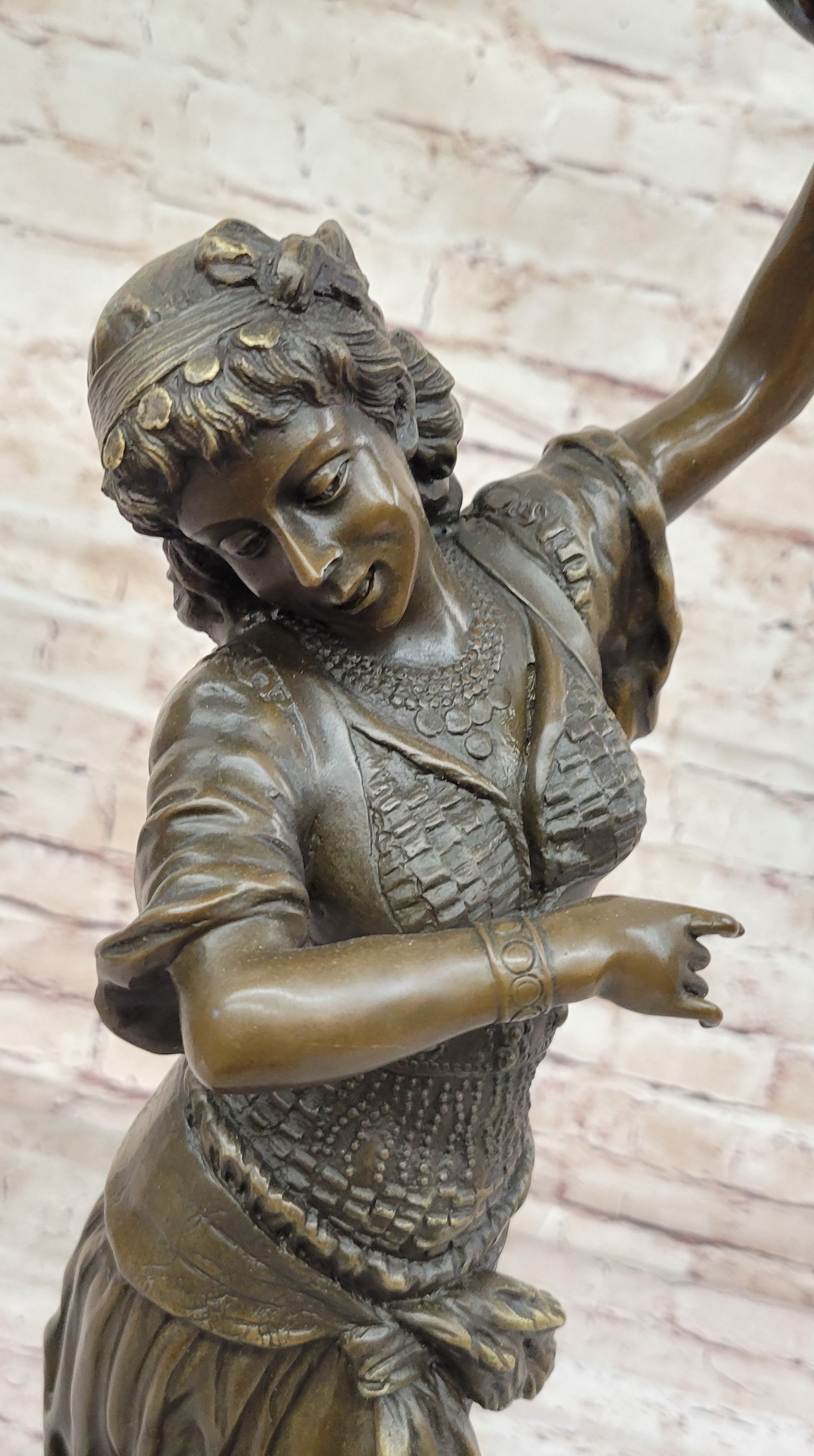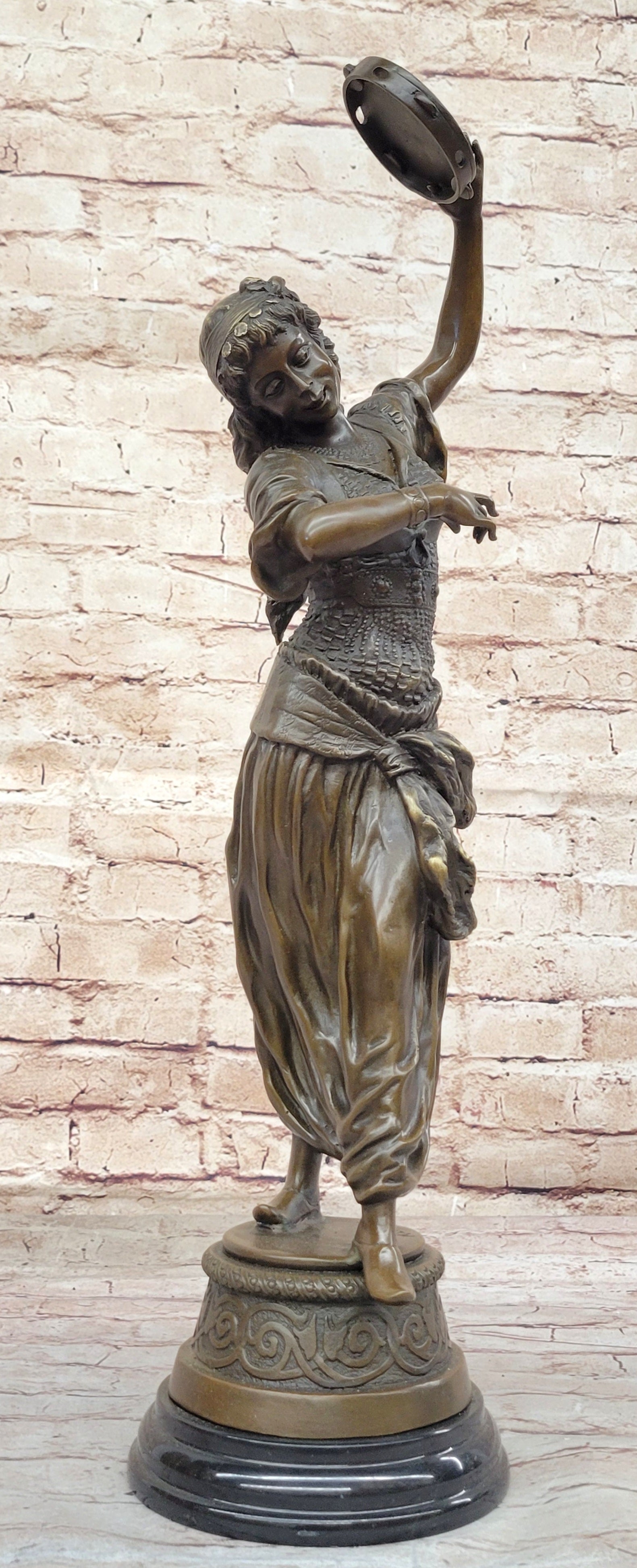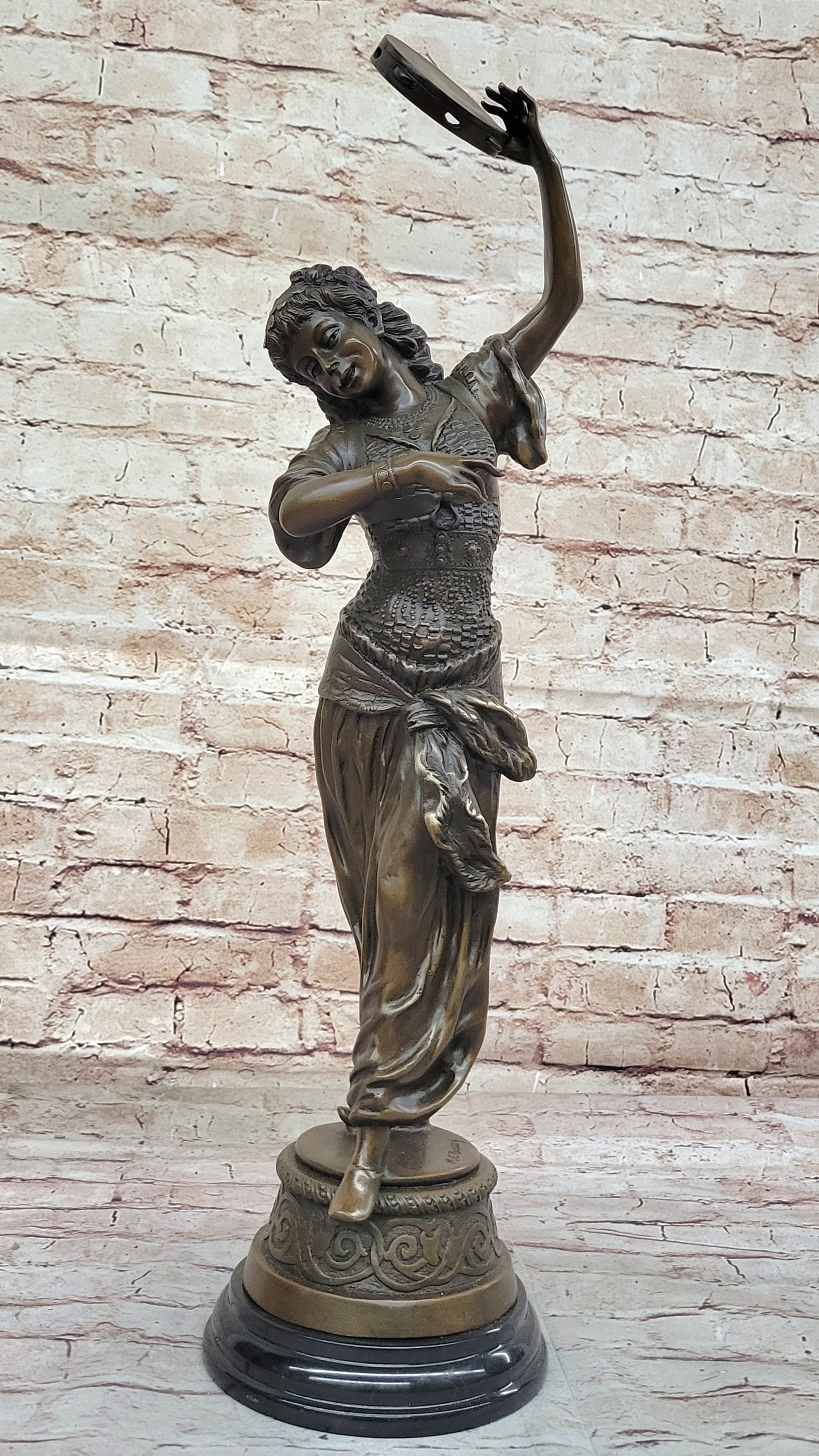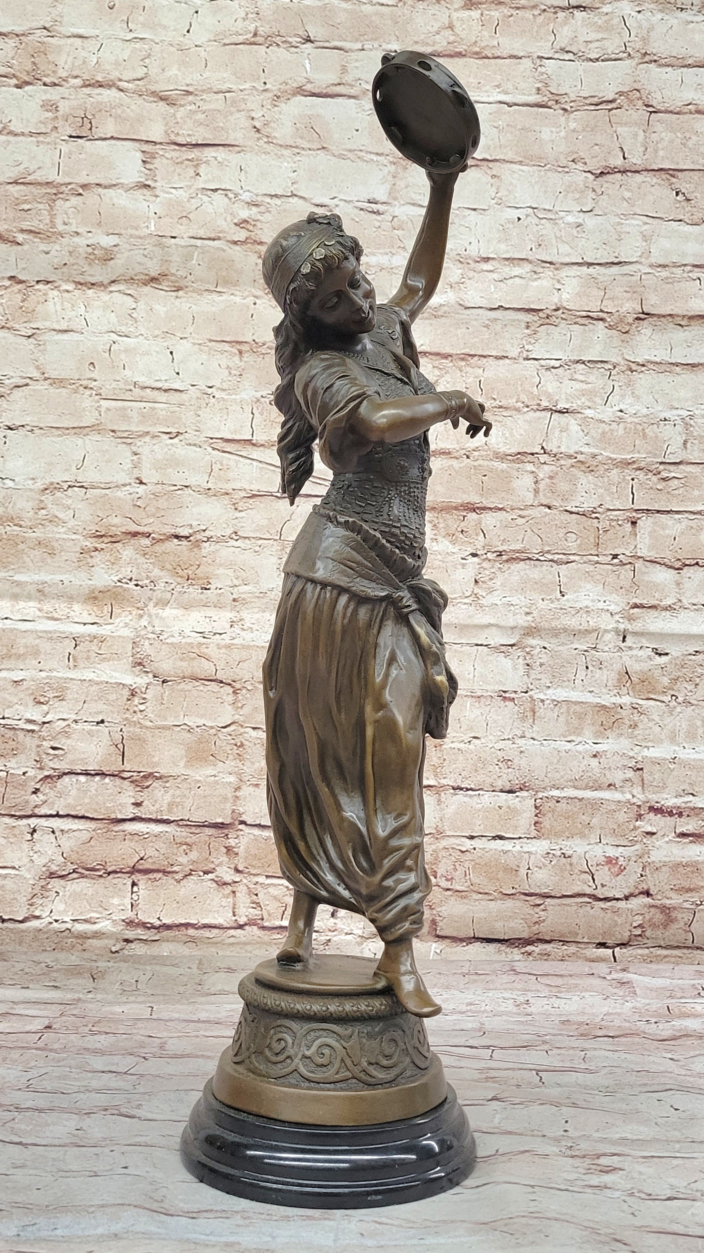Tambourine Dancer Girl Bronze Sculpture Musical Decor Figure by M.C. Bouay
