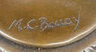 This stunning bronze statue figurine, inspired by the Art Nouveau style, beautifully depicts a dancing female holding a tambourine. Handcrafted using the lost wax method, this sculpture exemplifies the meticulous attention to detail and craftsmanship that characterizes this traditional casting technique. Signed by Bouay, it bears the mark of quality craftsmanship.