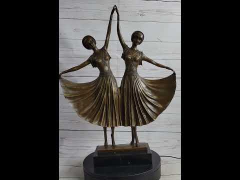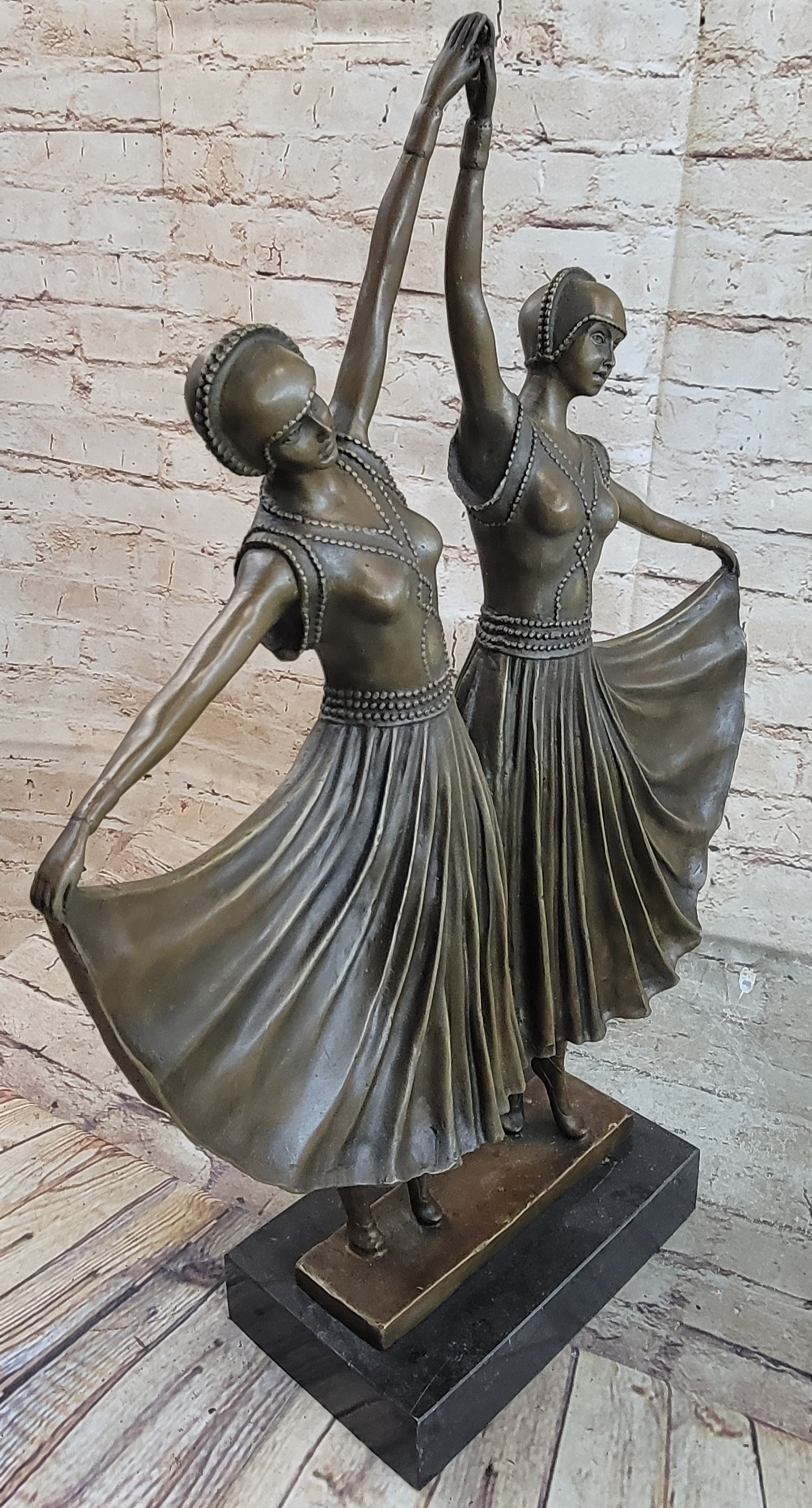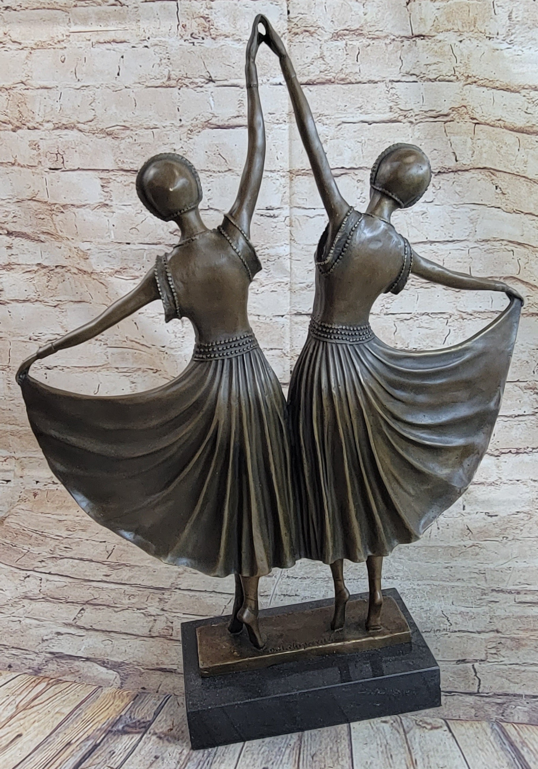 Twin Art Deco Dancer Girls Gemini Pair Bronze Statue Sculpture D.H. Chiparus