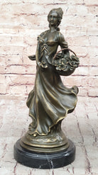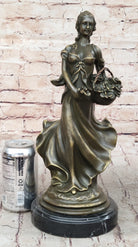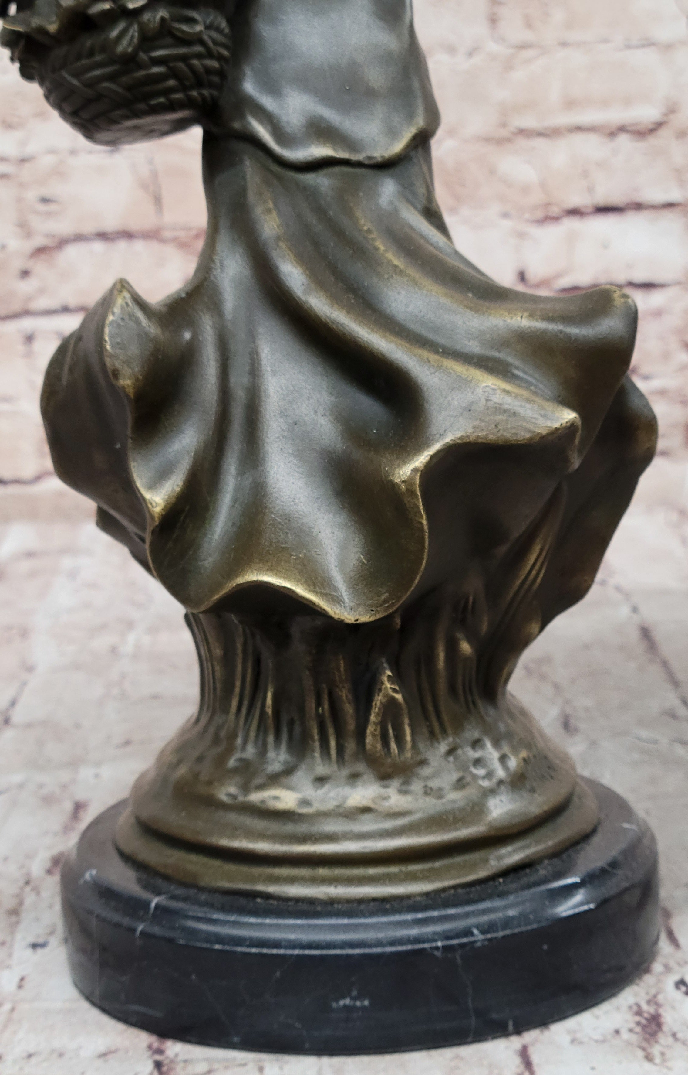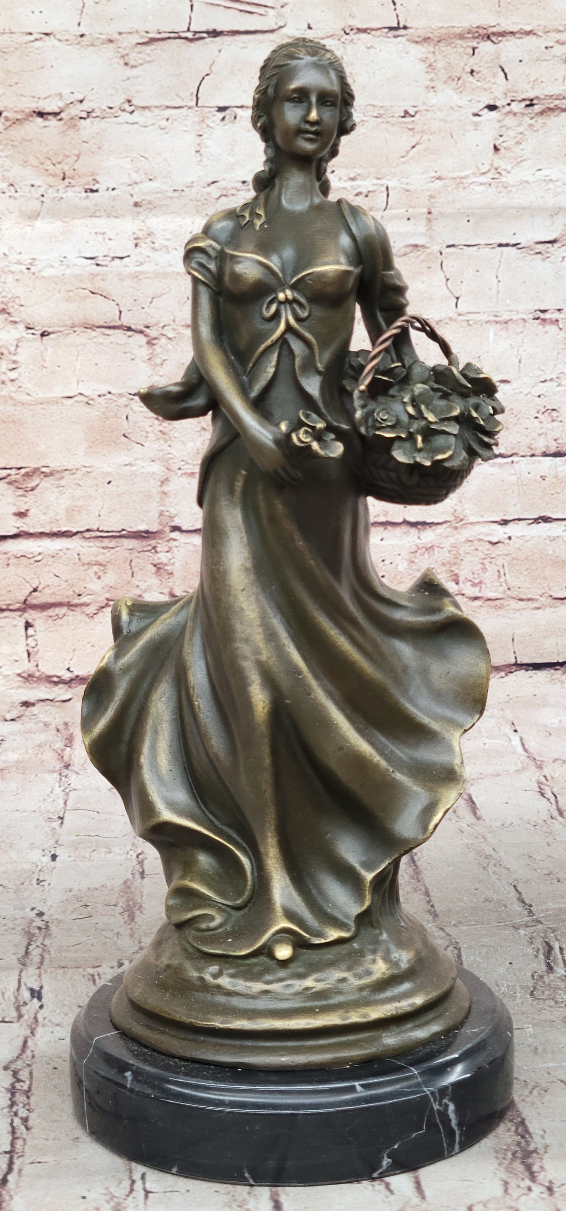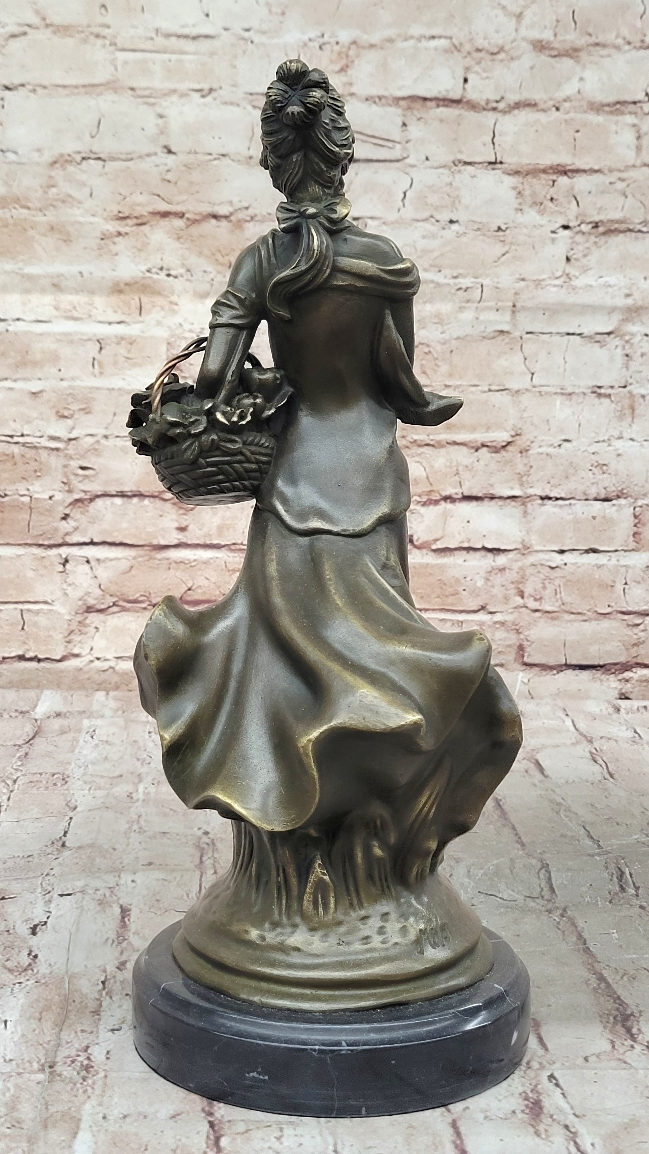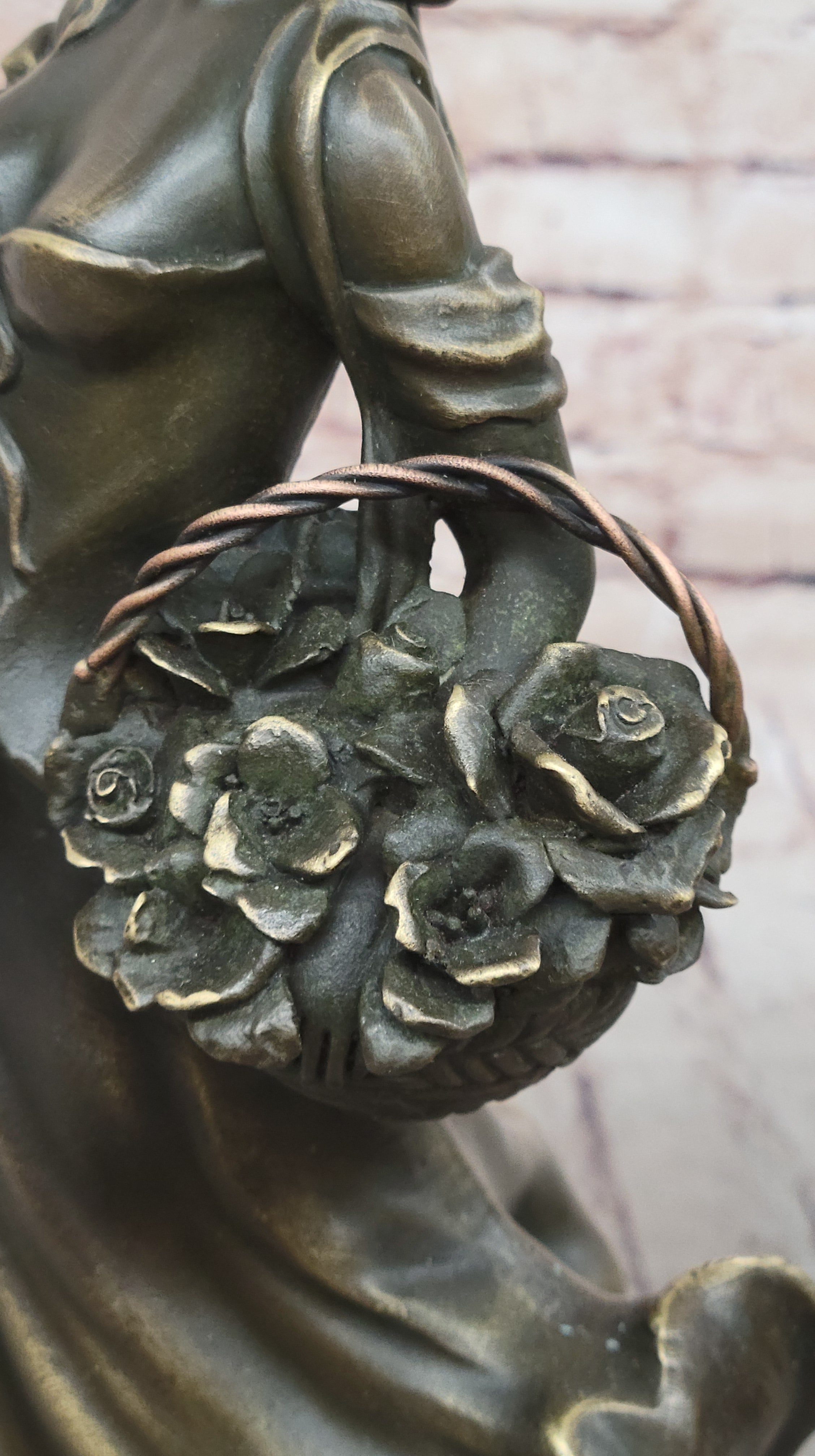 Young Woman Carrying Basket of Flowers - Bronze Metal Sculpture by Milo