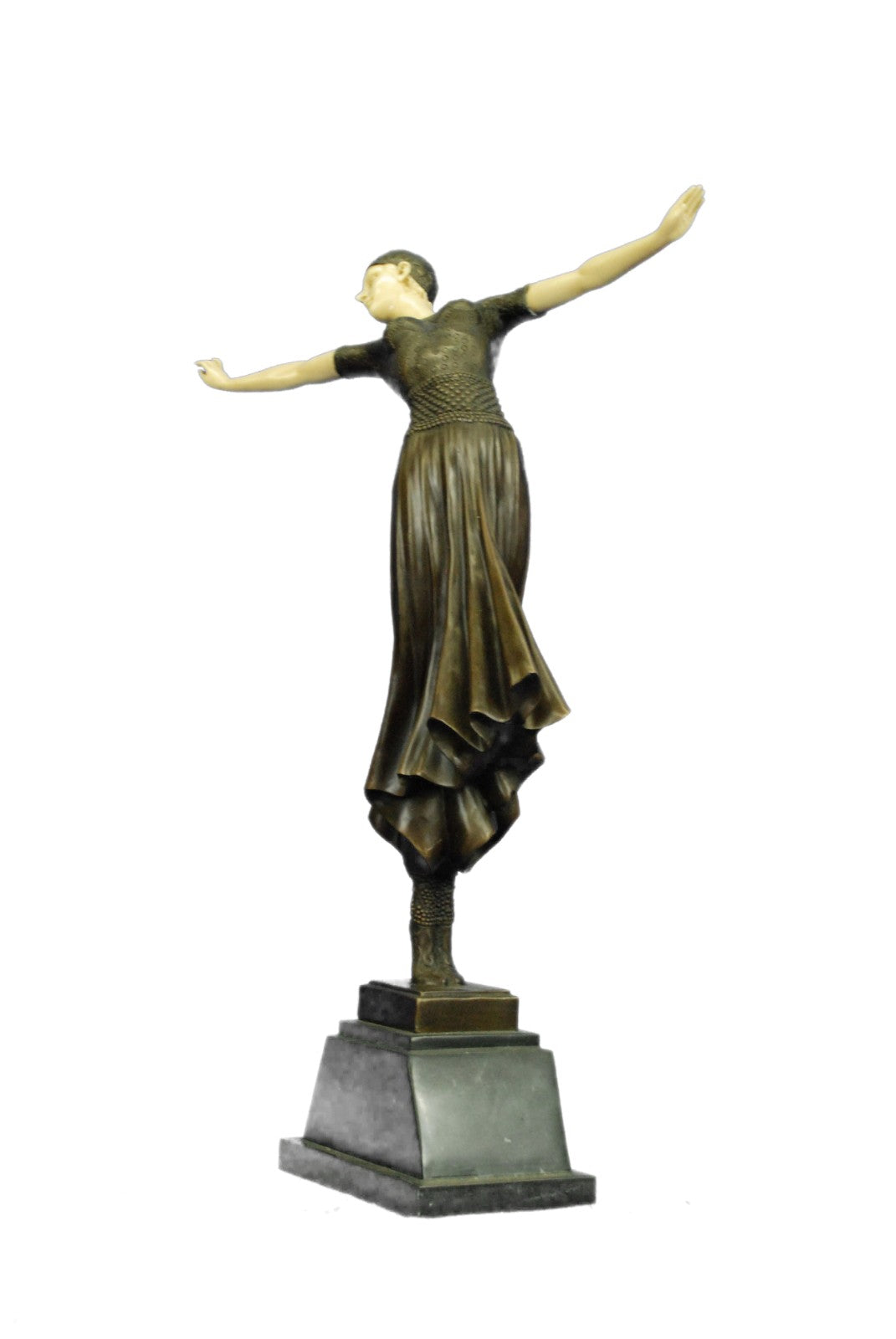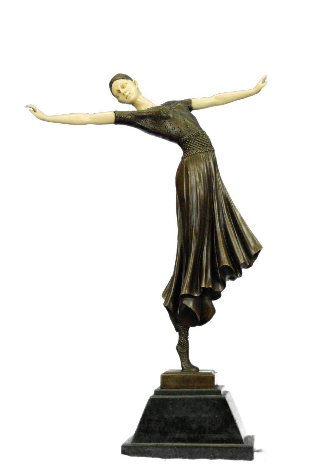24'' Tall IvoryLike Design Turkish Dancer Bronze Marble Base Sculpture Figurine