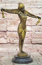 Signed by the renowned artist, Chiparus, this exquisite sculpture is a perfect addition to any art lover's collection. It captures the essence of the timeless art of belly dancing, embodying the grace and allure of the dance in every detail. Whether displayed in a home, office, or gallery, this piece will undoubtedly draw admiration and spark conversations, celebrating the beauty and elegance of one of the most captivating dance forms.Bronze Dimensions with Marble Base: Height 13" X Width 9"