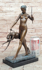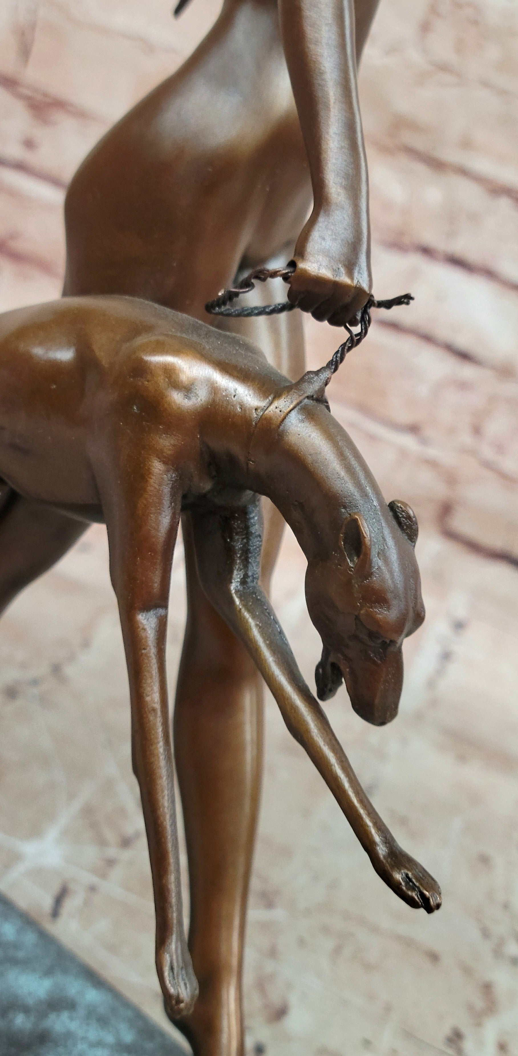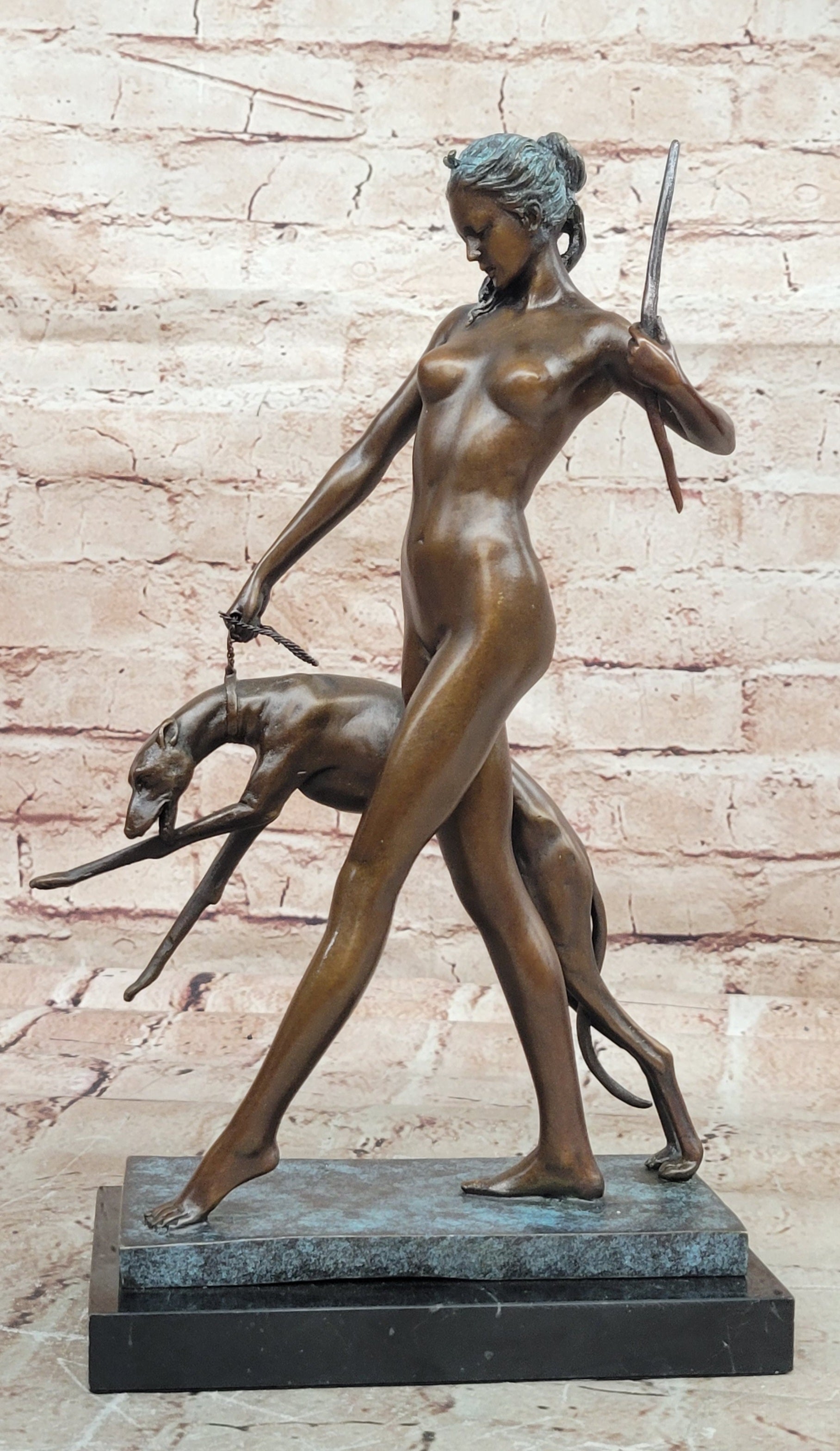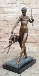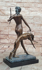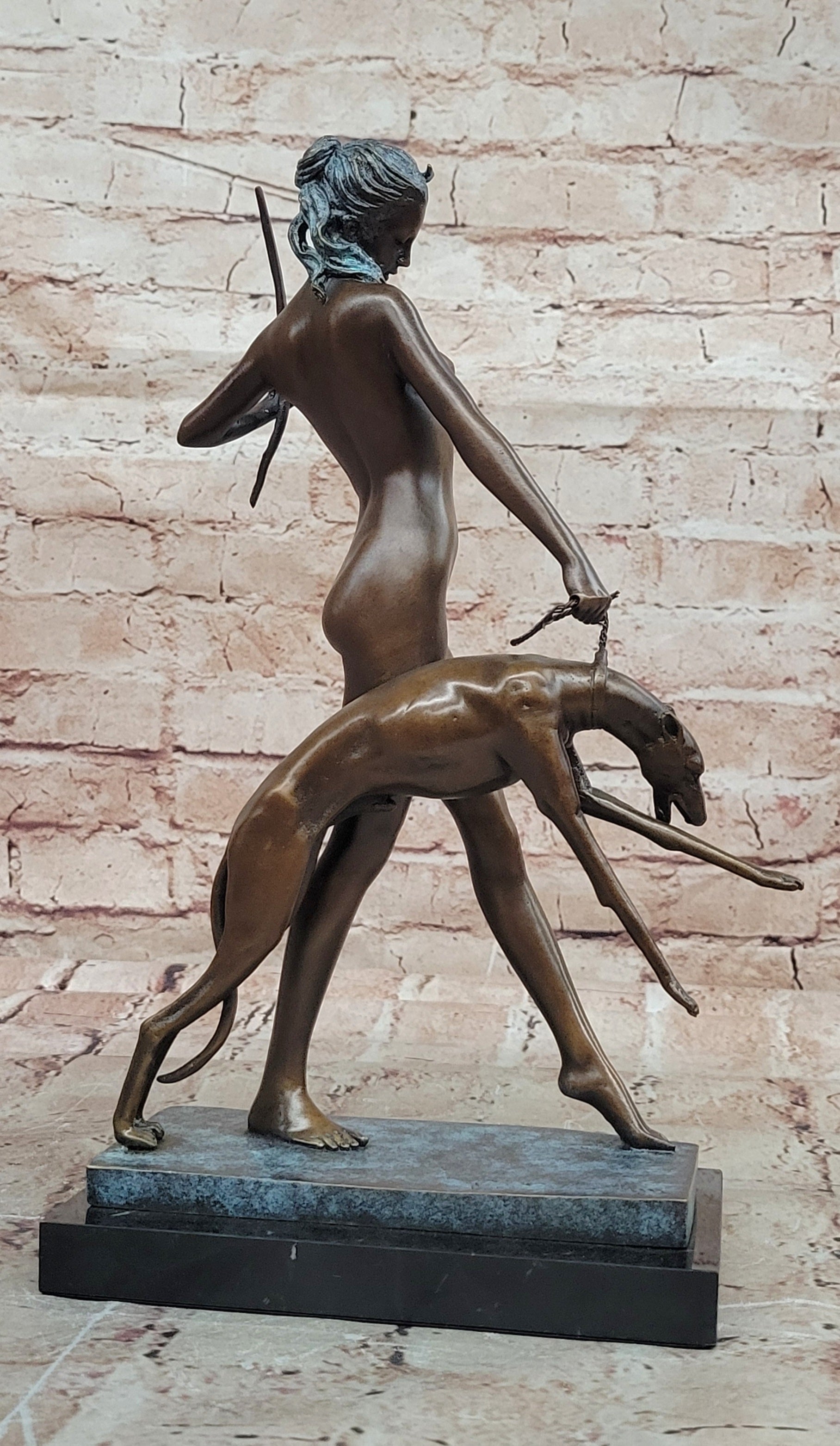 Art Deco 1920 Style Nude Diana the Huntress Dogs Bronze Statue Sculpture Figure