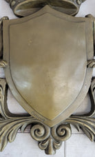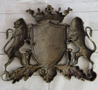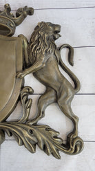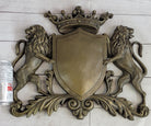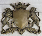 Coat of Arms Family Crest Lions Crown Bronze Wall Mounted Hanging Sculpture 13" x 16"