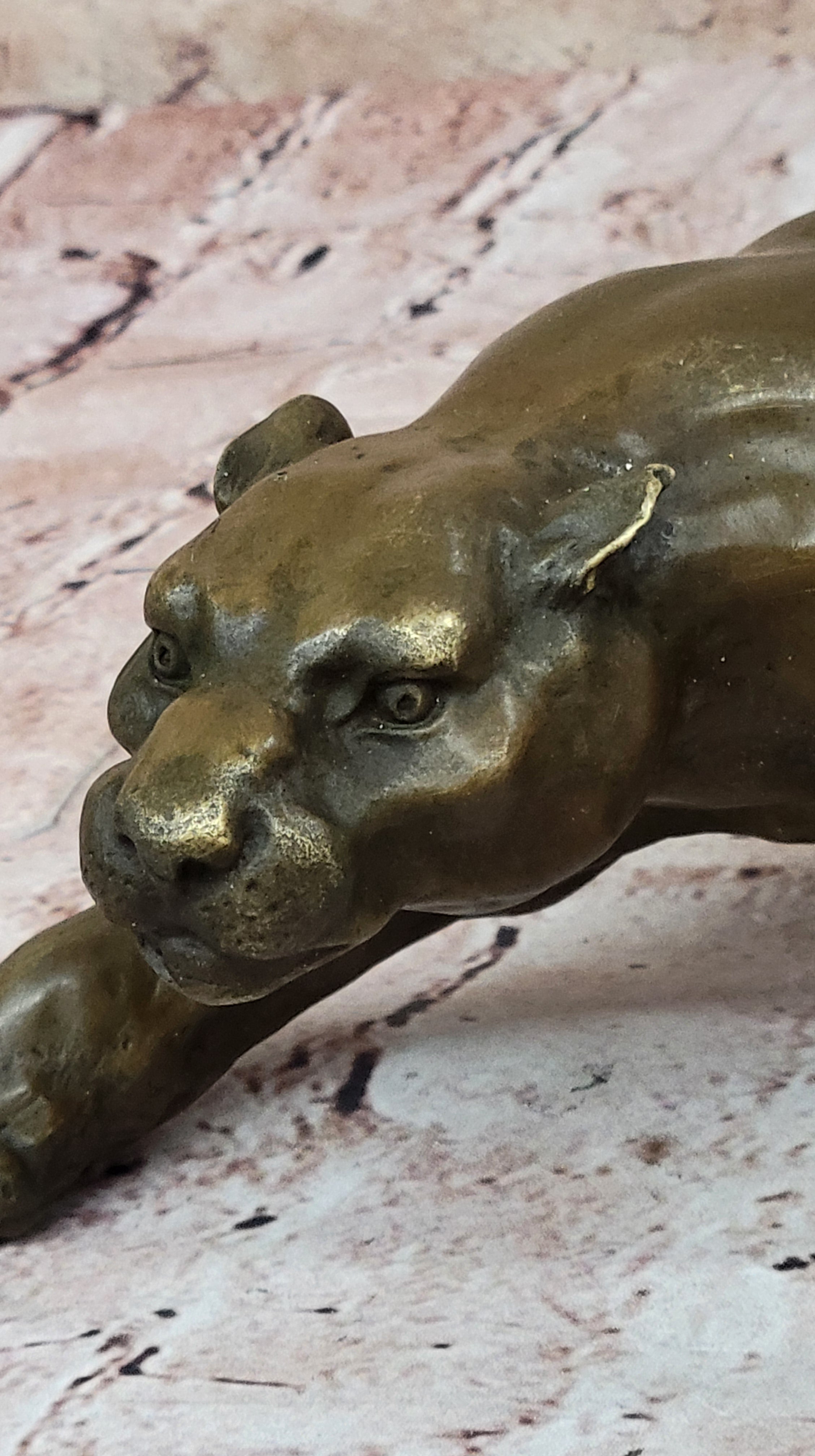 Bronze Metal Cougar Leopard Lion Panther Puma Statue Sculpture Figure 5" x 15"